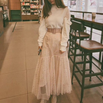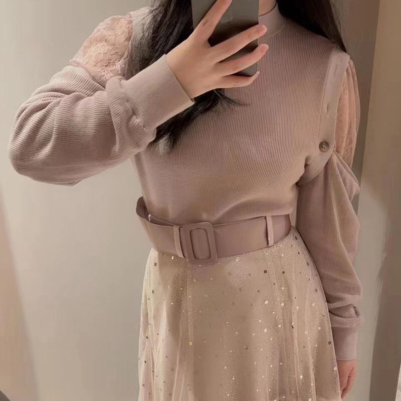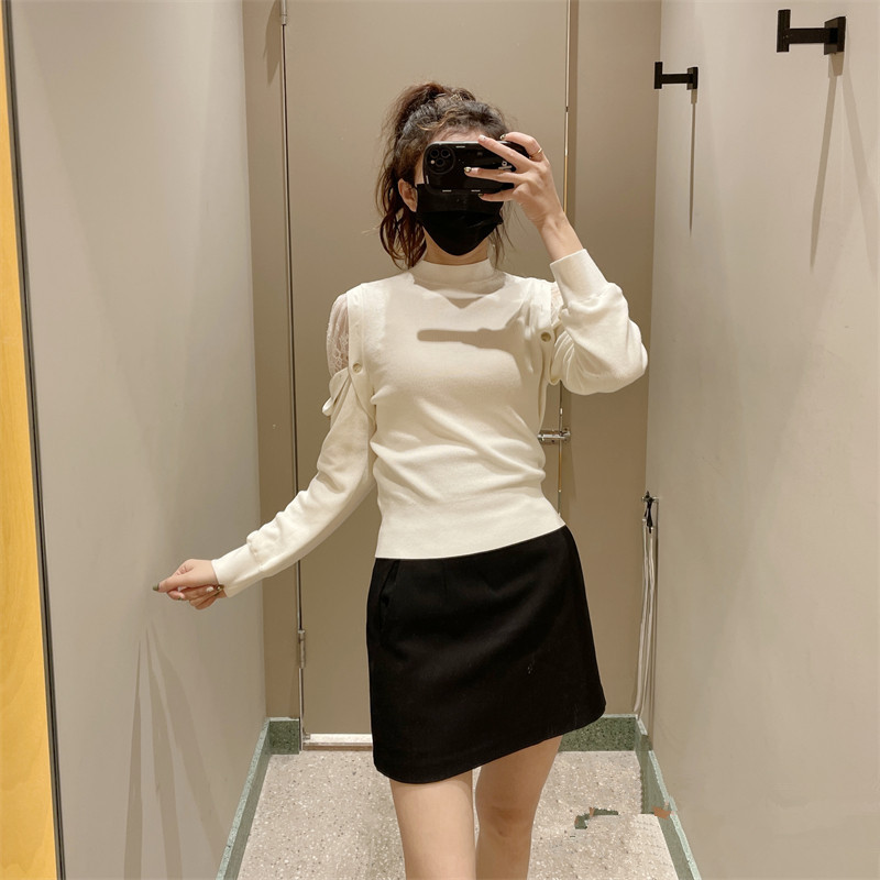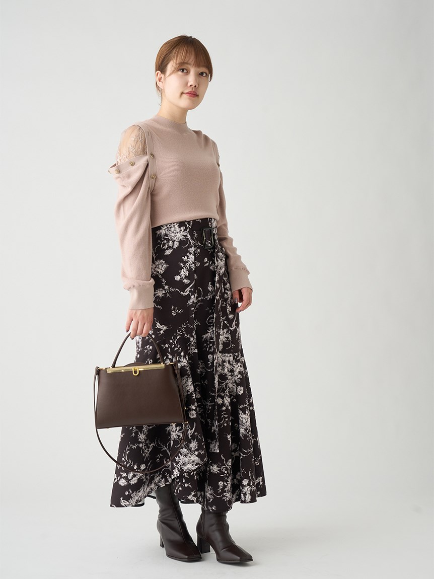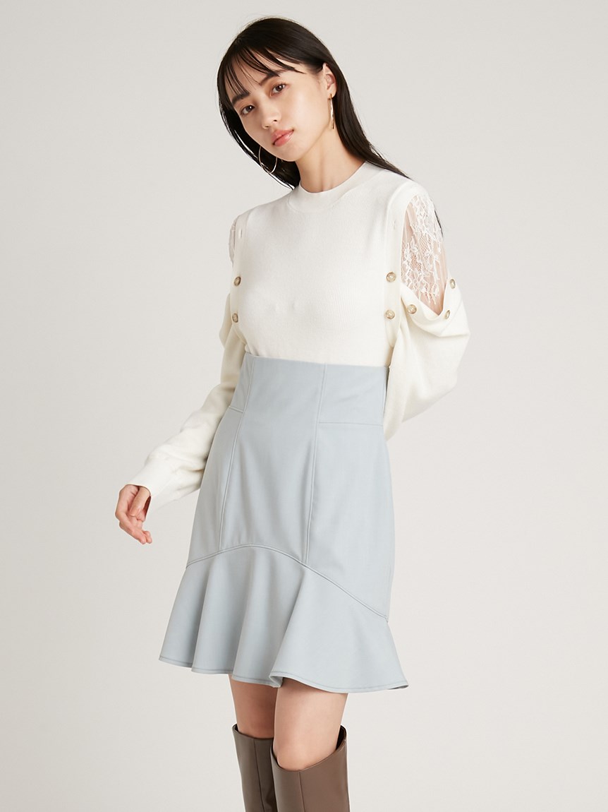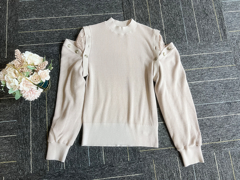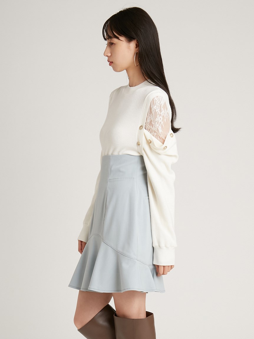 【2WAYで自由にアレンジできるショルダーレースのニットプルオーバー】