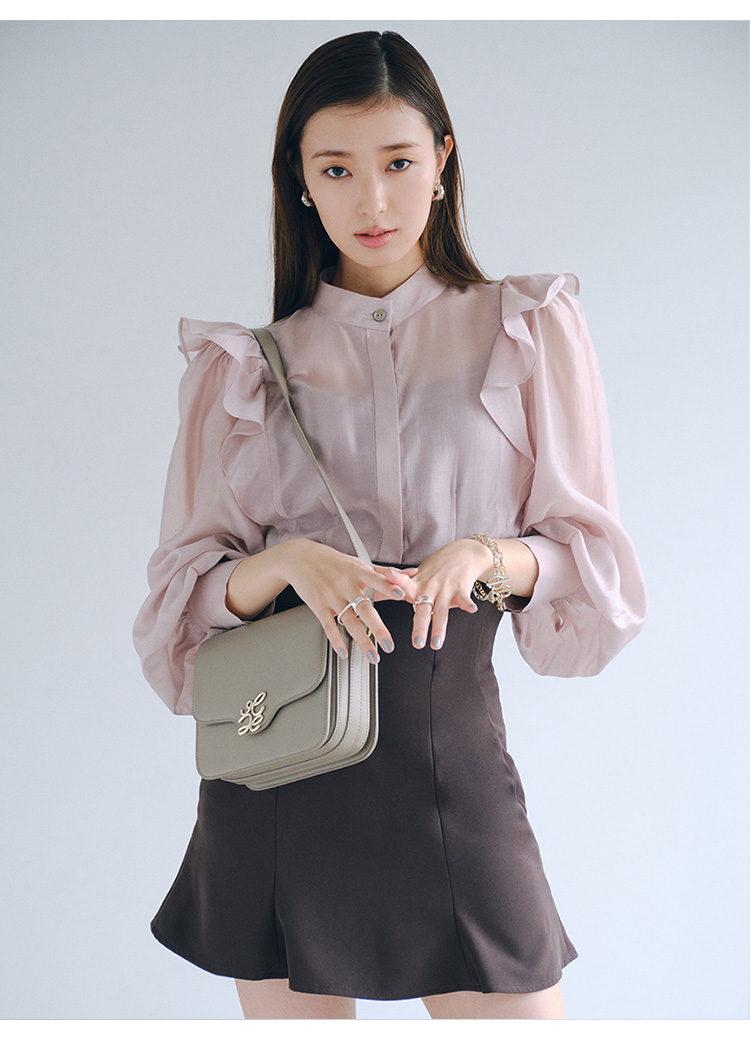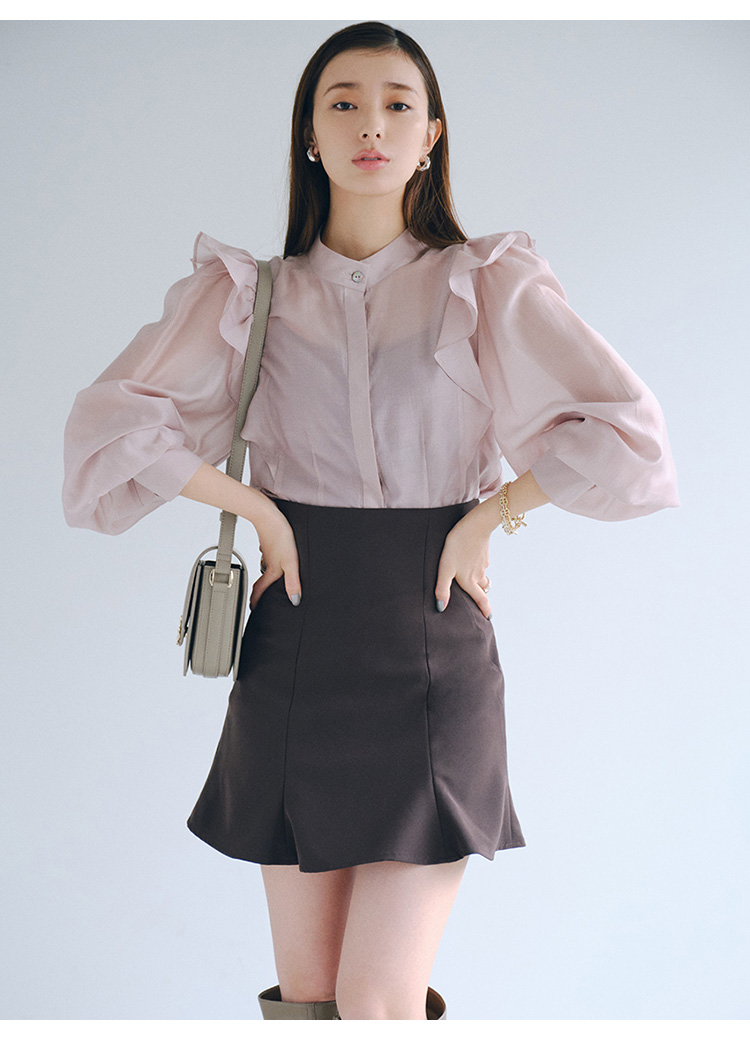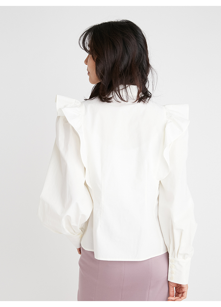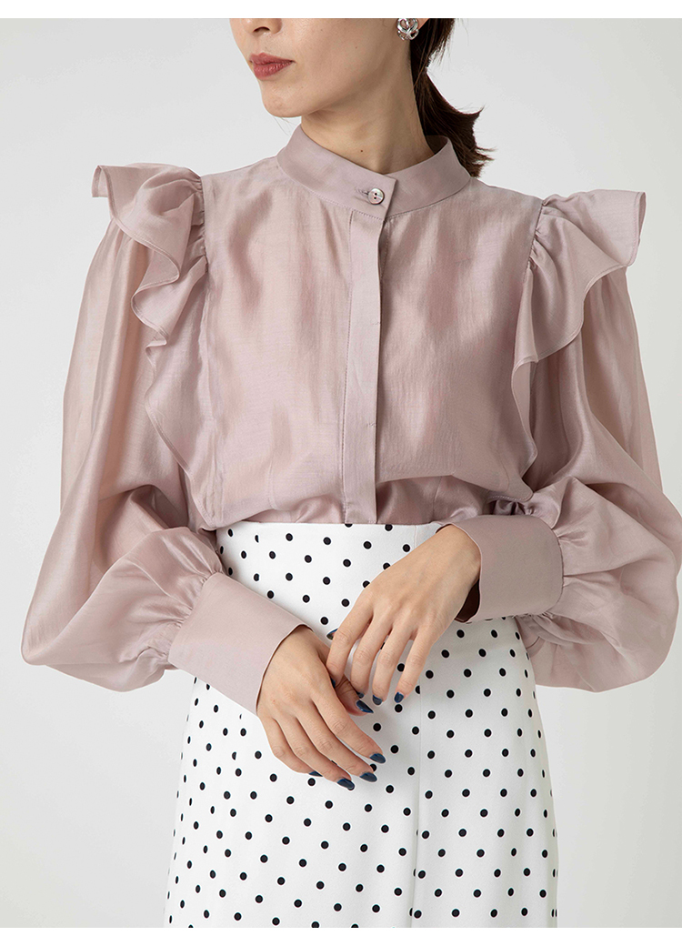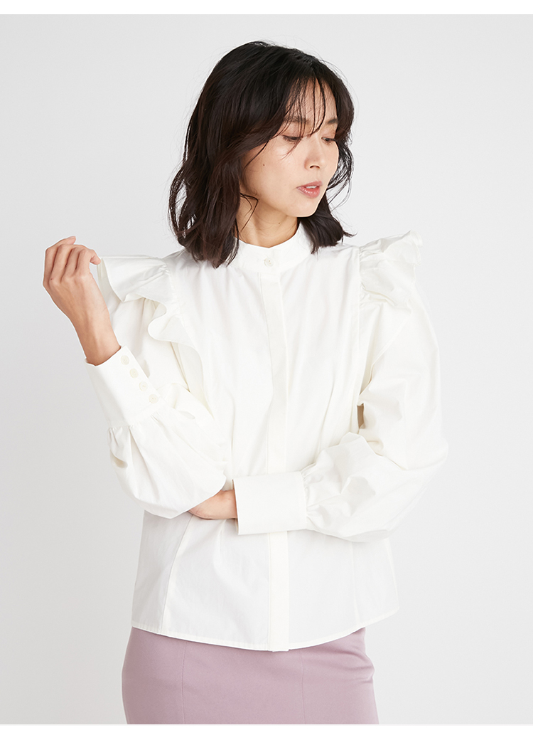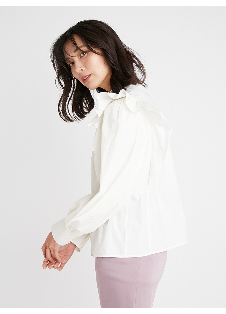 【ボリュームのあるフリルがスタイリングをエレガントに映し出すブラウス】