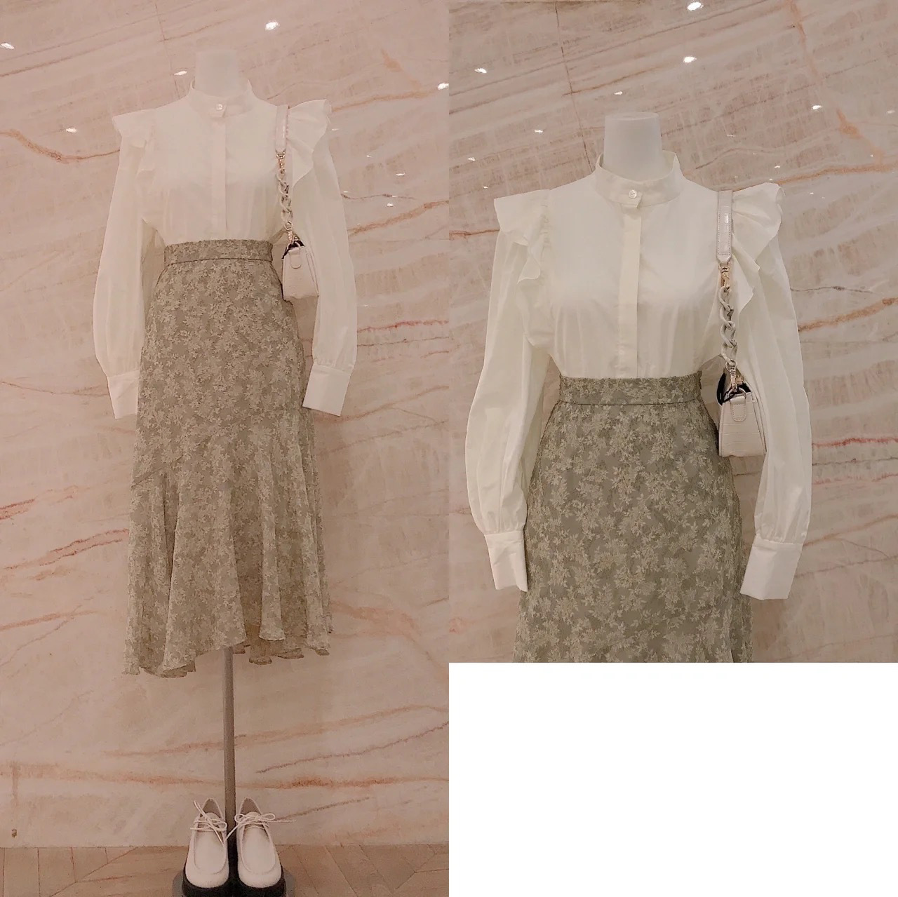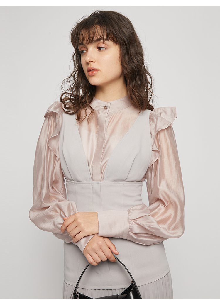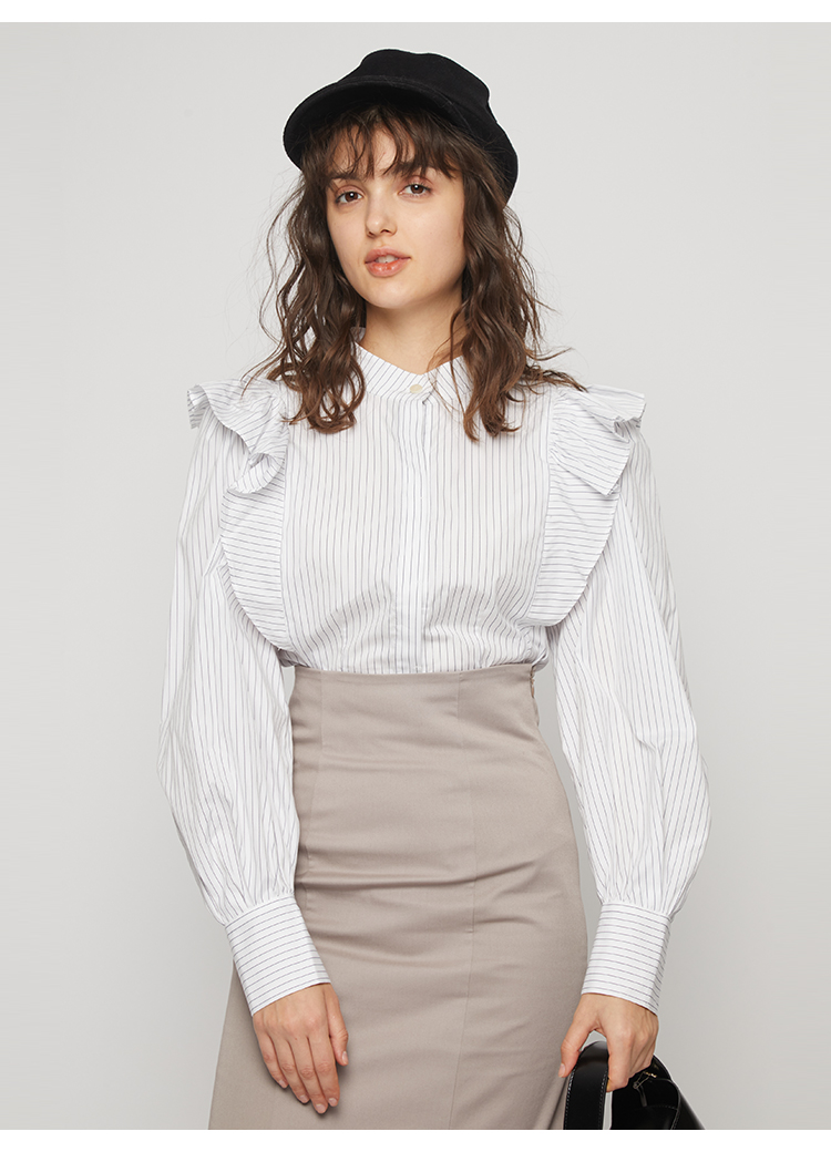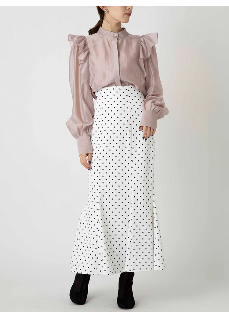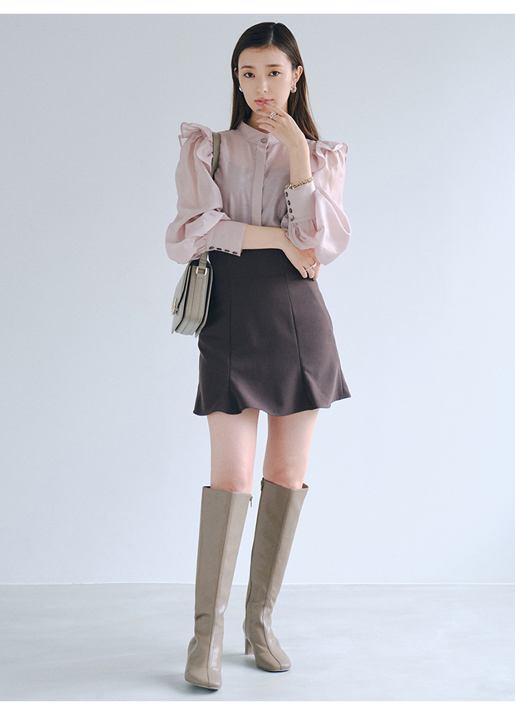 【ボリュームのあるフリルがスタイリングをエレガントに映し出すブラウス】