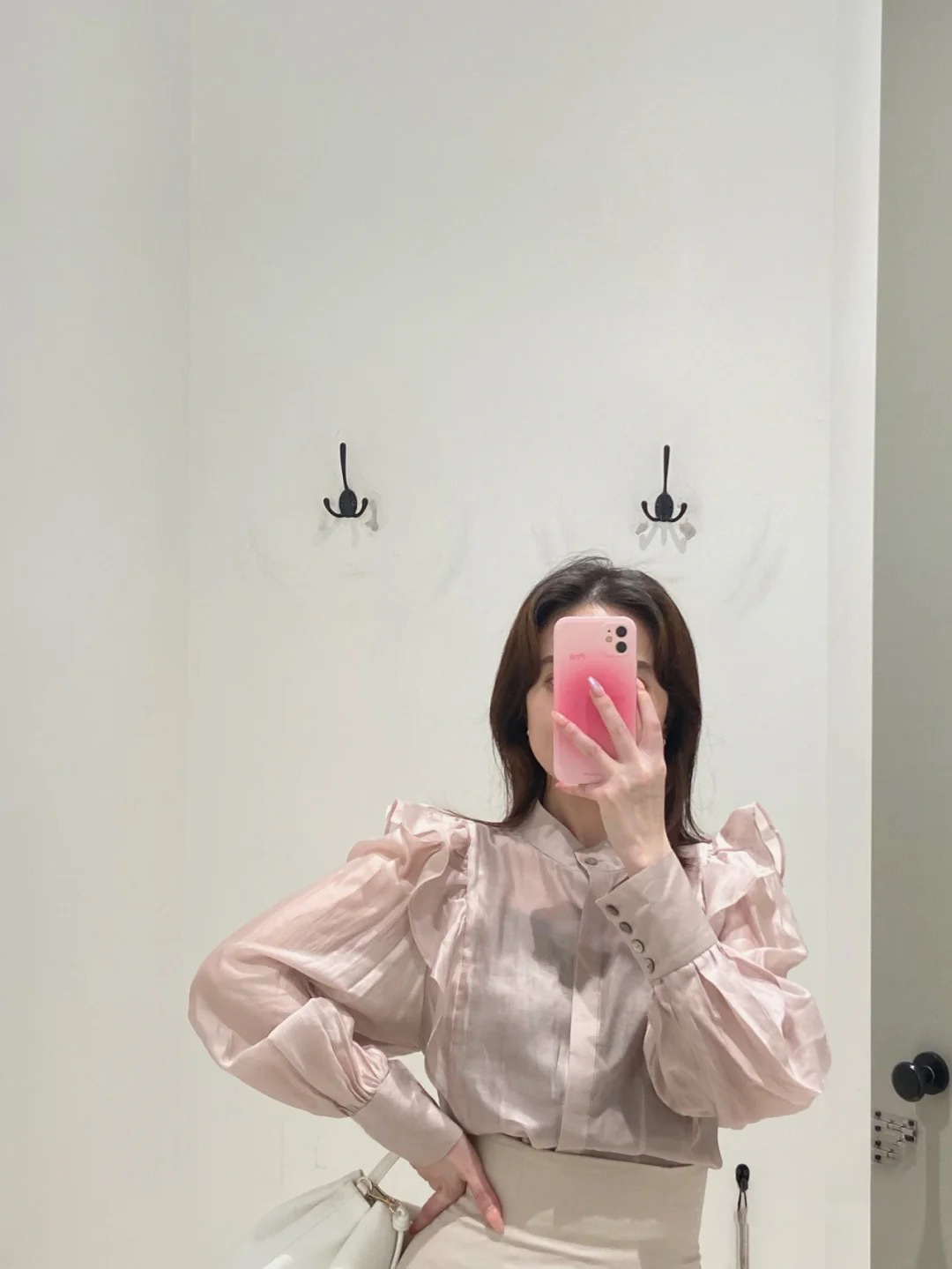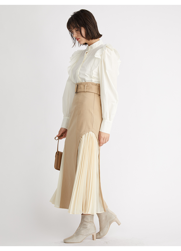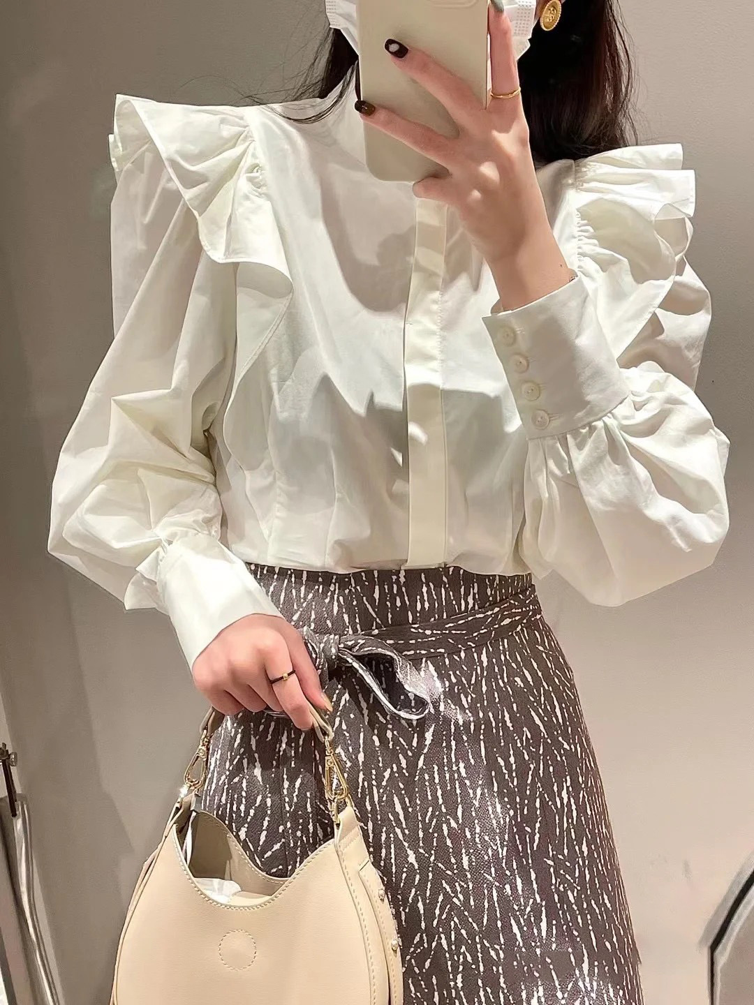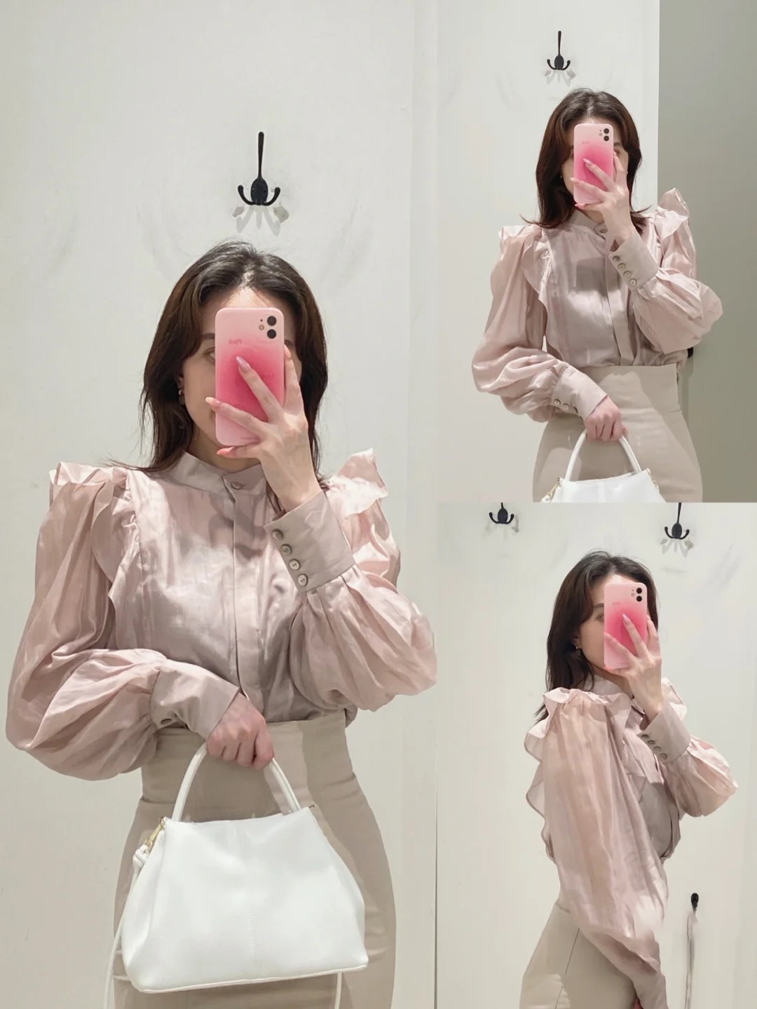 【ボリュームのあるフリルがスタイリングをエレガントに映し出すブラウス】