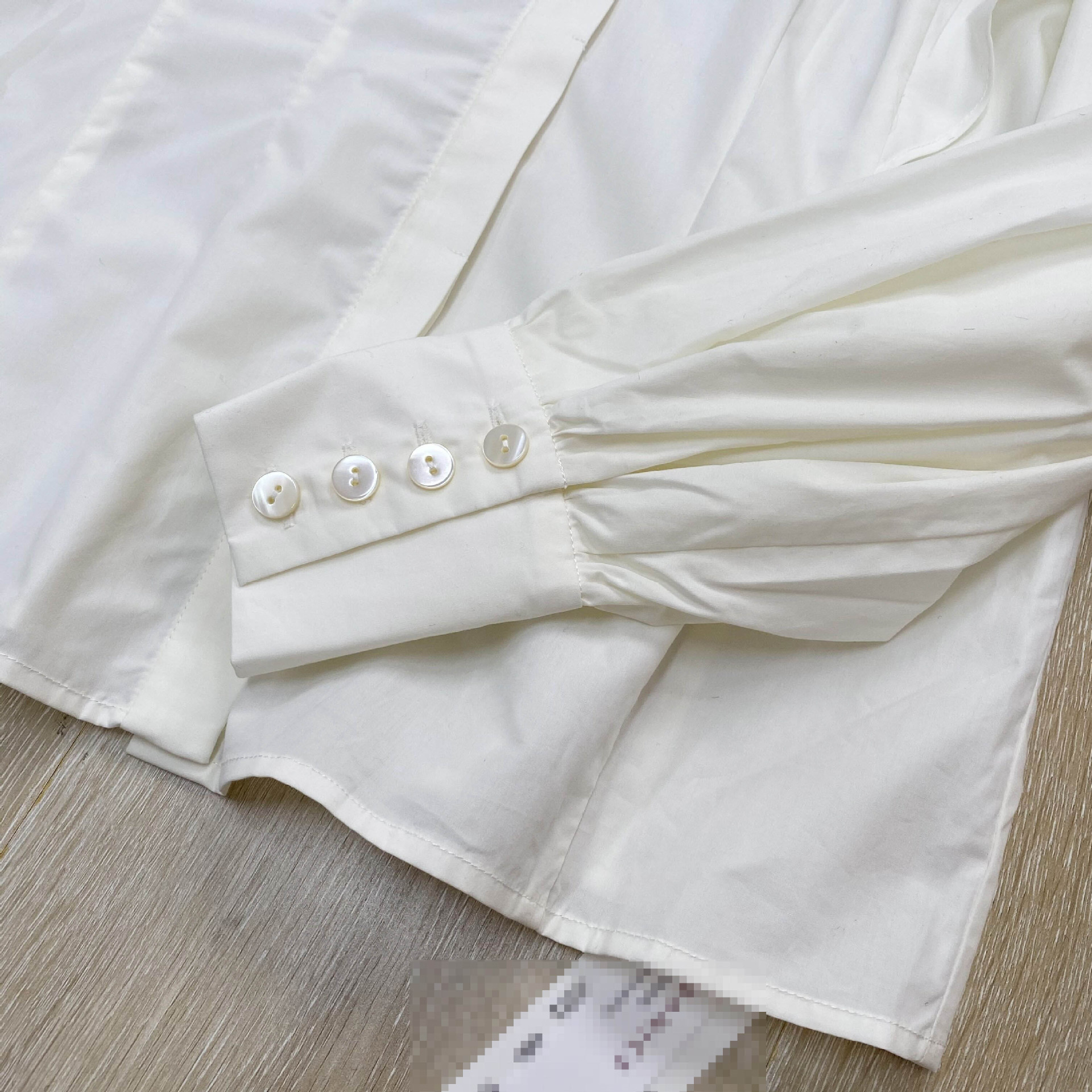 カラーごとに異なる素材でバリエーション豊かに仕上げました。着まわしやすいシャツ地を使用したホワイト、トレンドのストライプ、シアー素材でフェミニンな色合いのライトピンクの3色展開です。