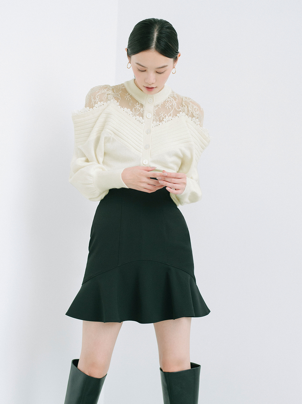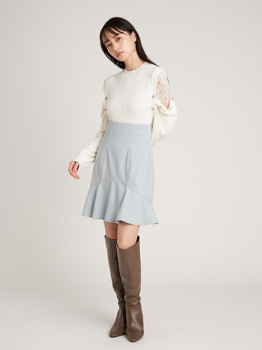 【立体的に波打つフレアラインが大人の愛らしさを引き出すミニスカート】