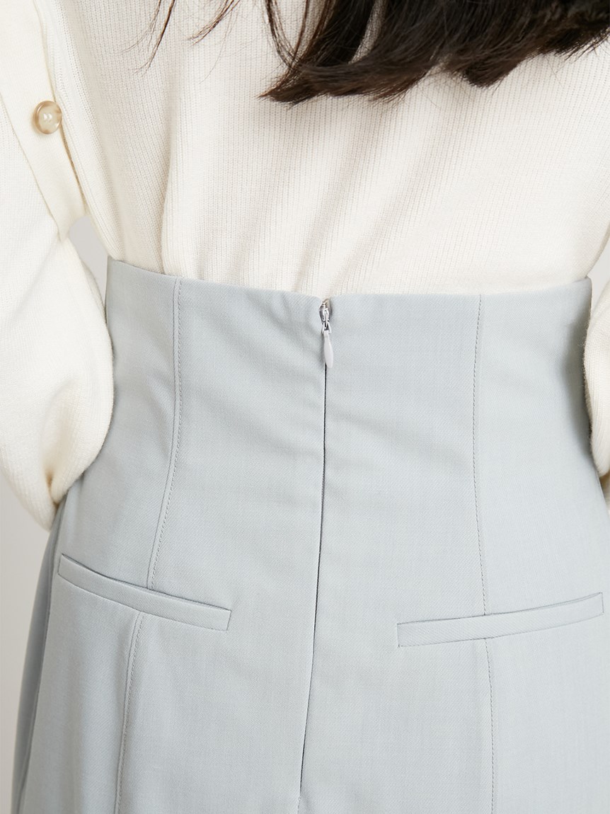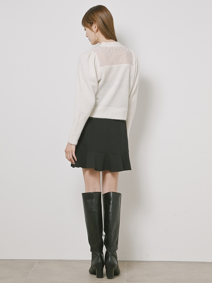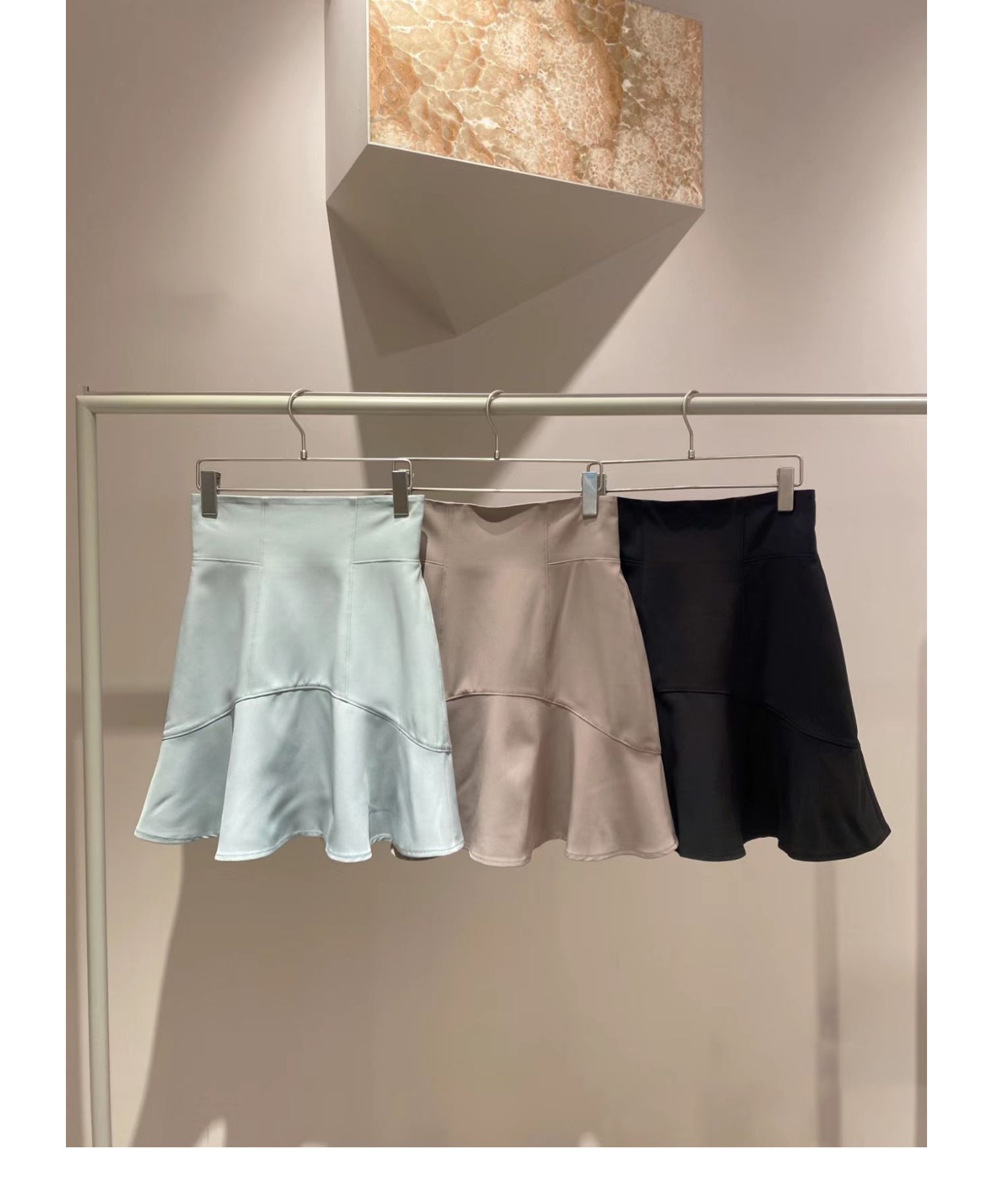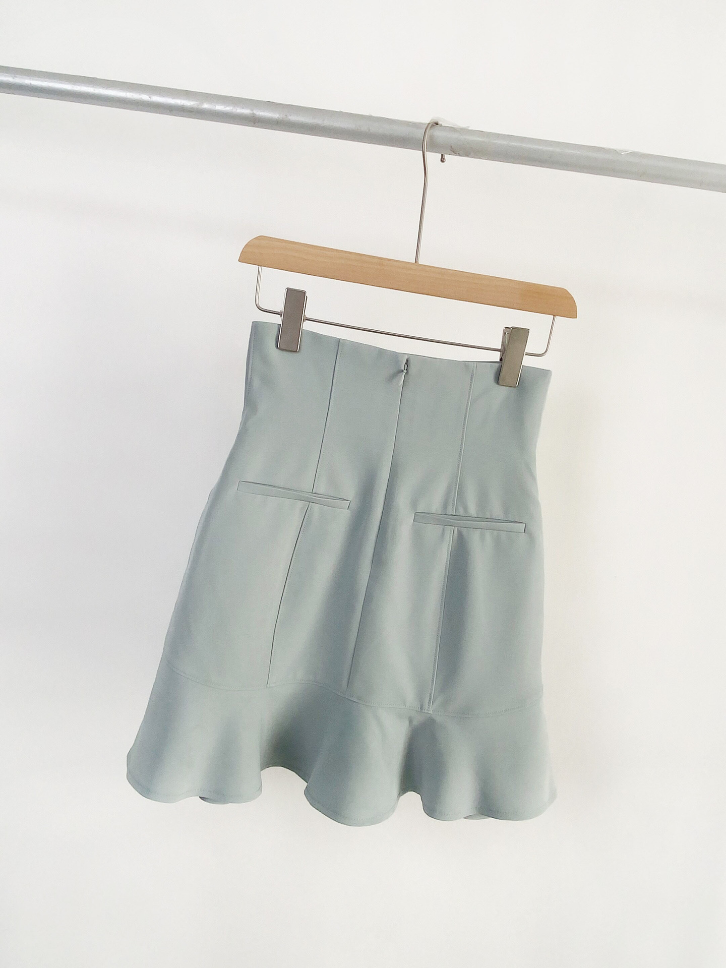 緩やかなカーブを描く切り替えでメイクしたフレアラインが愛らしいミニスカ-ト。敢えてフリルの幅を狭くし、フリルが外に向かってパッと広がるように工夫しました。ボディラインにフィットするハイウエストデザインでスタイルアップ効果は◎。タイトなシルエットで捲れないようにするため、素材は伸縮性のある物を選んでいます。