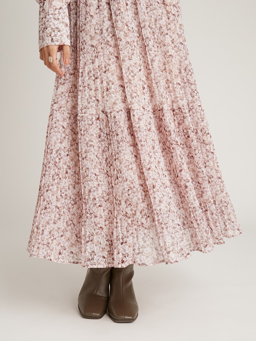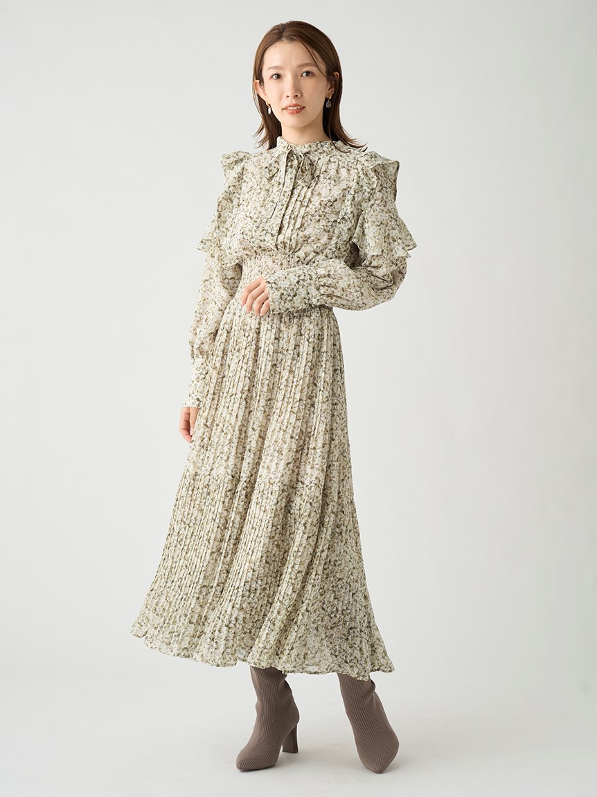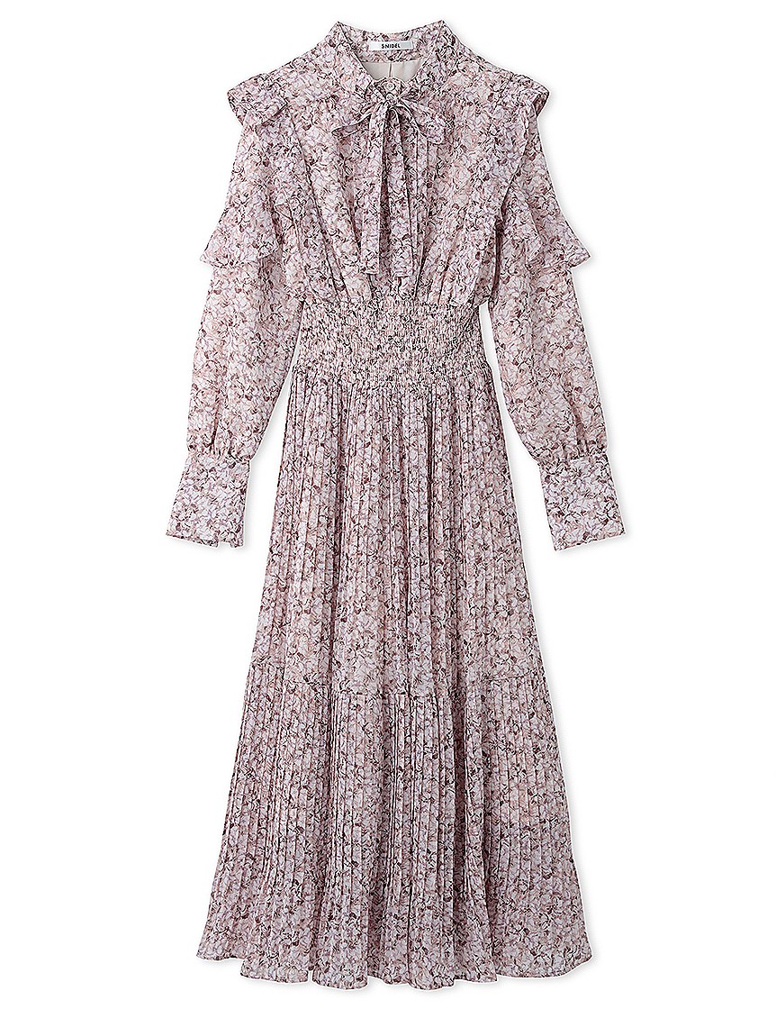 プリントプリーツワンピース