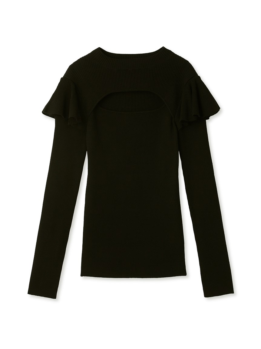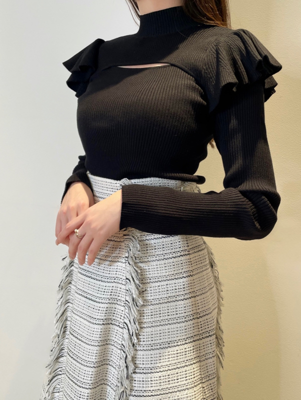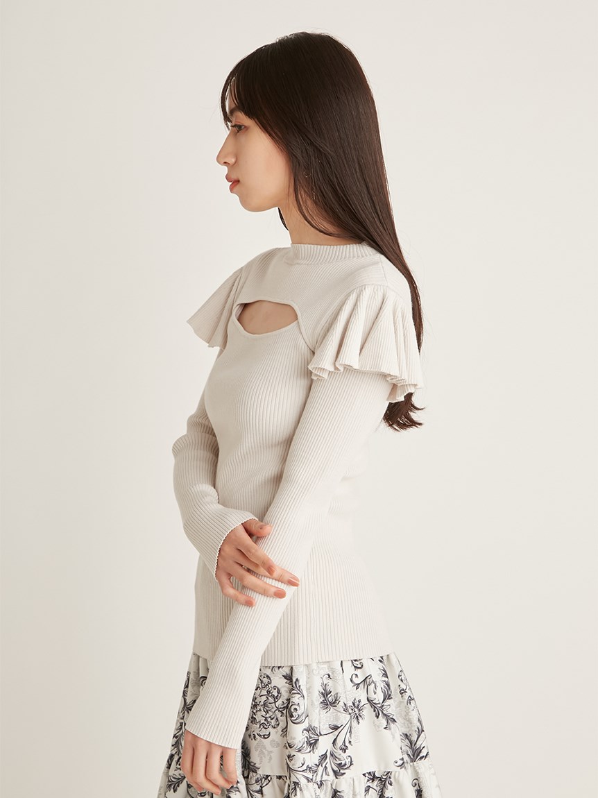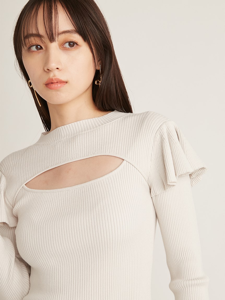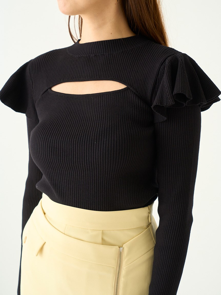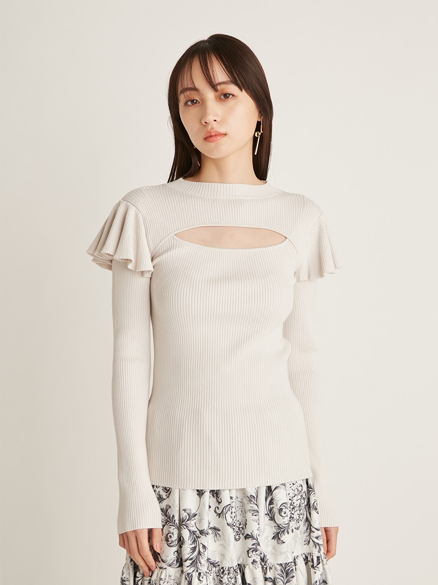 デコルテオープンフリルニットトップス