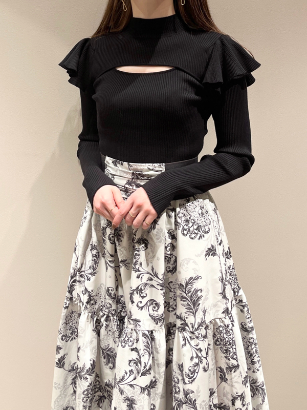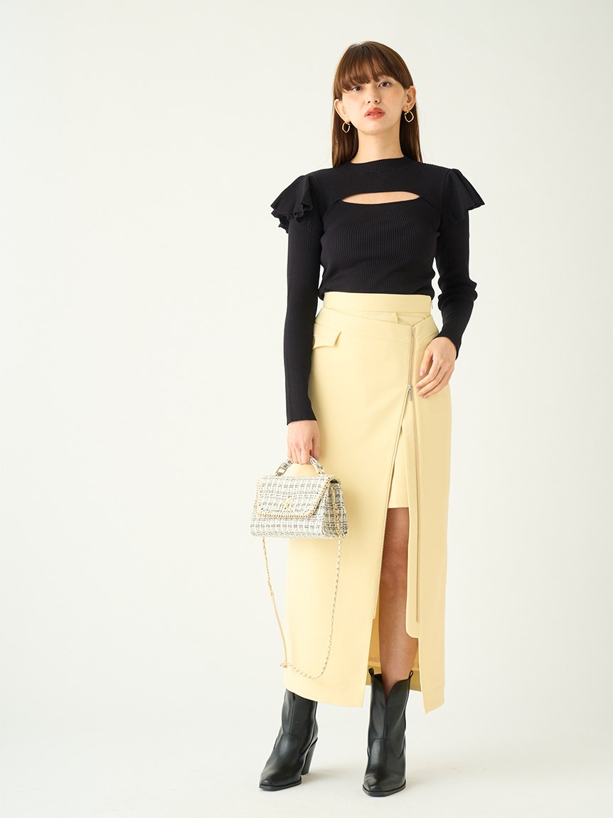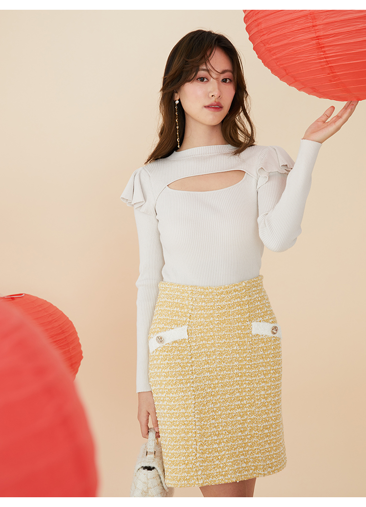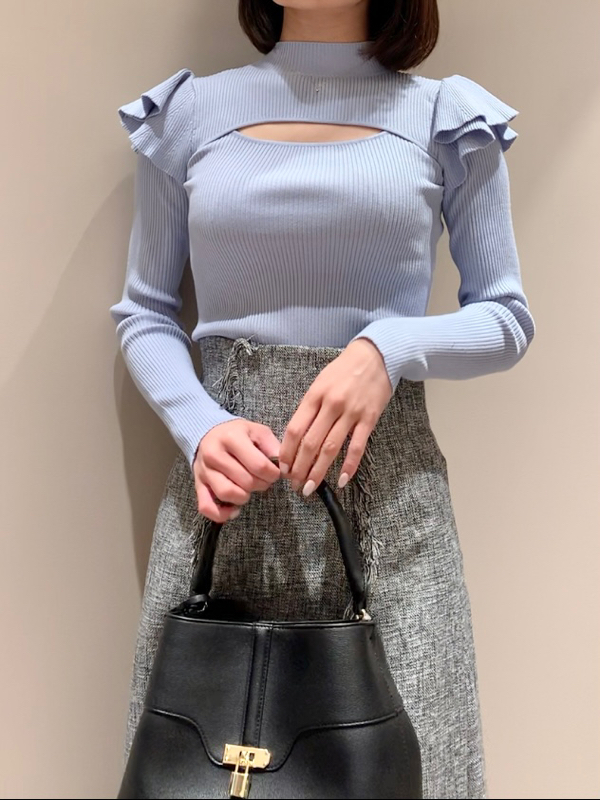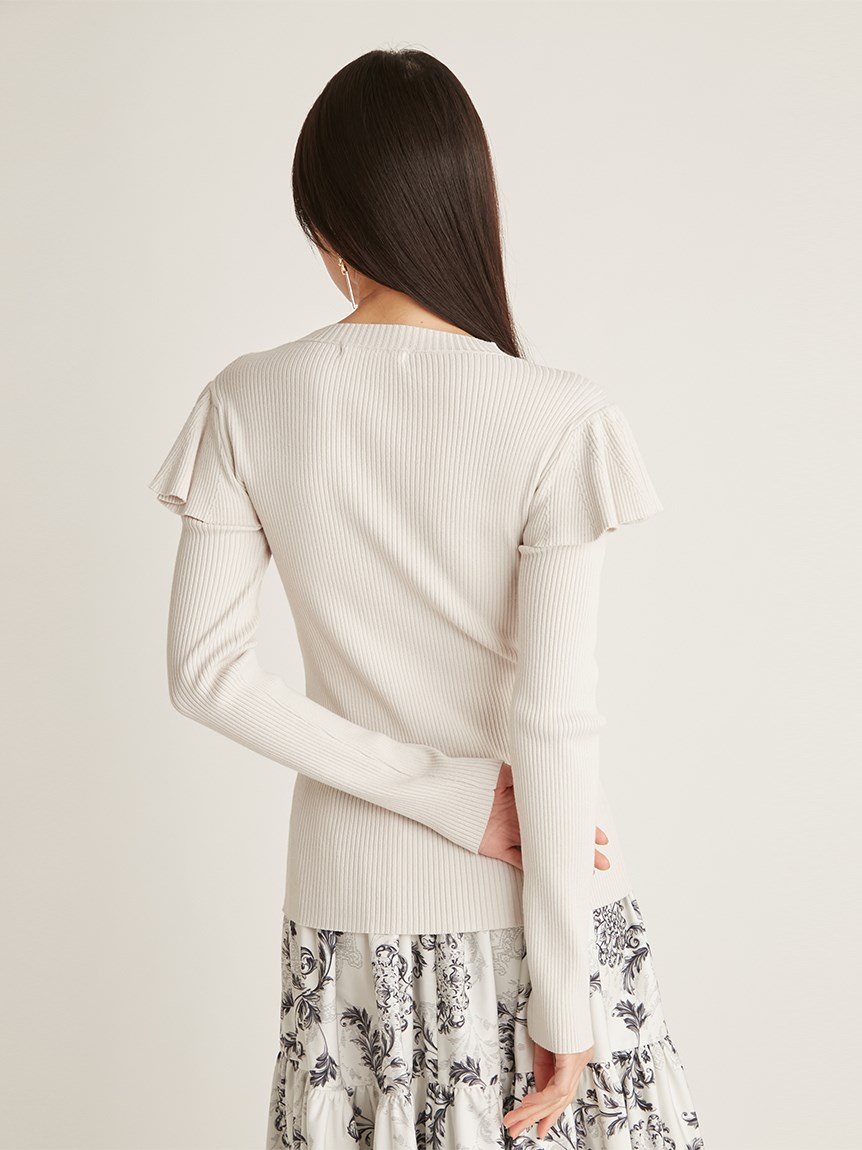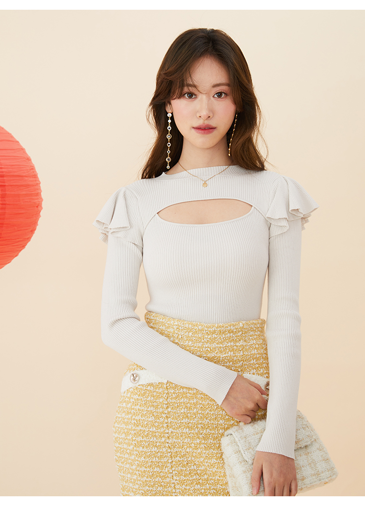 デコルテオープンフリルニットトップス