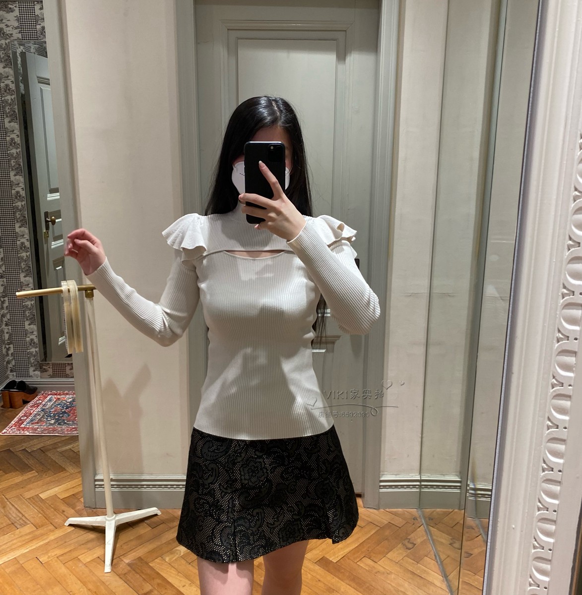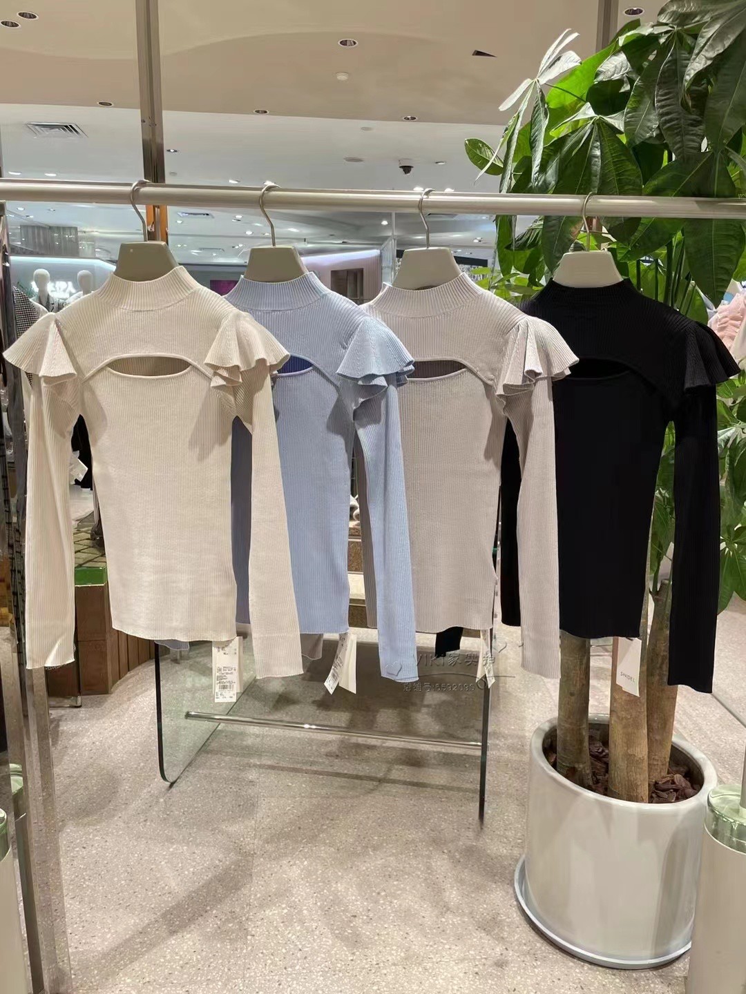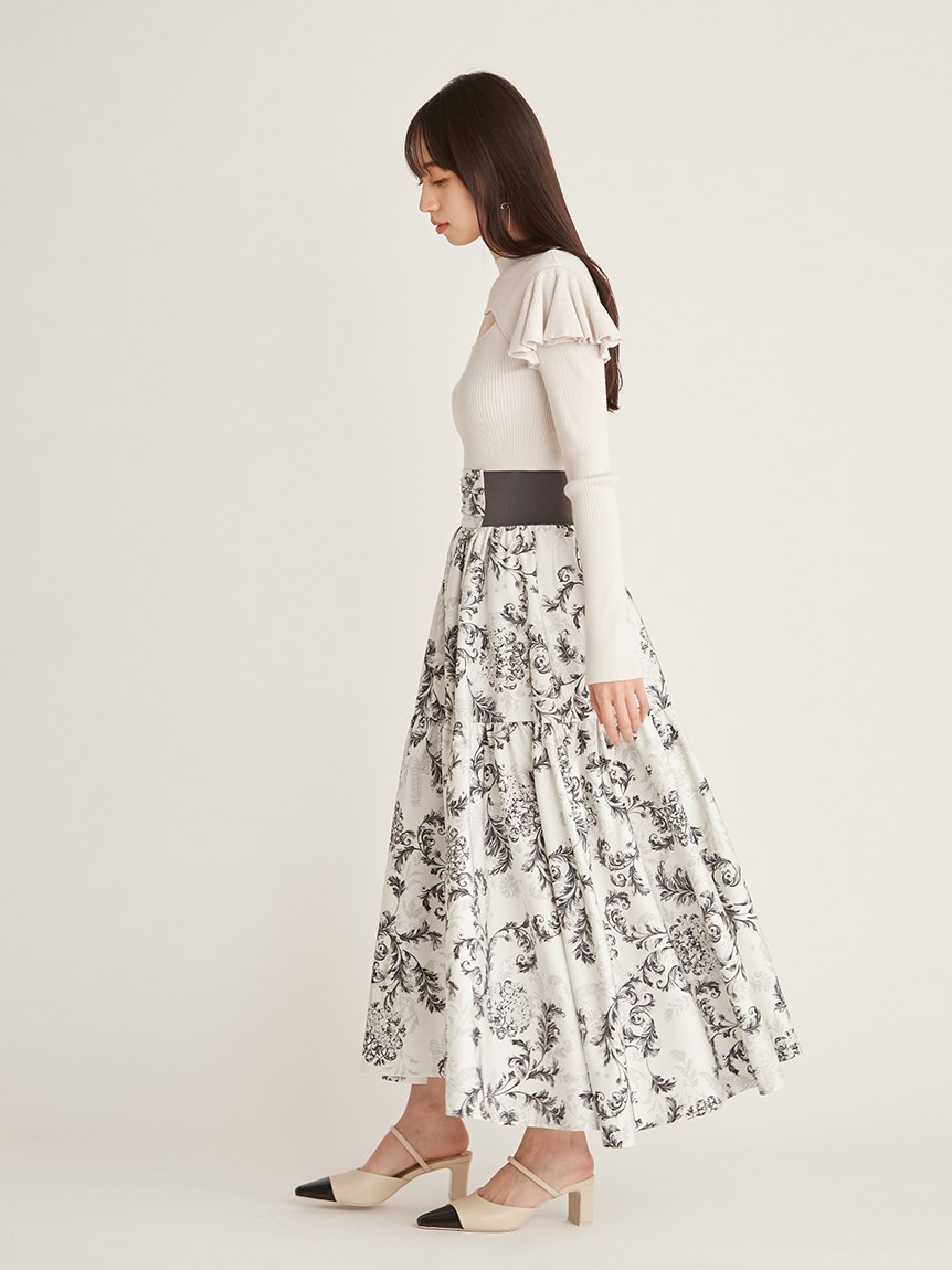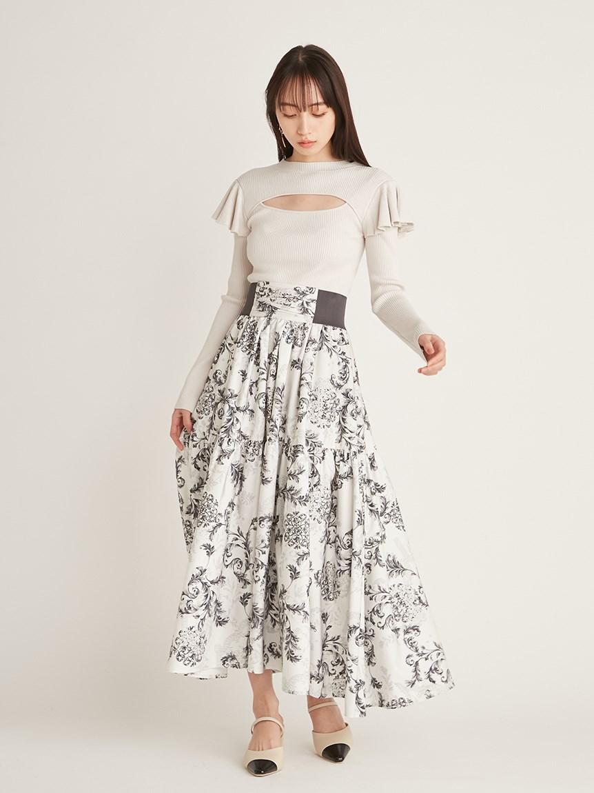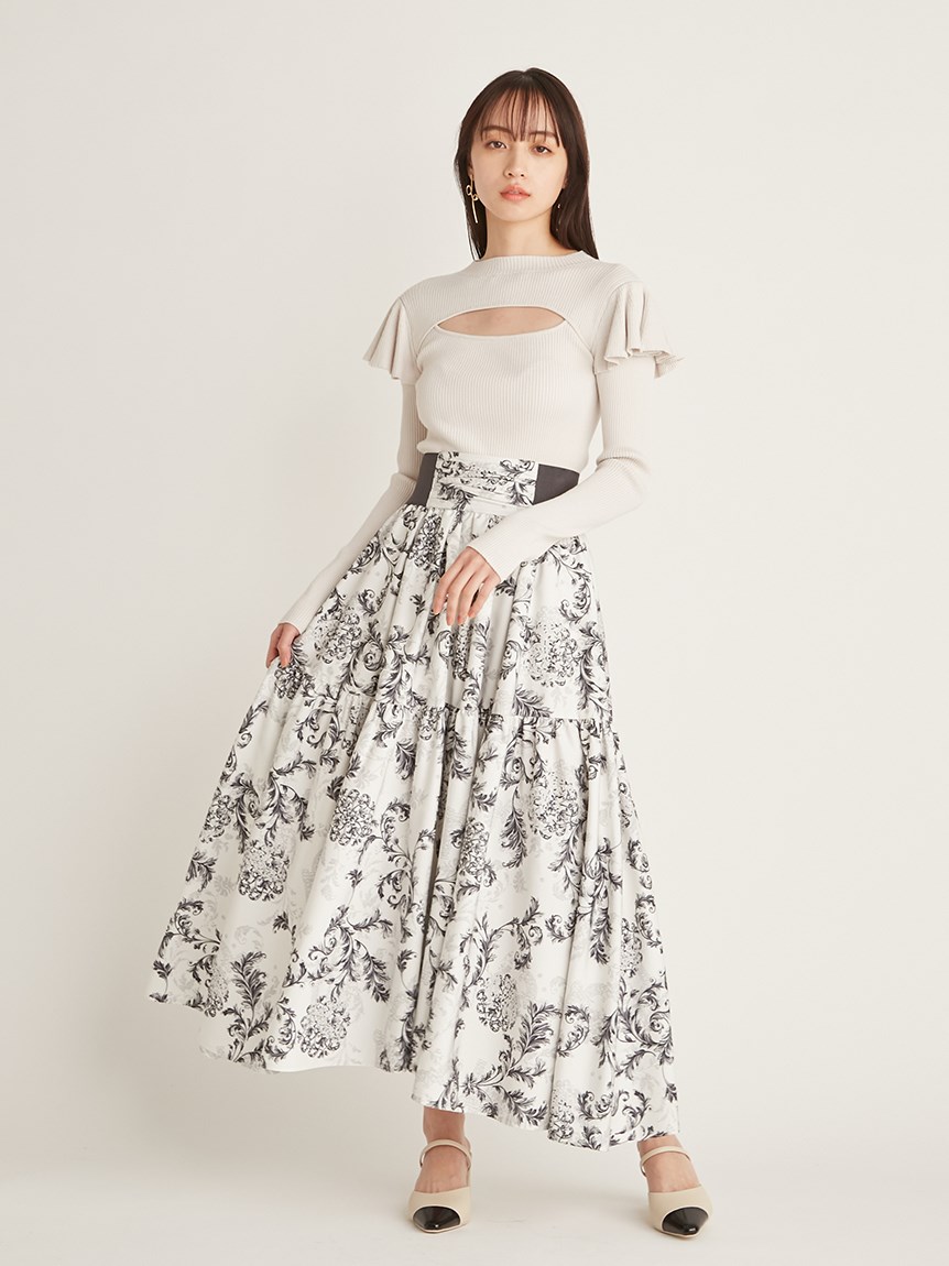 デコルテオープンフリルニットトップス