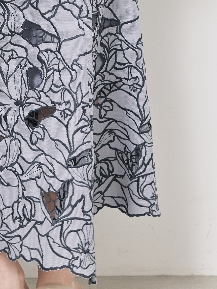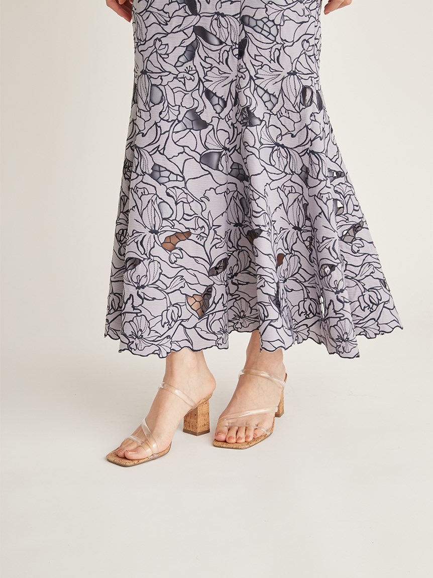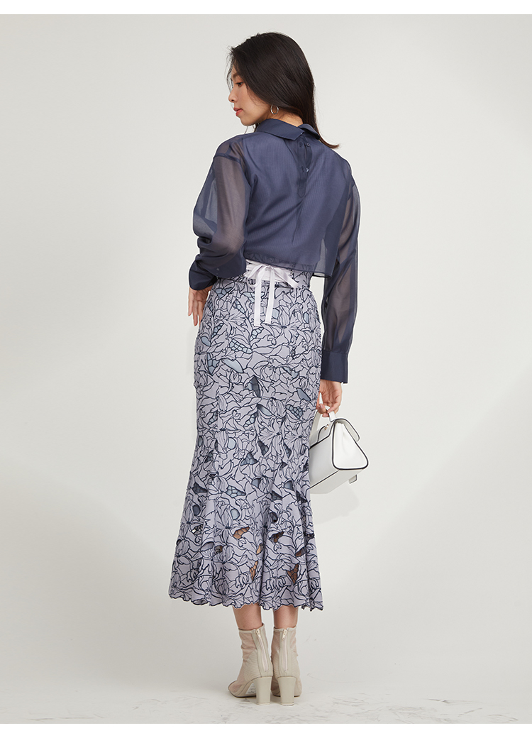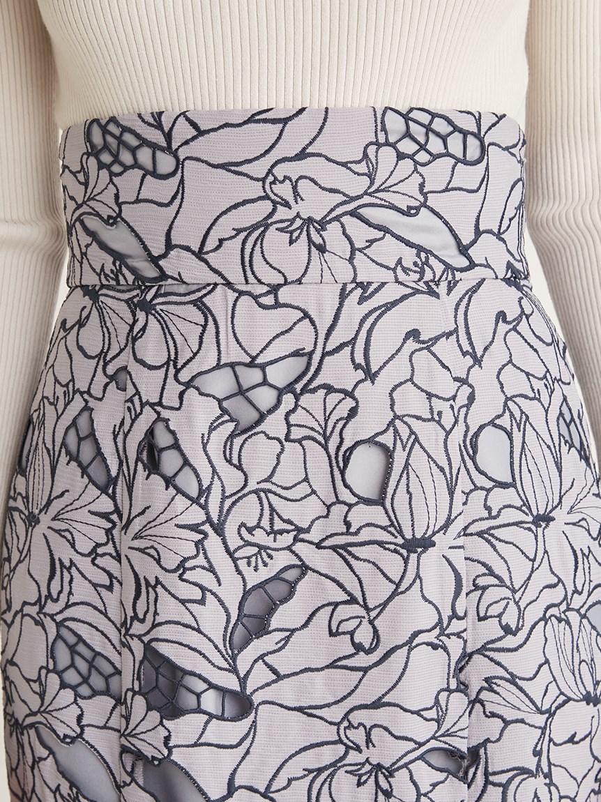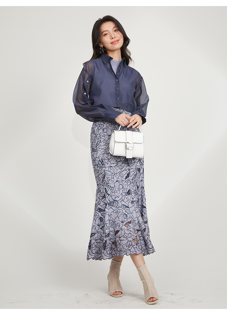 オリジナルの柄を落とし込んだ華やかなカッティングレースのマーメイドスカート。女性らしいメリハリのあるラインでスタイルアップを叶えてくれます。バックウエストにはレースアップデザインを採用し、後ろ姿まで愛らしさを演出。トップスはウエストにINしてすっきりとまとめるのがおすすめです。