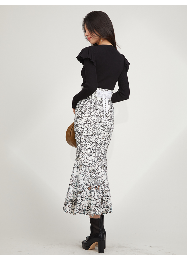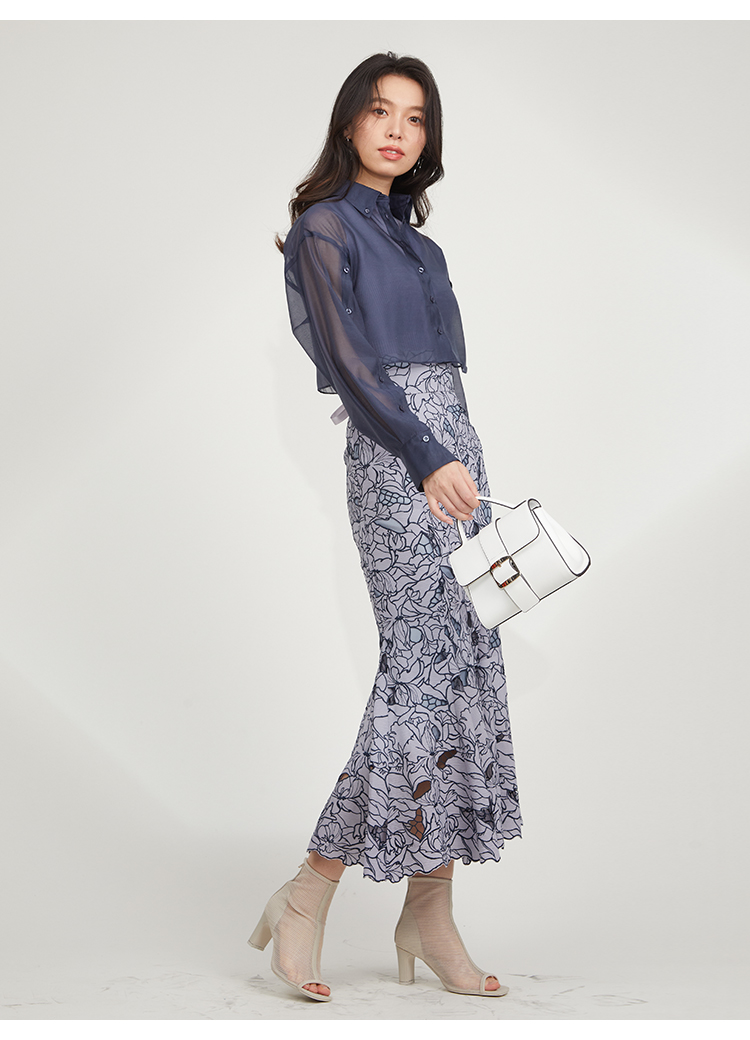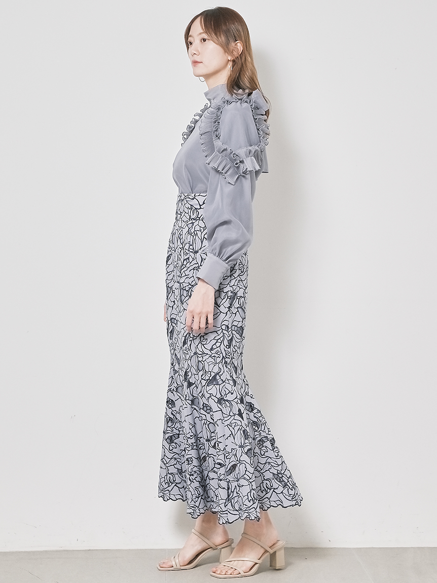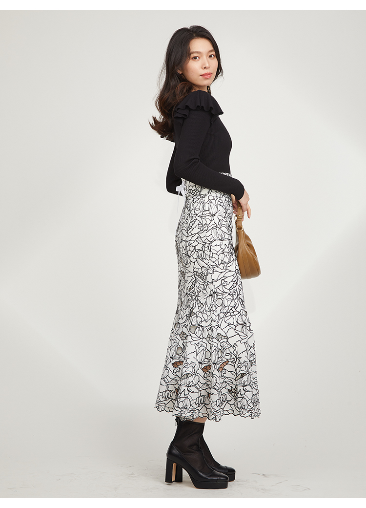 【プラスワンでレディ度が高まるカッティングレースのマーメイドスカート】