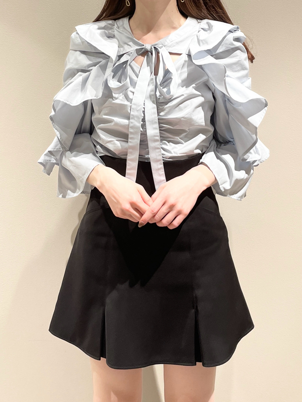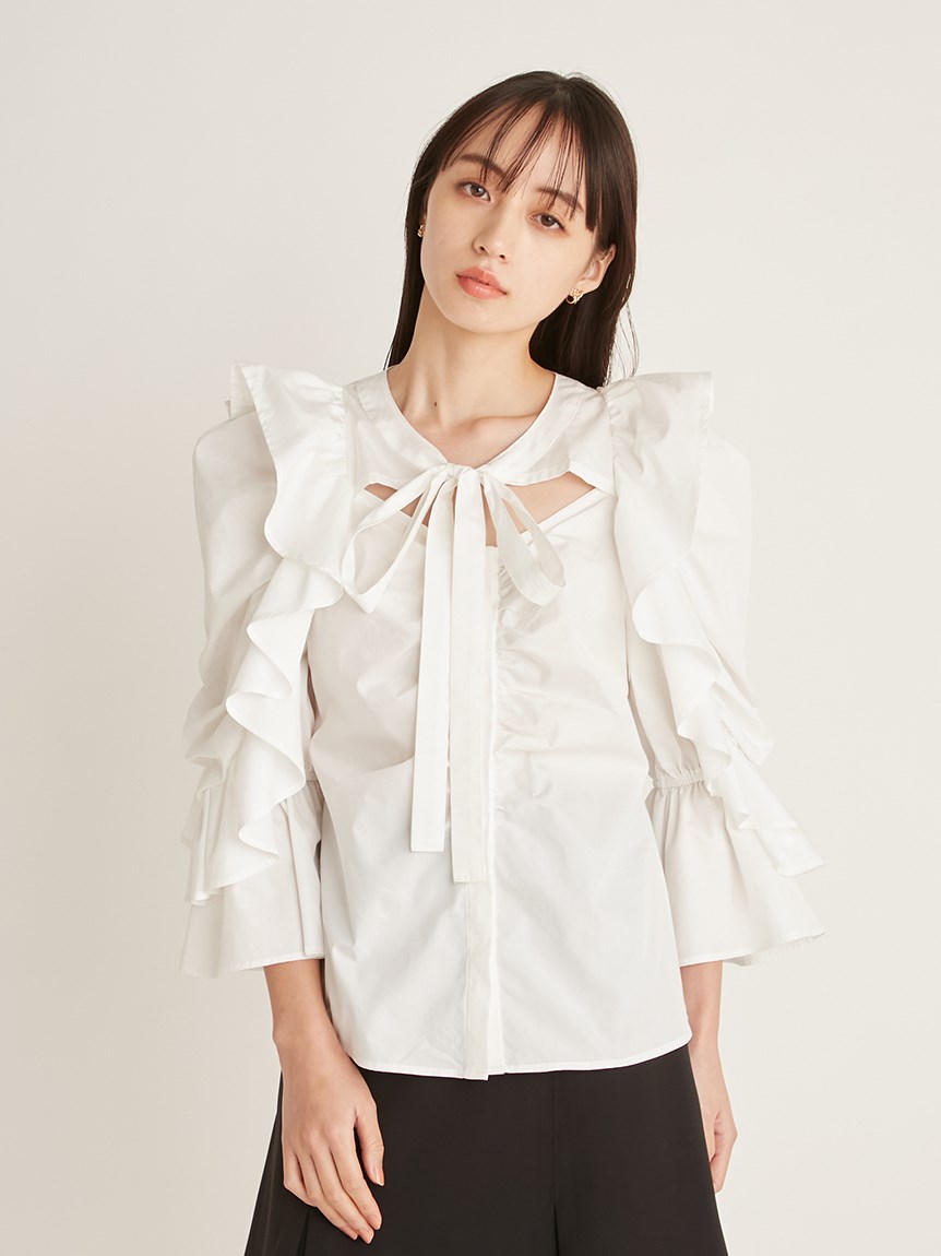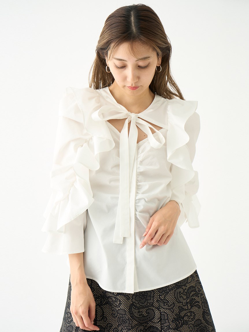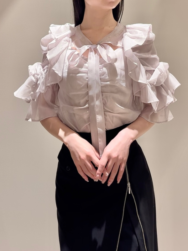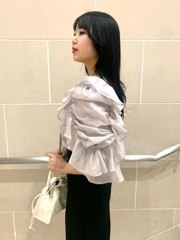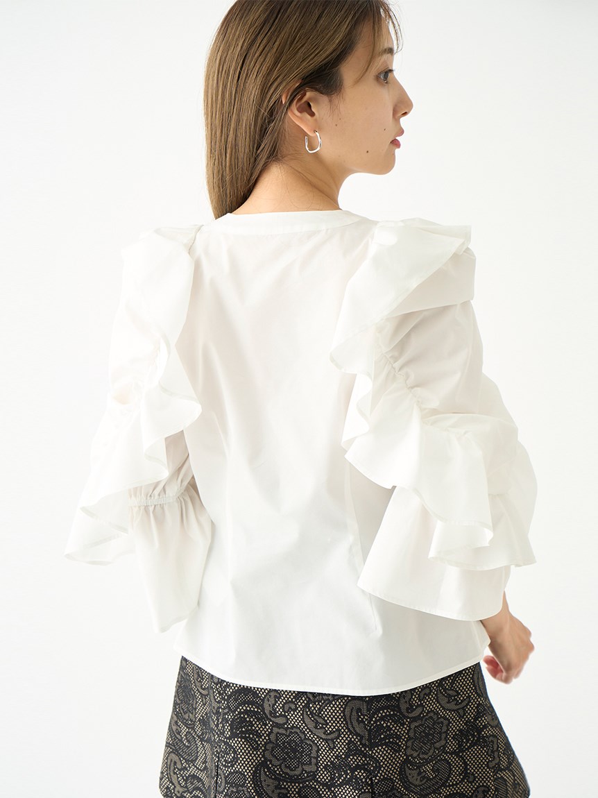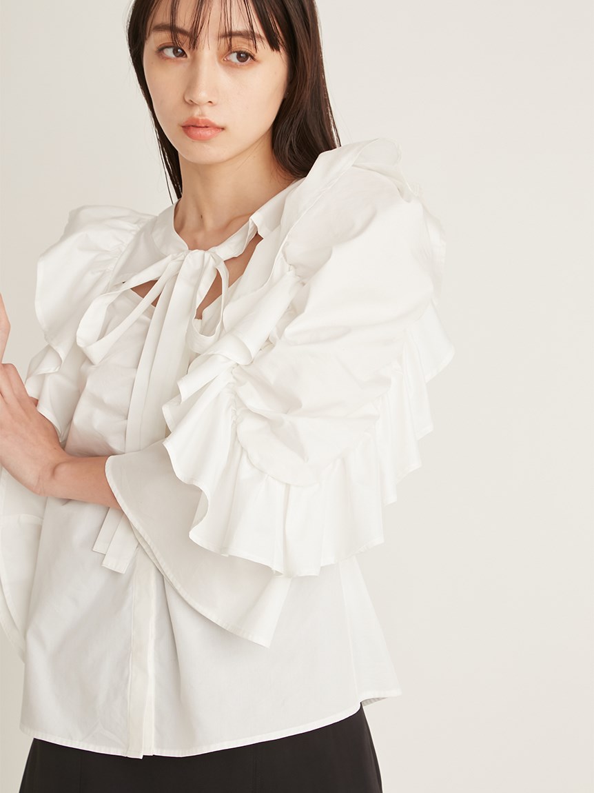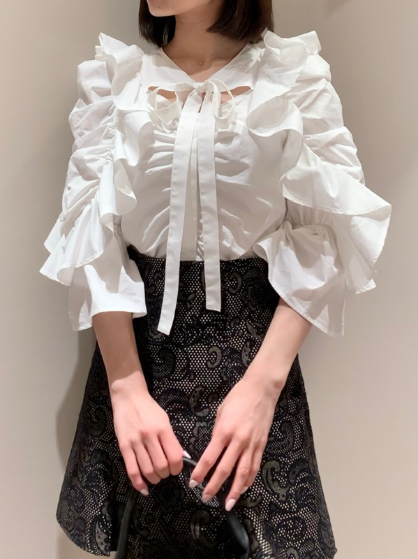 【存在感のあるフリルがスタイリングを華やかに魅せるブラウス】