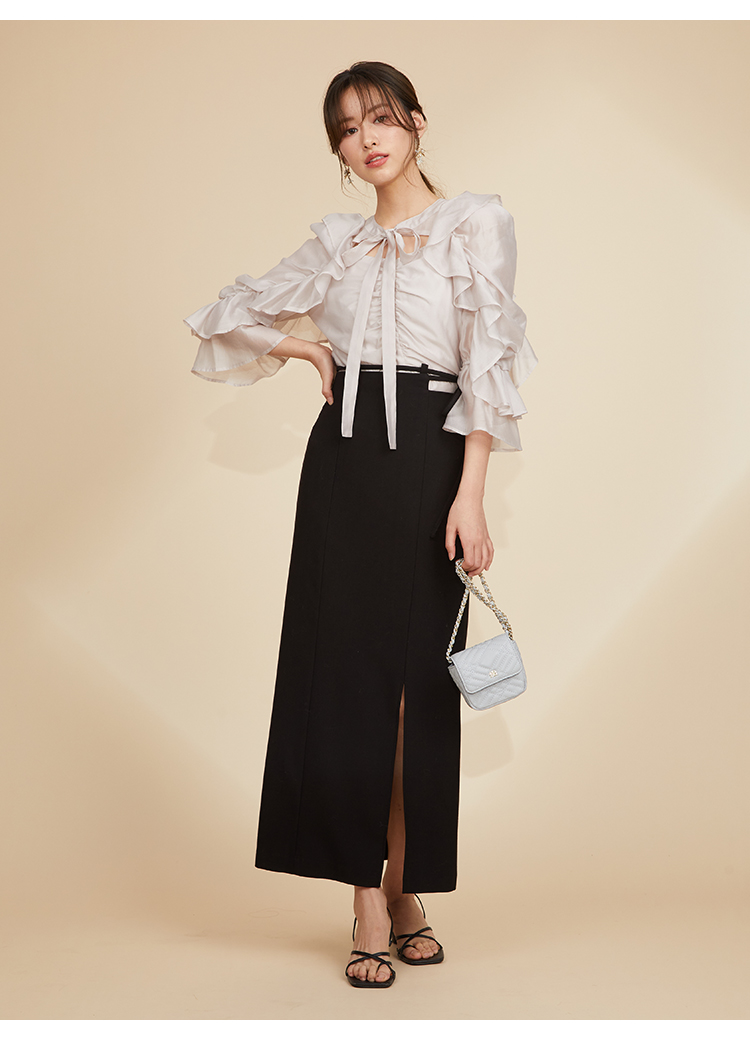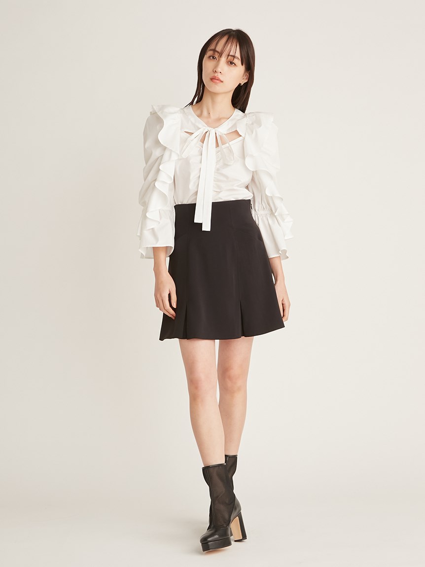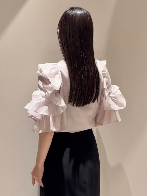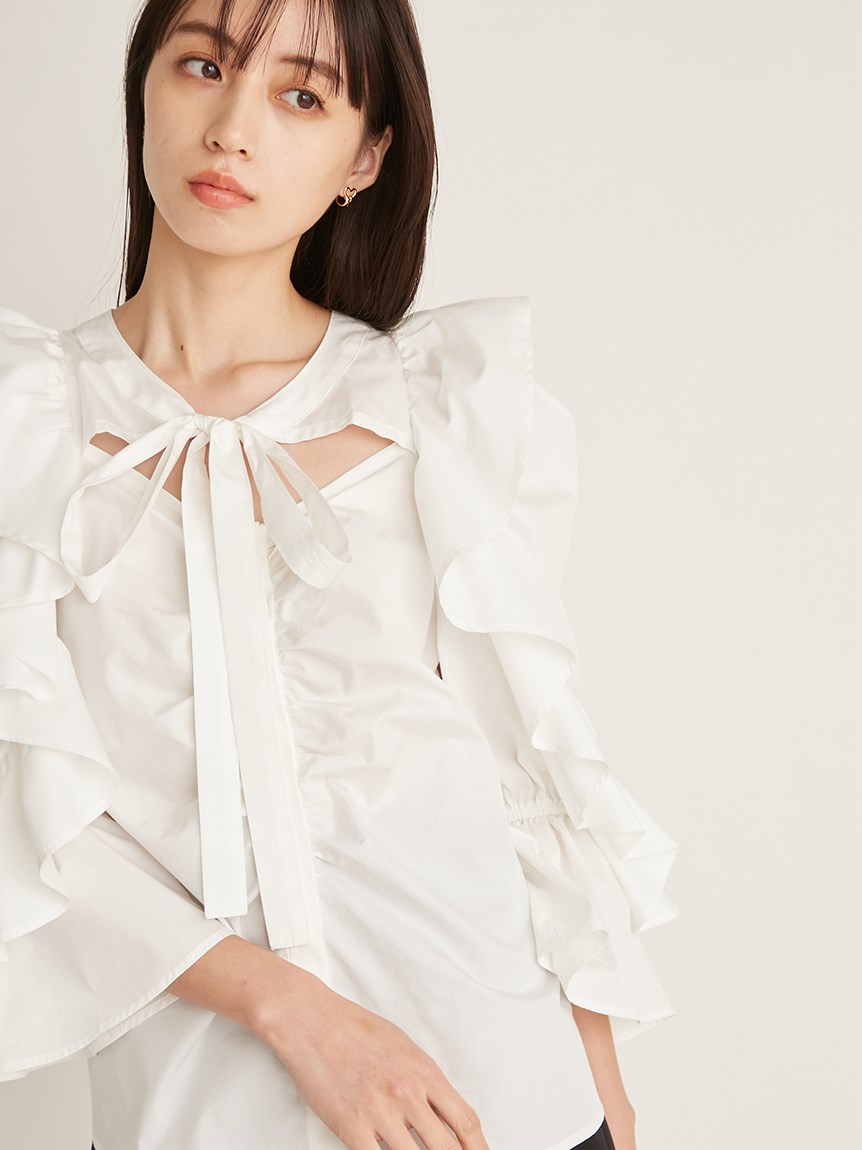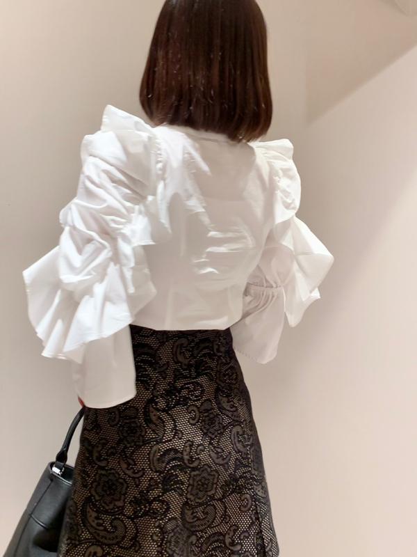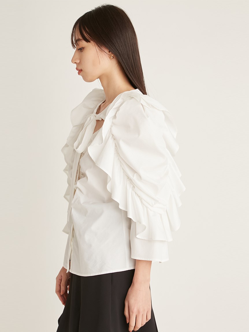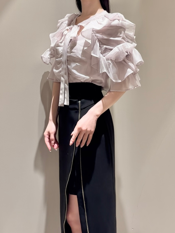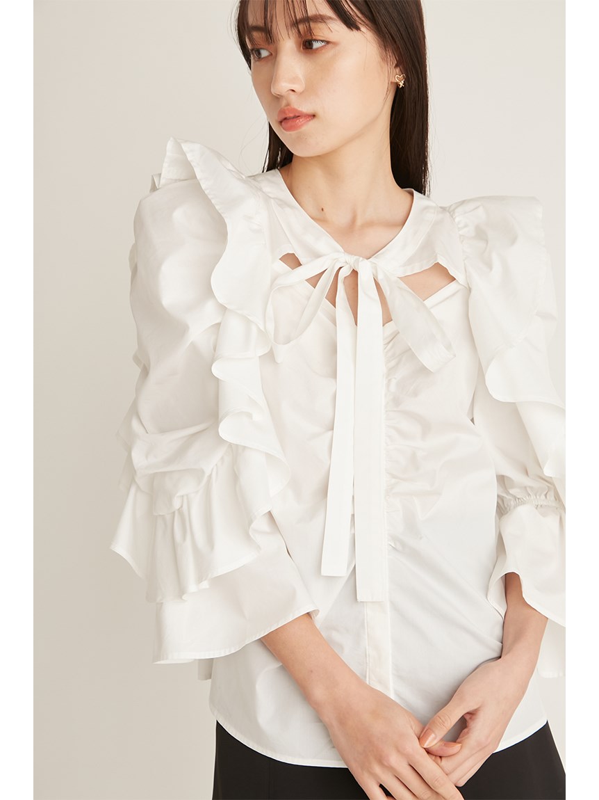 【存在感のあるフリルがスタイリングを華やかに魅せるブラウス】