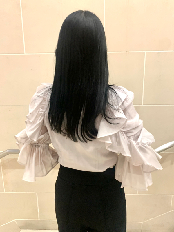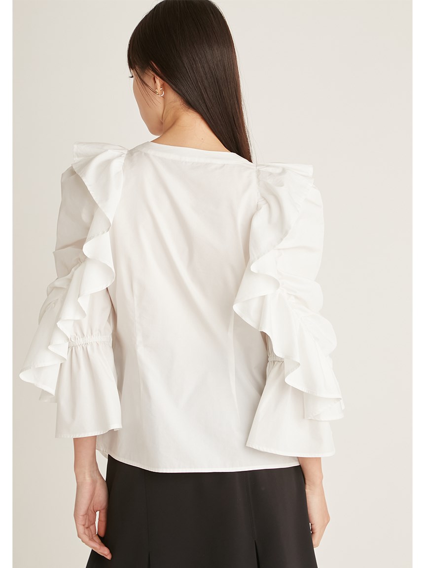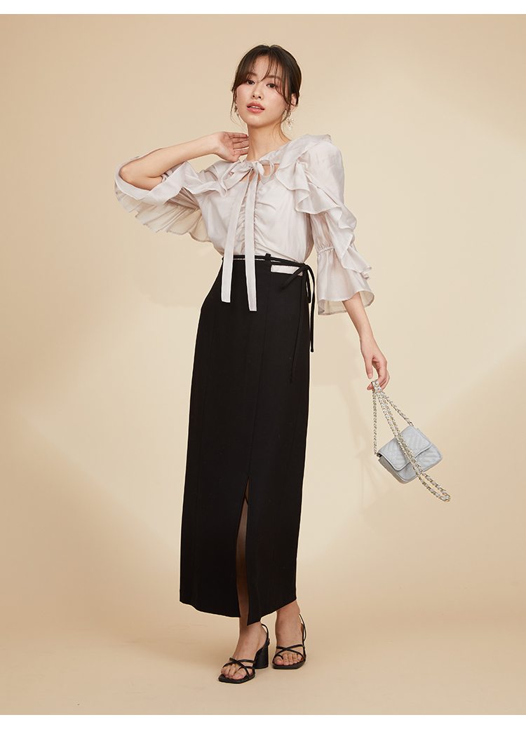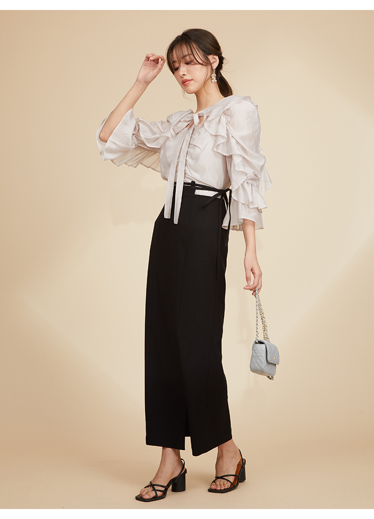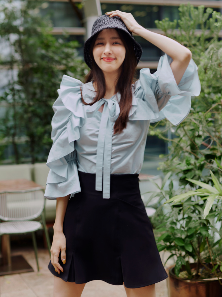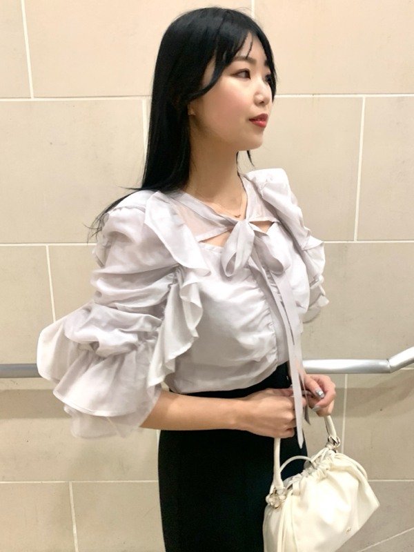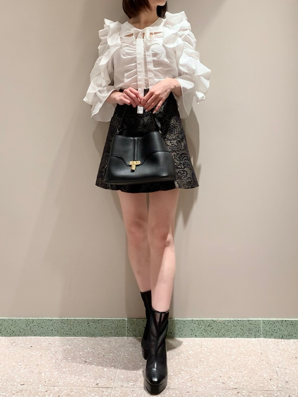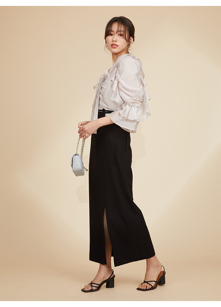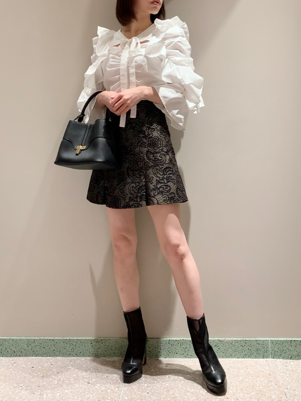 【存在感のあるフリルがスタイリングを華やかに魅せるブラウス】