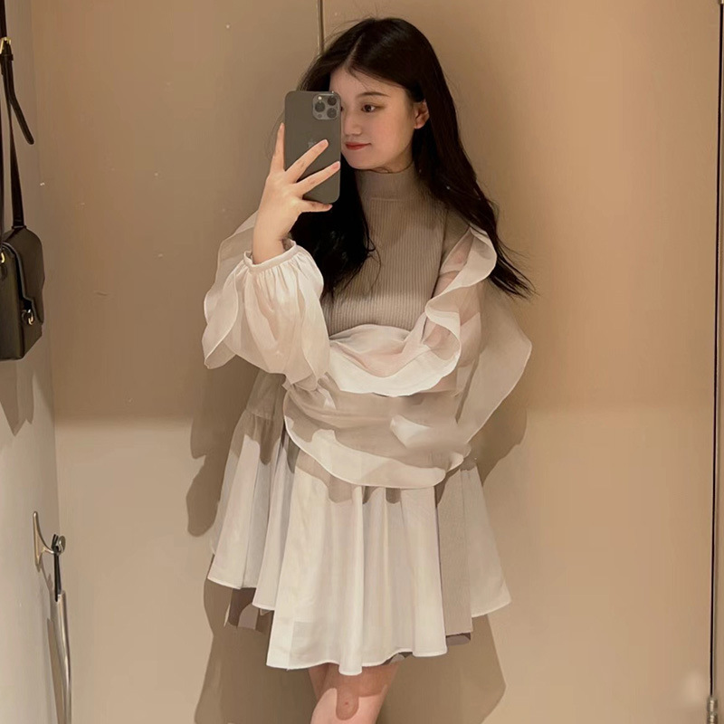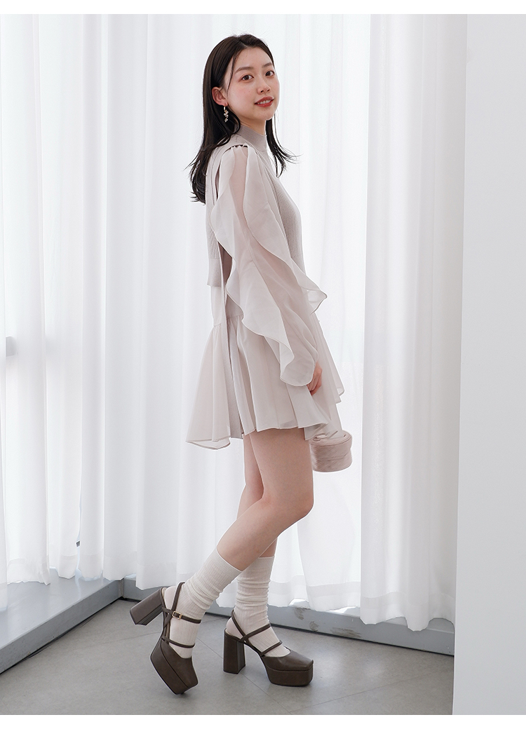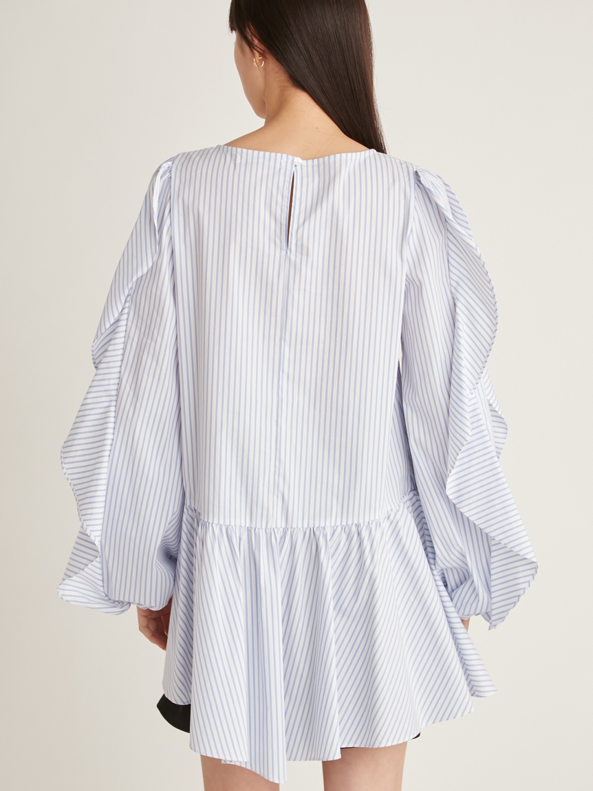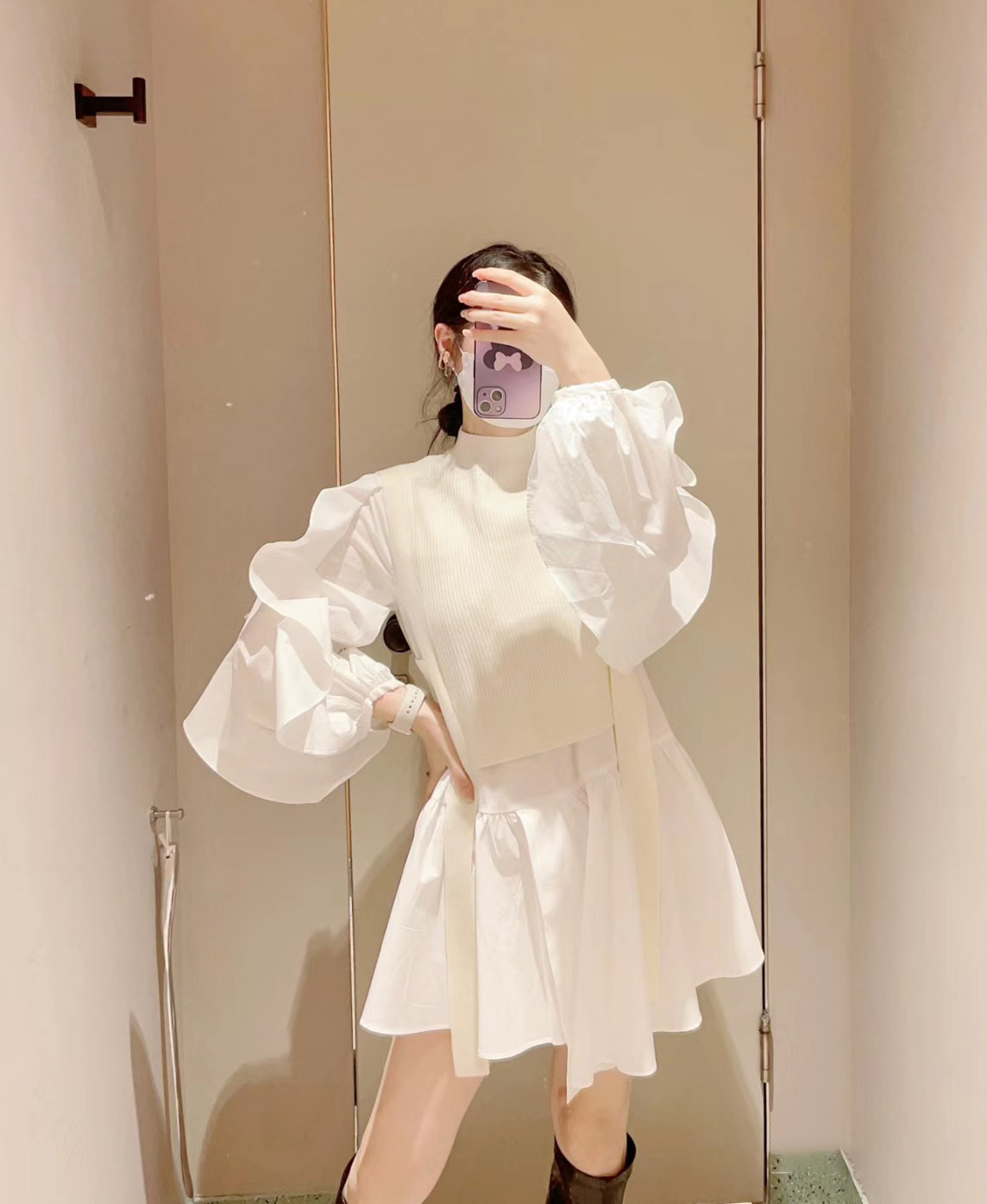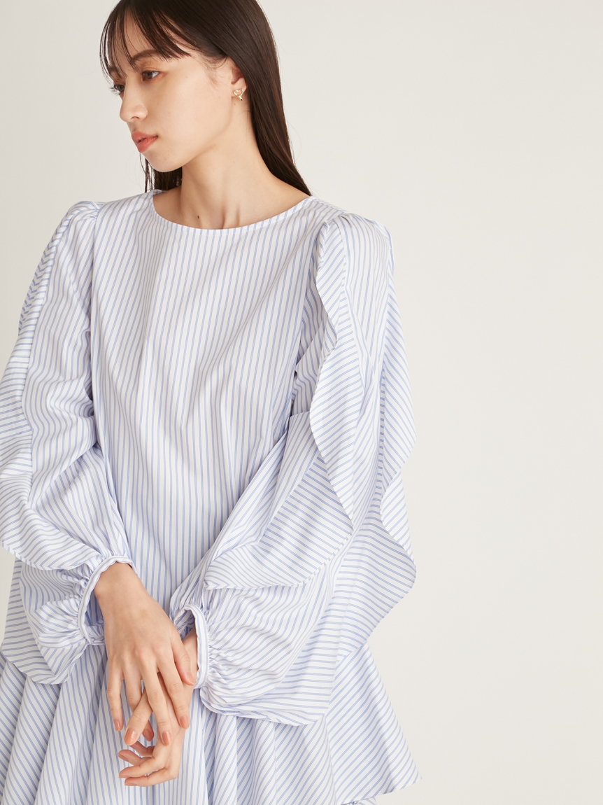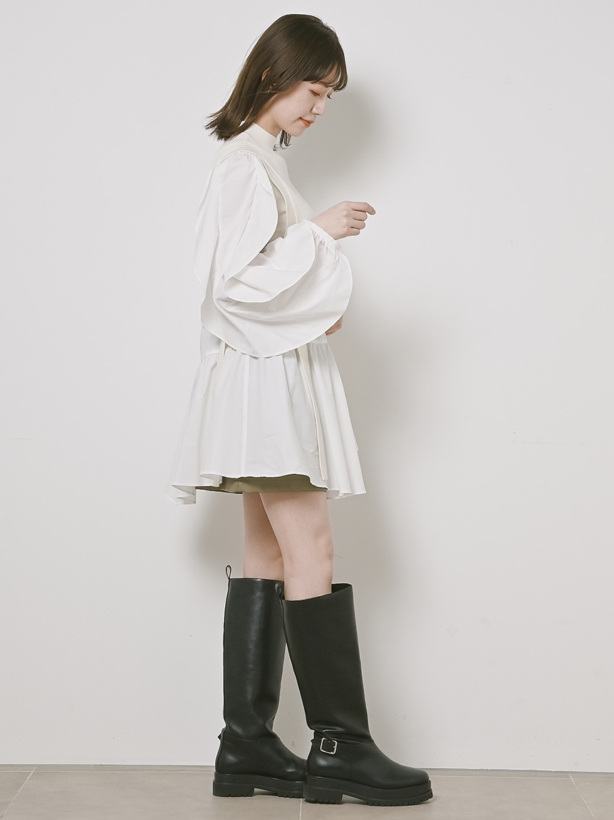 大胆な袖のフリルが目を引くチュニックブラウスにニットベストを組み合わせたセットアイテム。これだけで今年らしいレイヤードスタイルが完成する優秀アイテムです。アシンメトリーなヘムデザインで、フェミニンな中にモードなエッセンスをプラス。それぞれ単品でも活躍してくれるので、コーディネートの幅は一気に広がります。