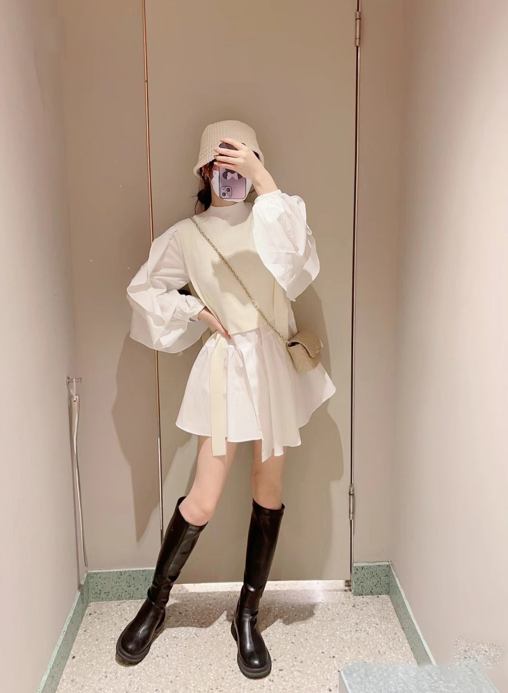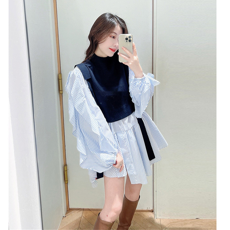 【トレンド感溢れるチュニックブラウス×ニットベストの優秀セット】