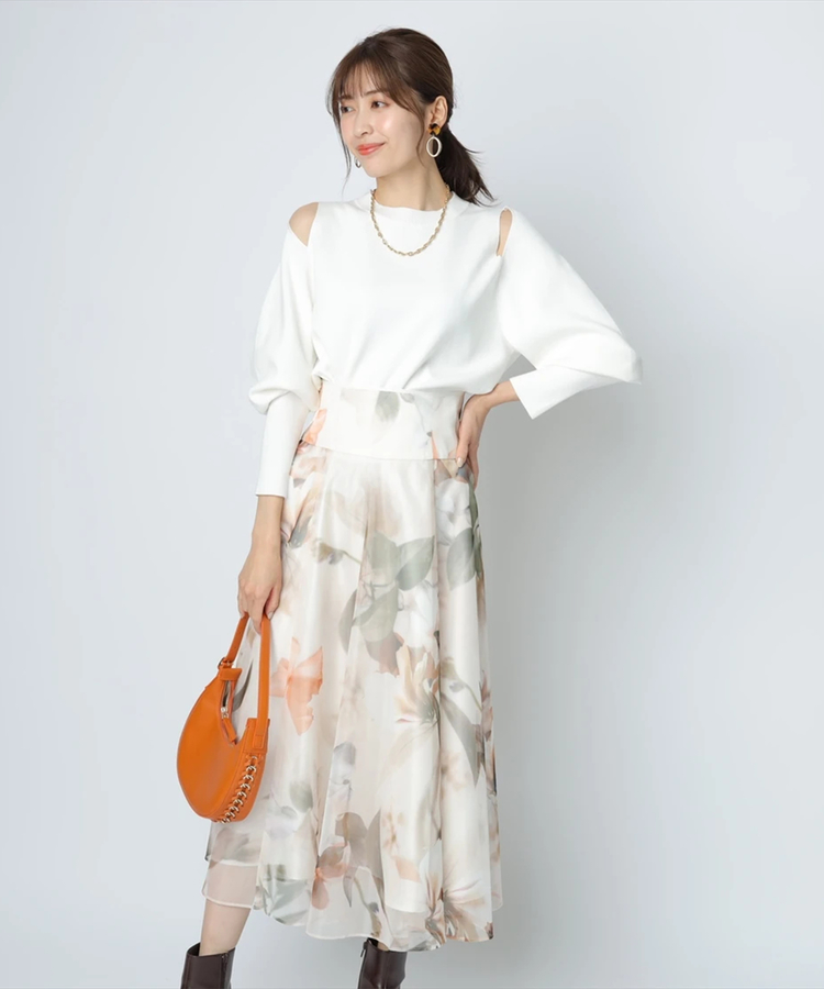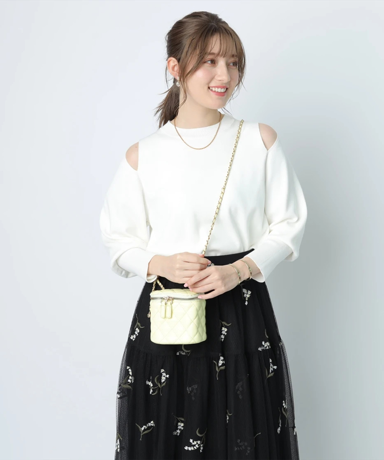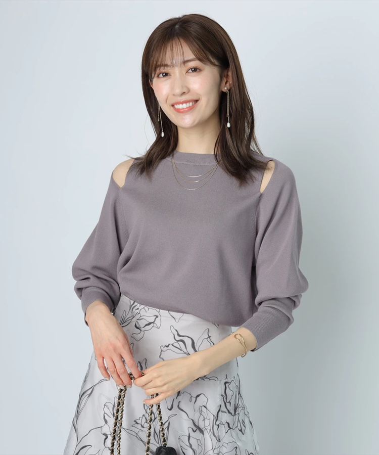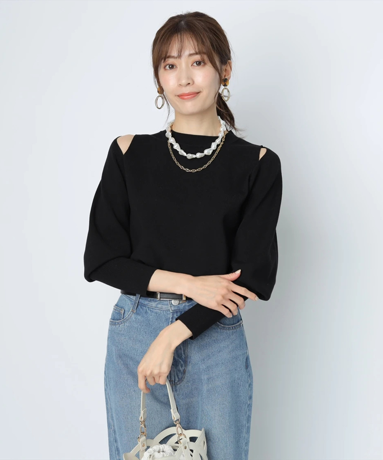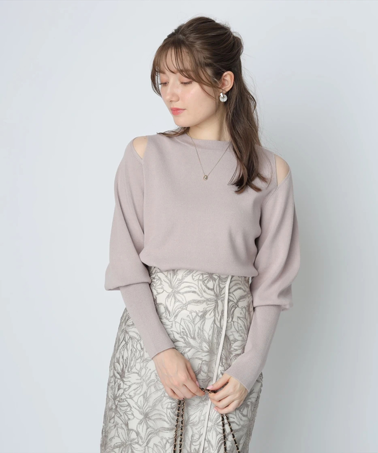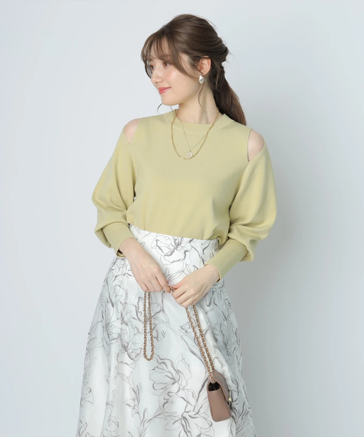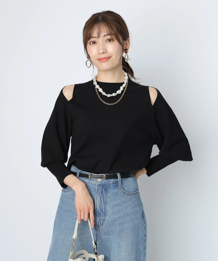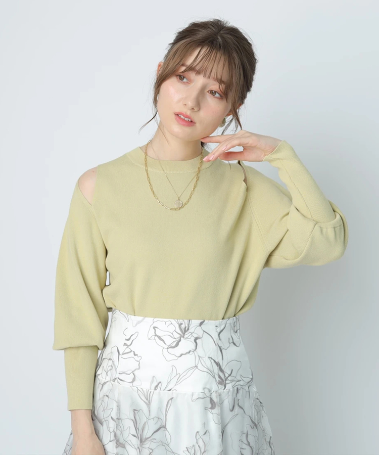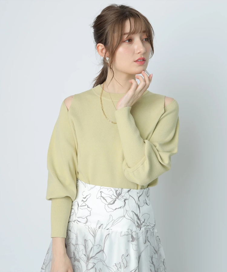 ぽわんとしたボリューム感のあるスリーブも可愛らしいポイントです。ソフトタッチなニットで着心地もノンストレス◎