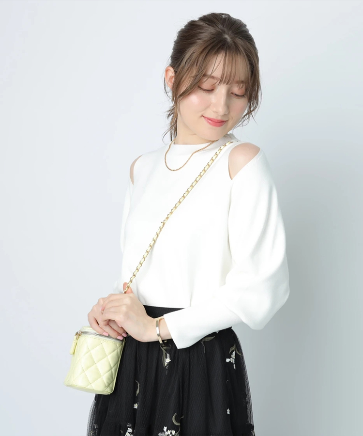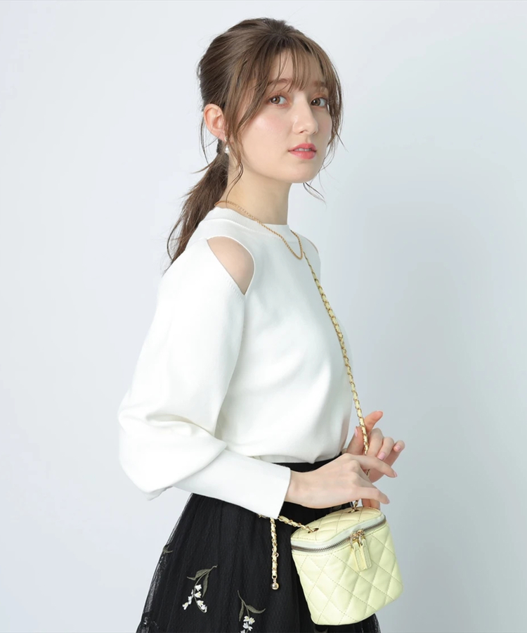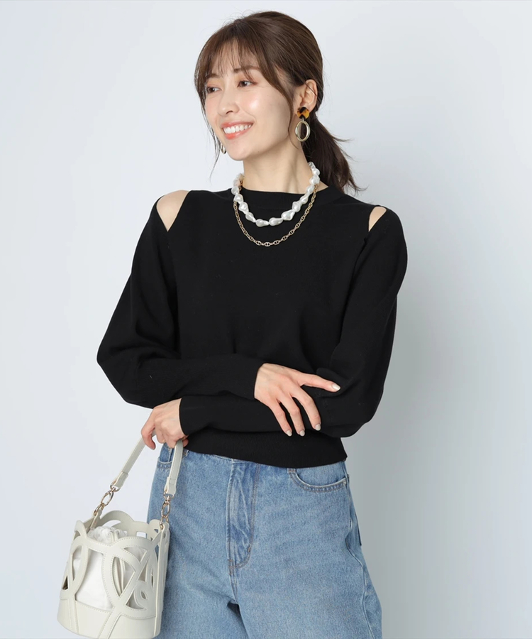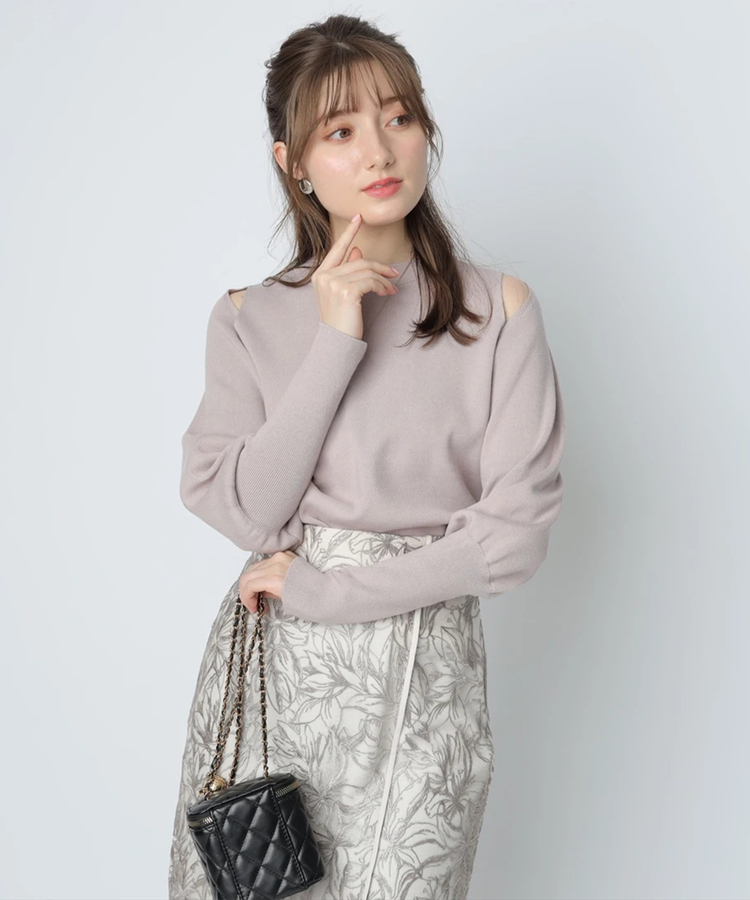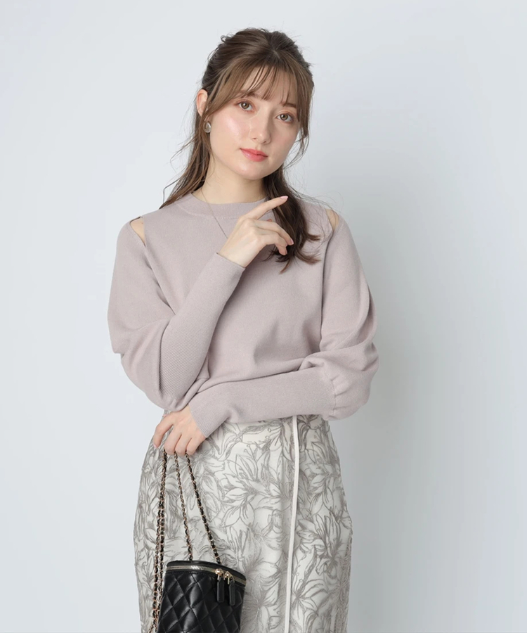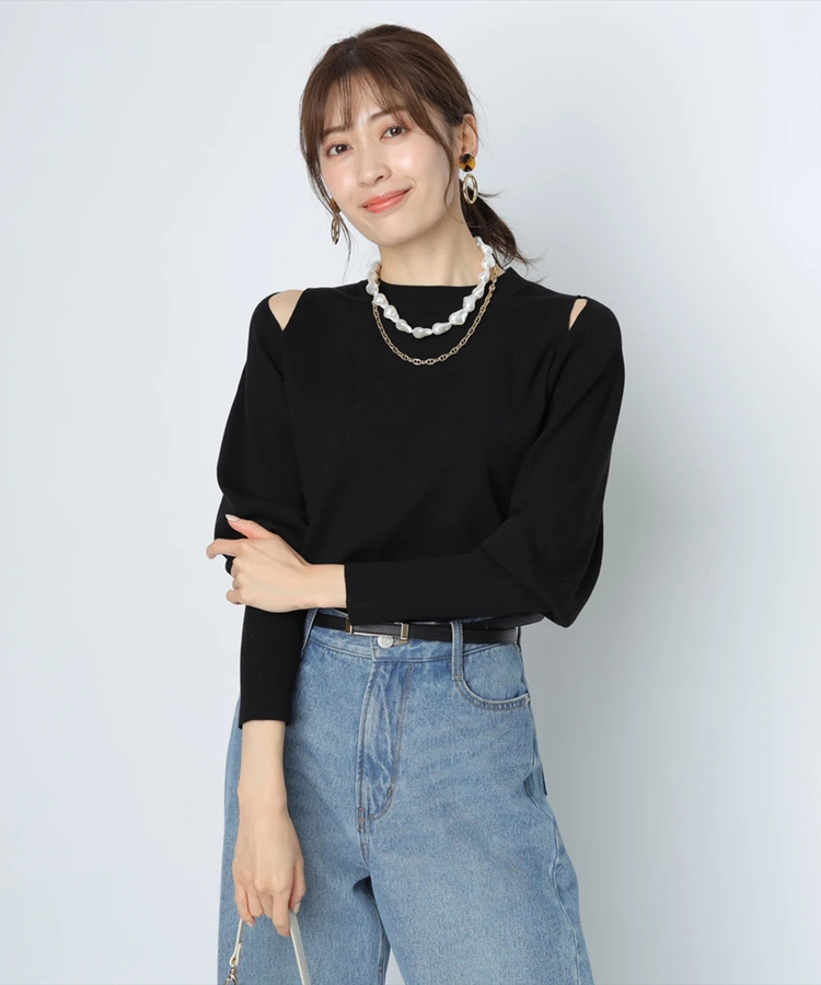 ちらりと肌がのぞくスリットデザインがセンシュアルなニット。