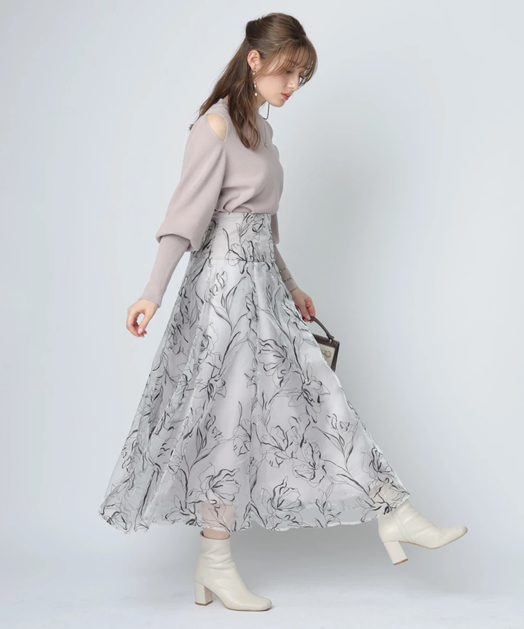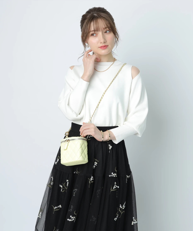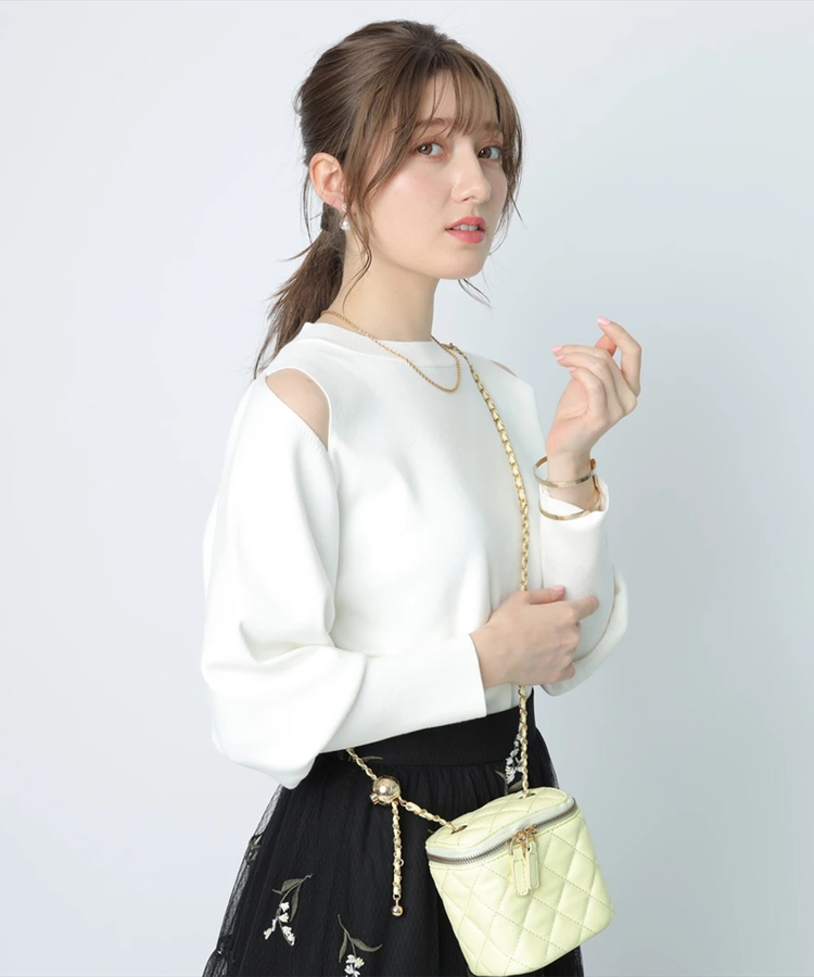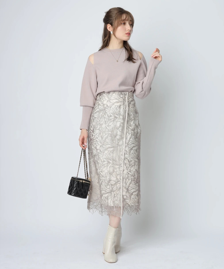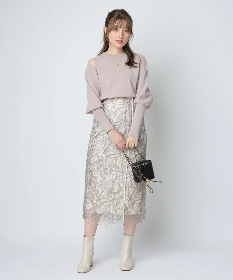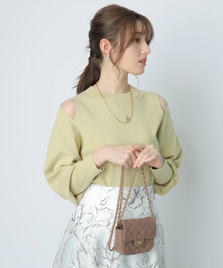 ちらりと肌がのぞくスリットデザインがセンシュアルなニット。
