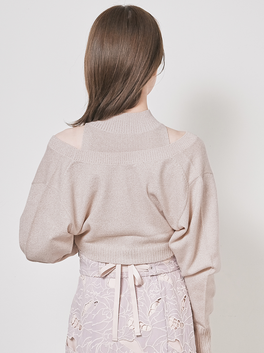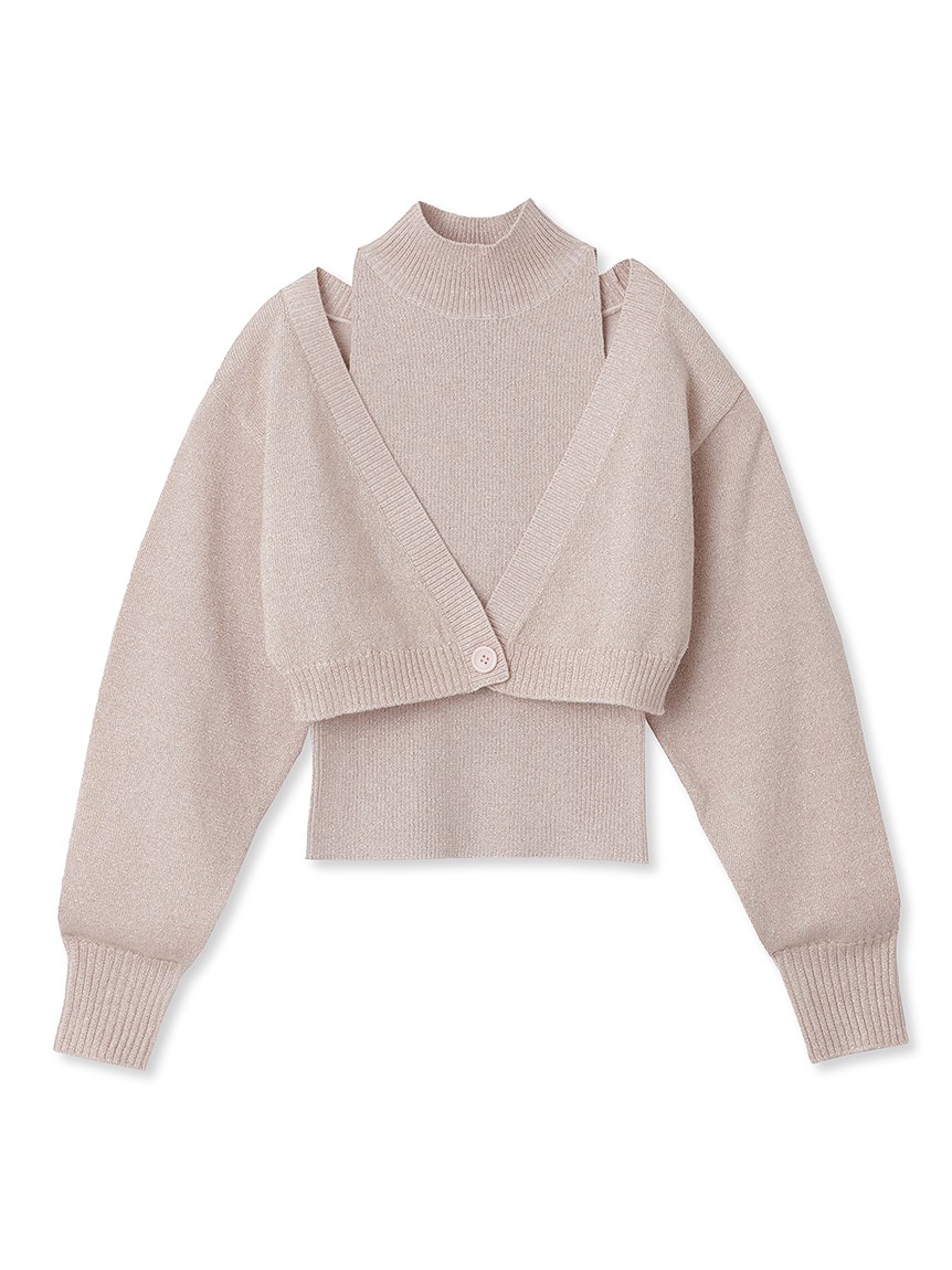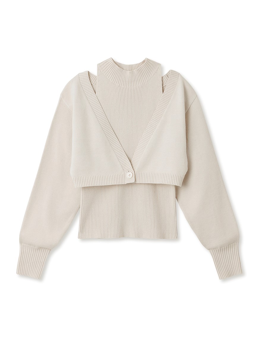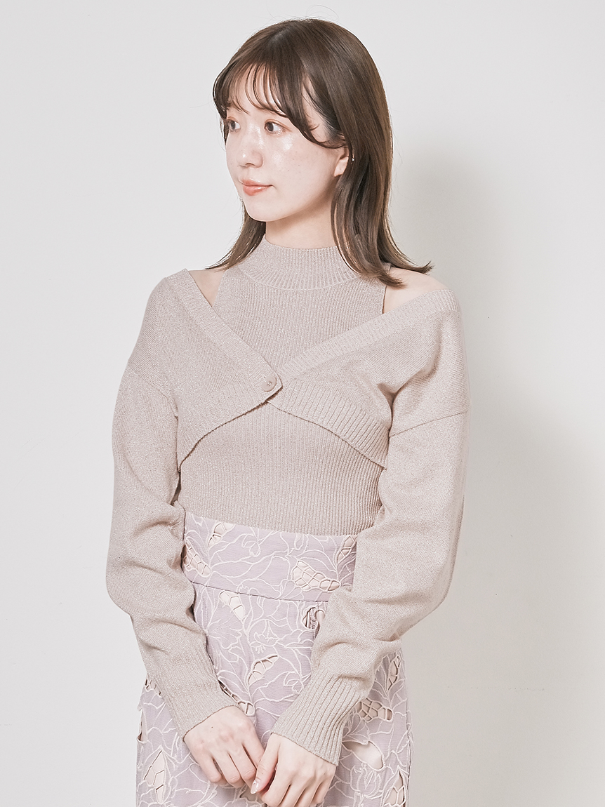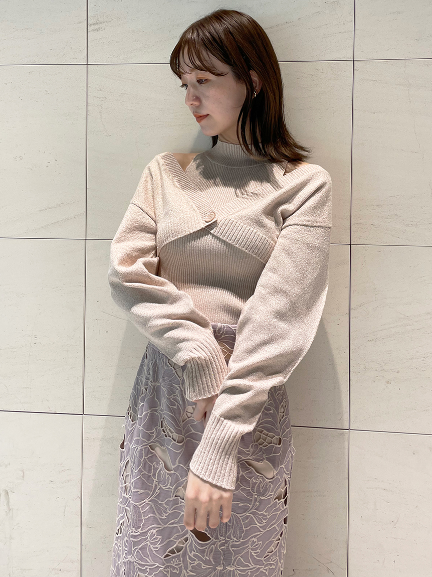 きれいめな質感のニットとリブニットを組み合わせました。淡い色合いがフェミニンなホワイト、ラメが入った、ベージュ、ピンクベージュの3色展開でお届けします。