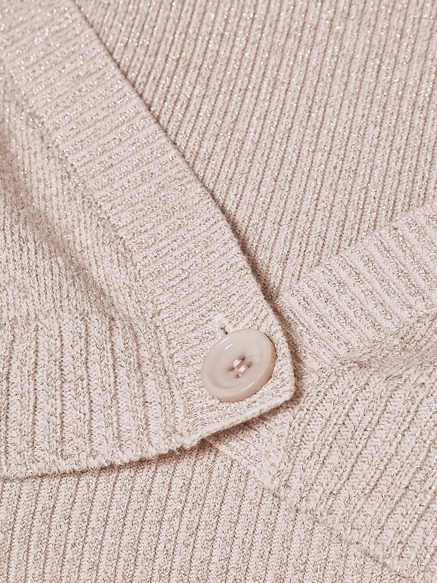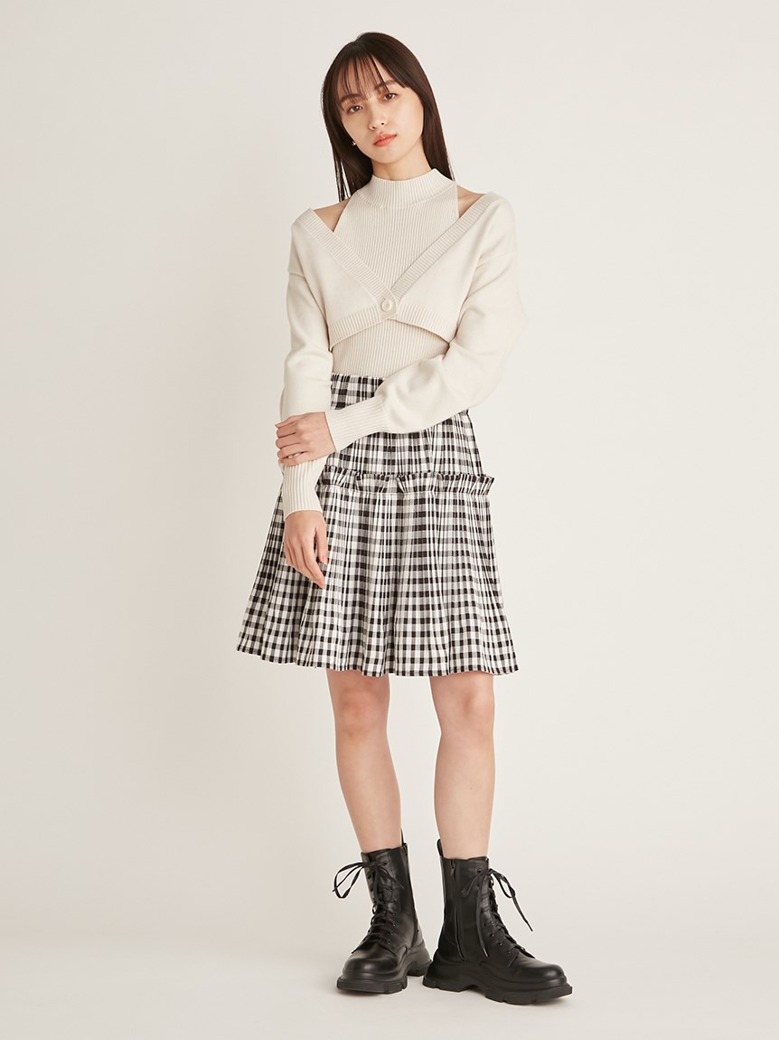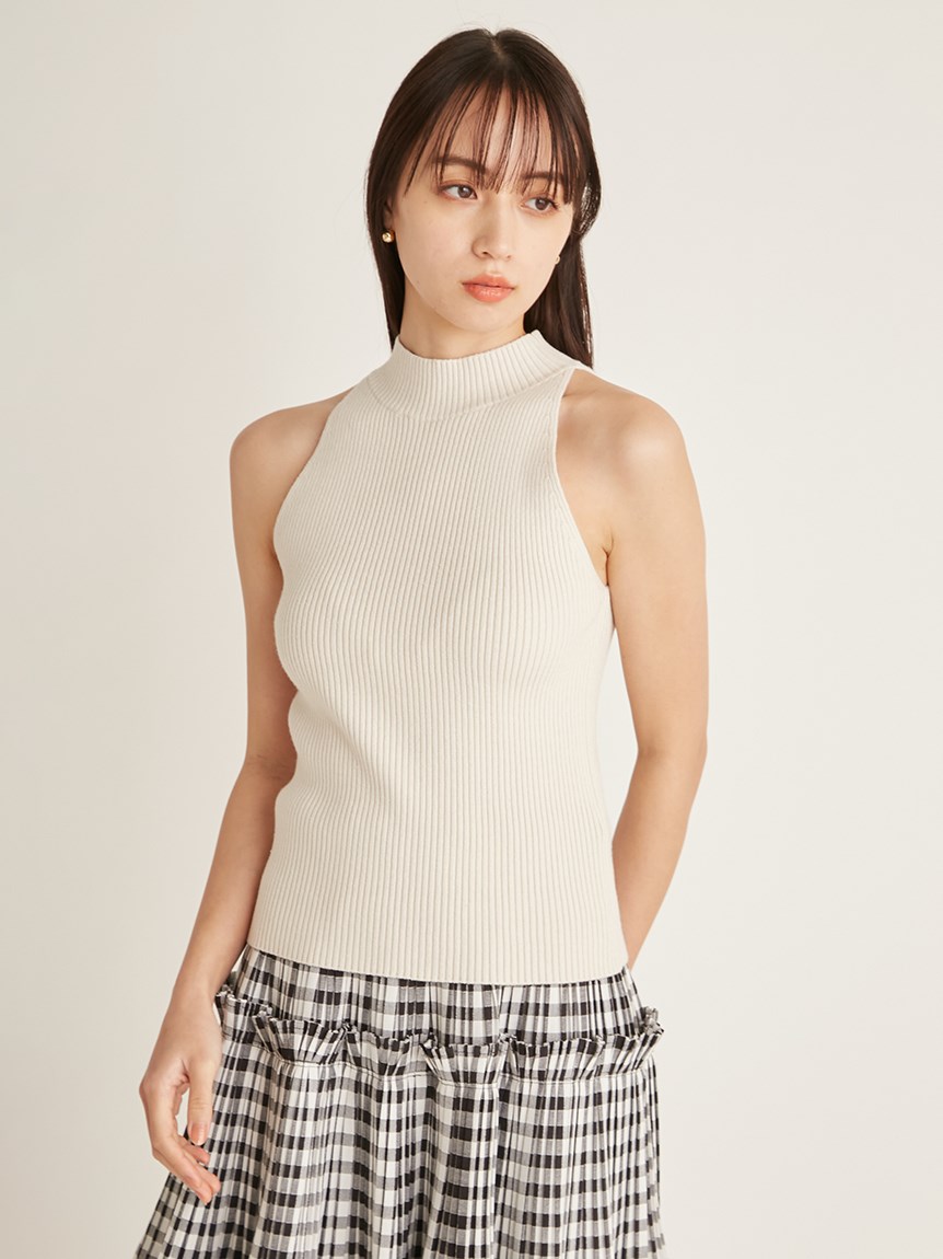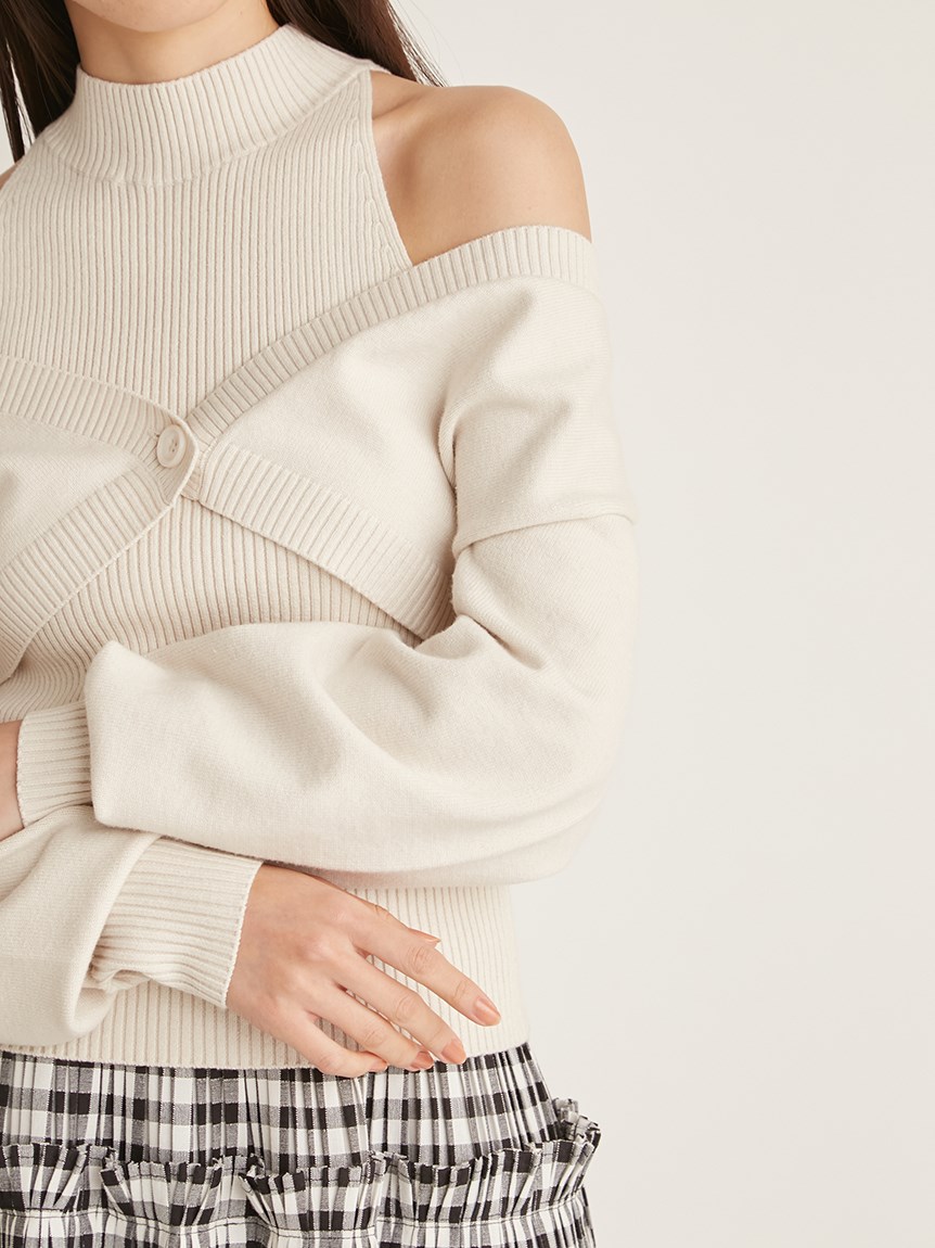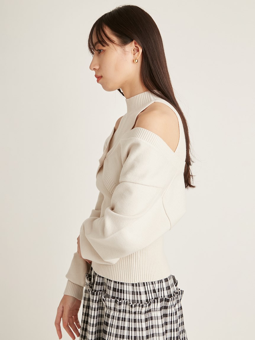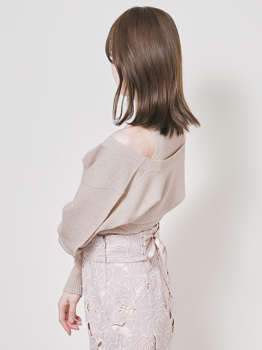 きれいめな質感のニットとリブニットを組み合わせました。淡い色合いがフェミニンなホワイト、ラメが入った、ベージュ、ピンクベージュの3色展開でお届けします。