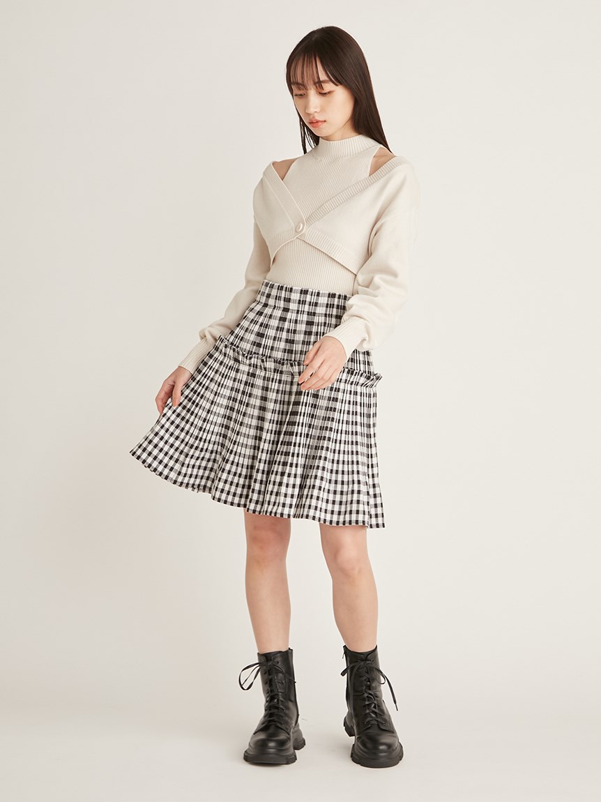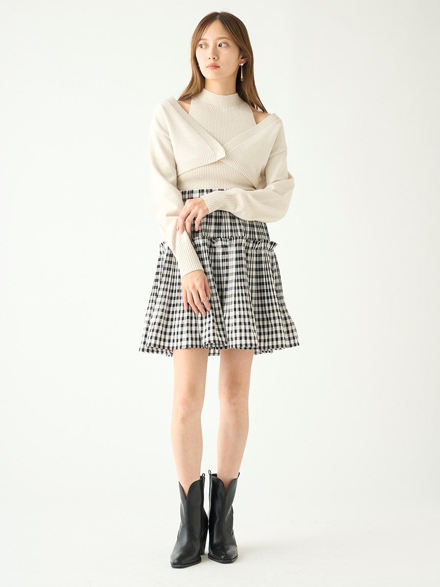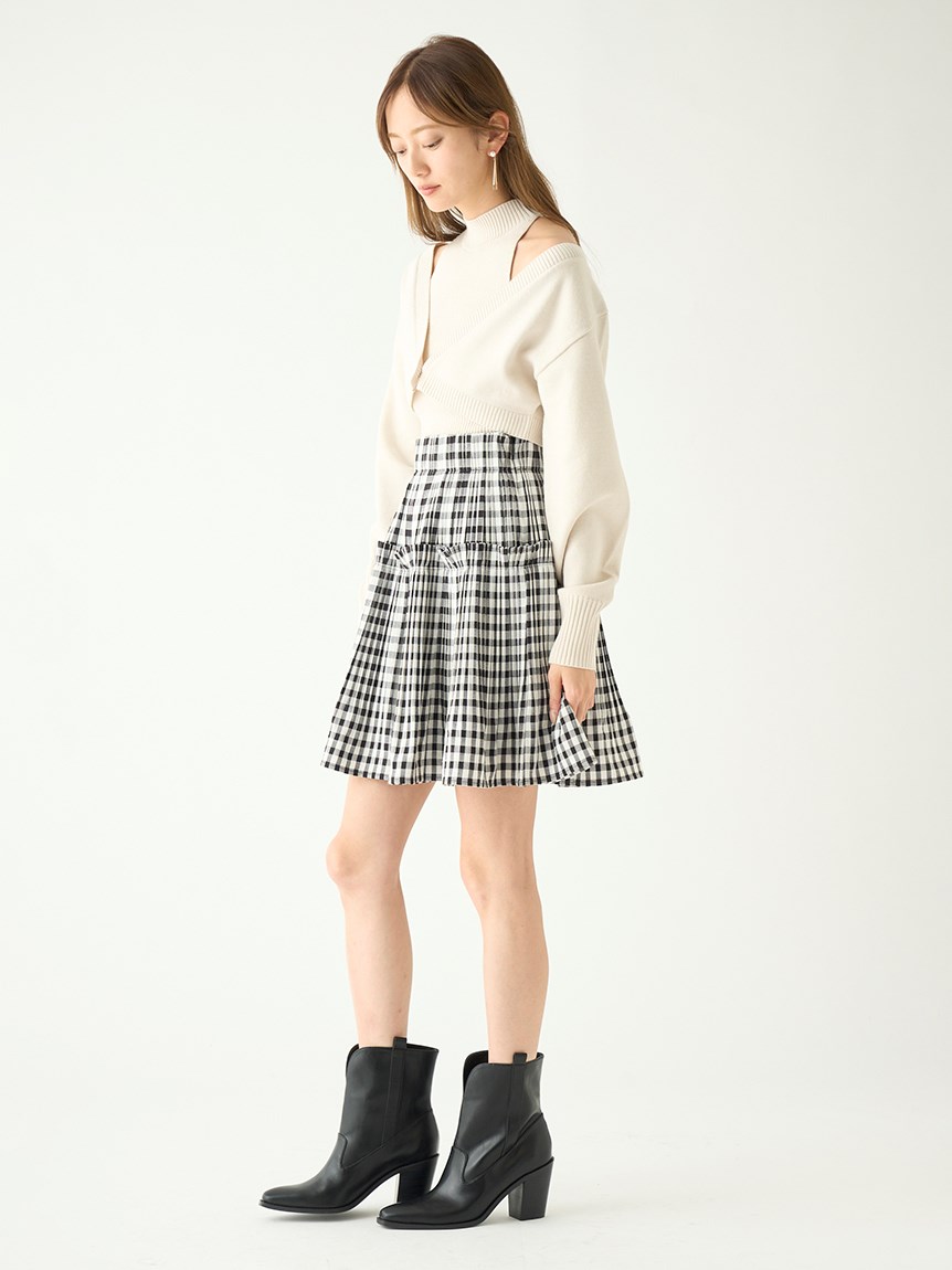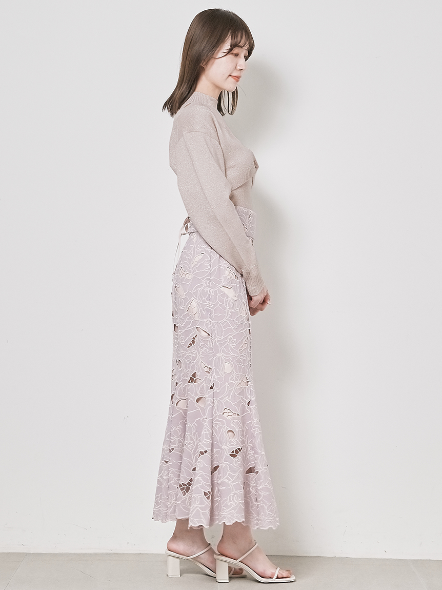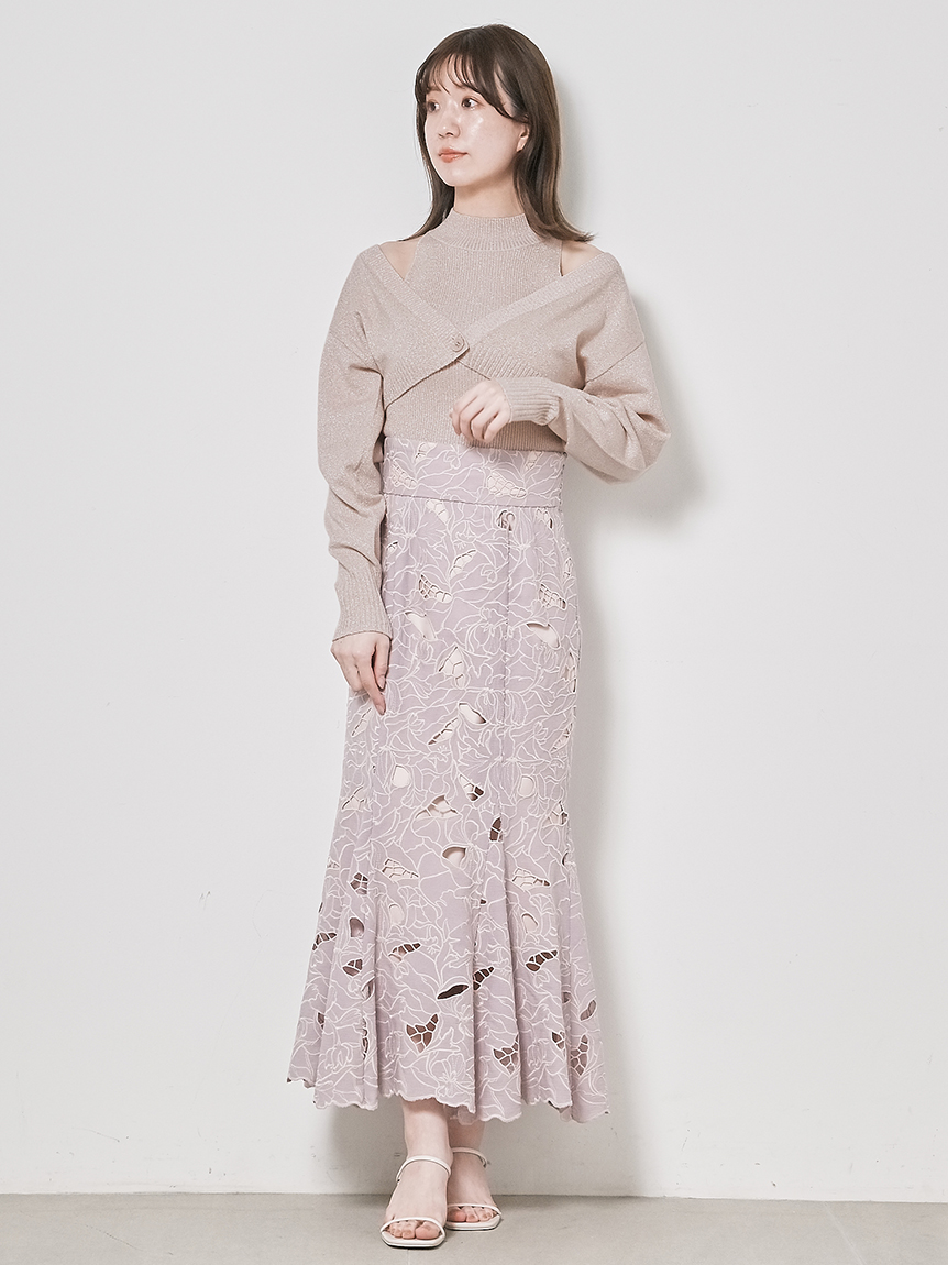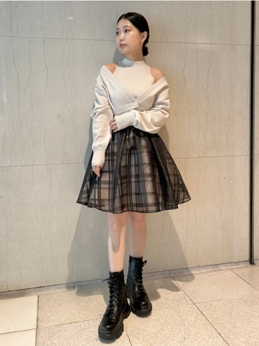 きれいめな質感のニットとリブニットを組み合わせました。淡い色合いがフェミニンなホワイト、ラメが入った、ベージュ、ピンクベージュの3色展開でお届けします。