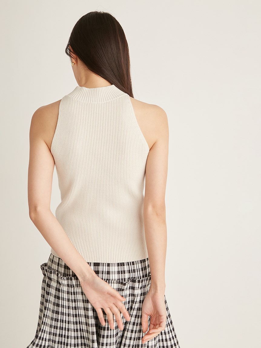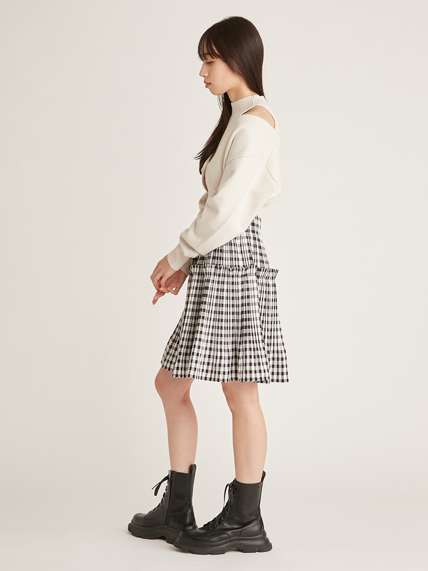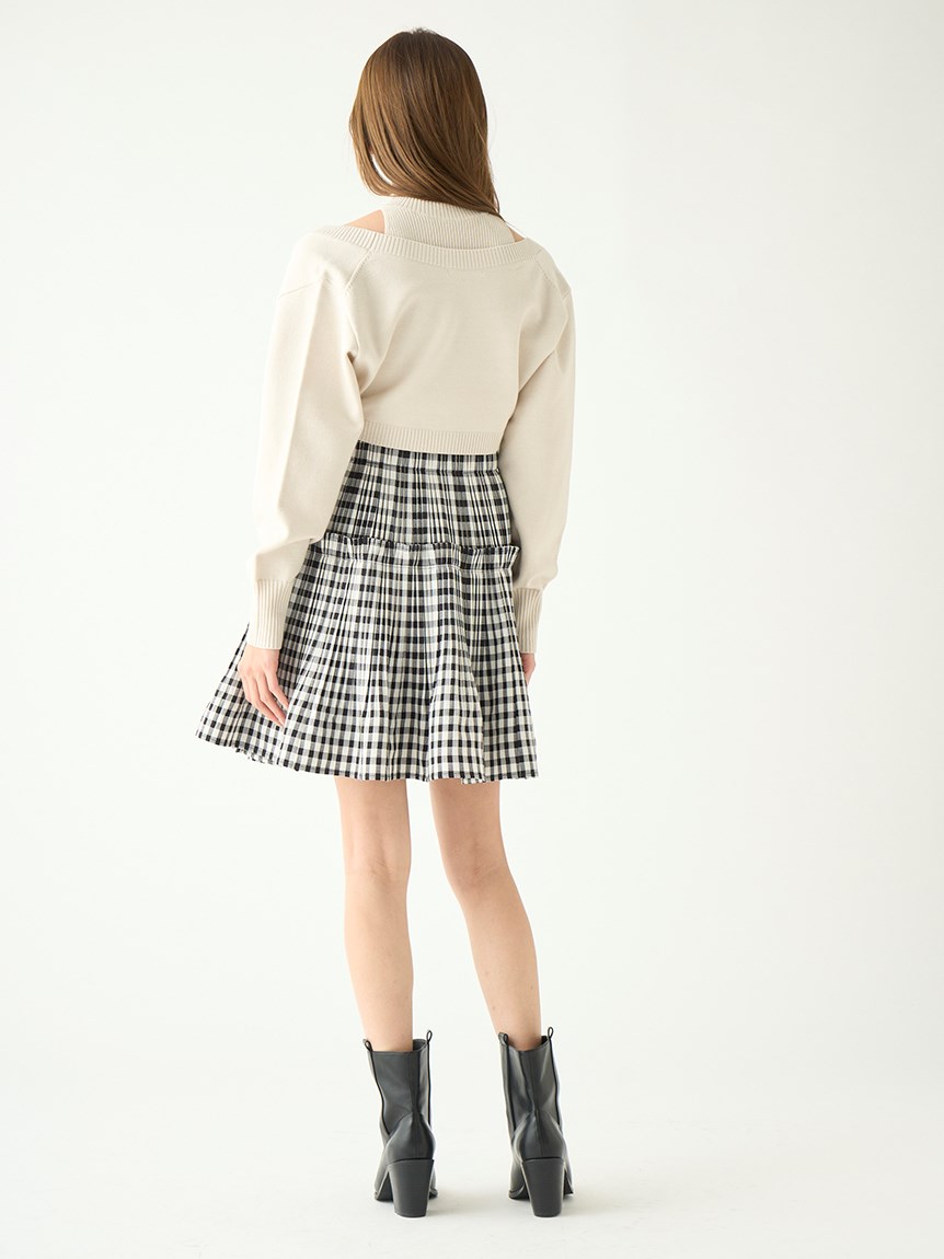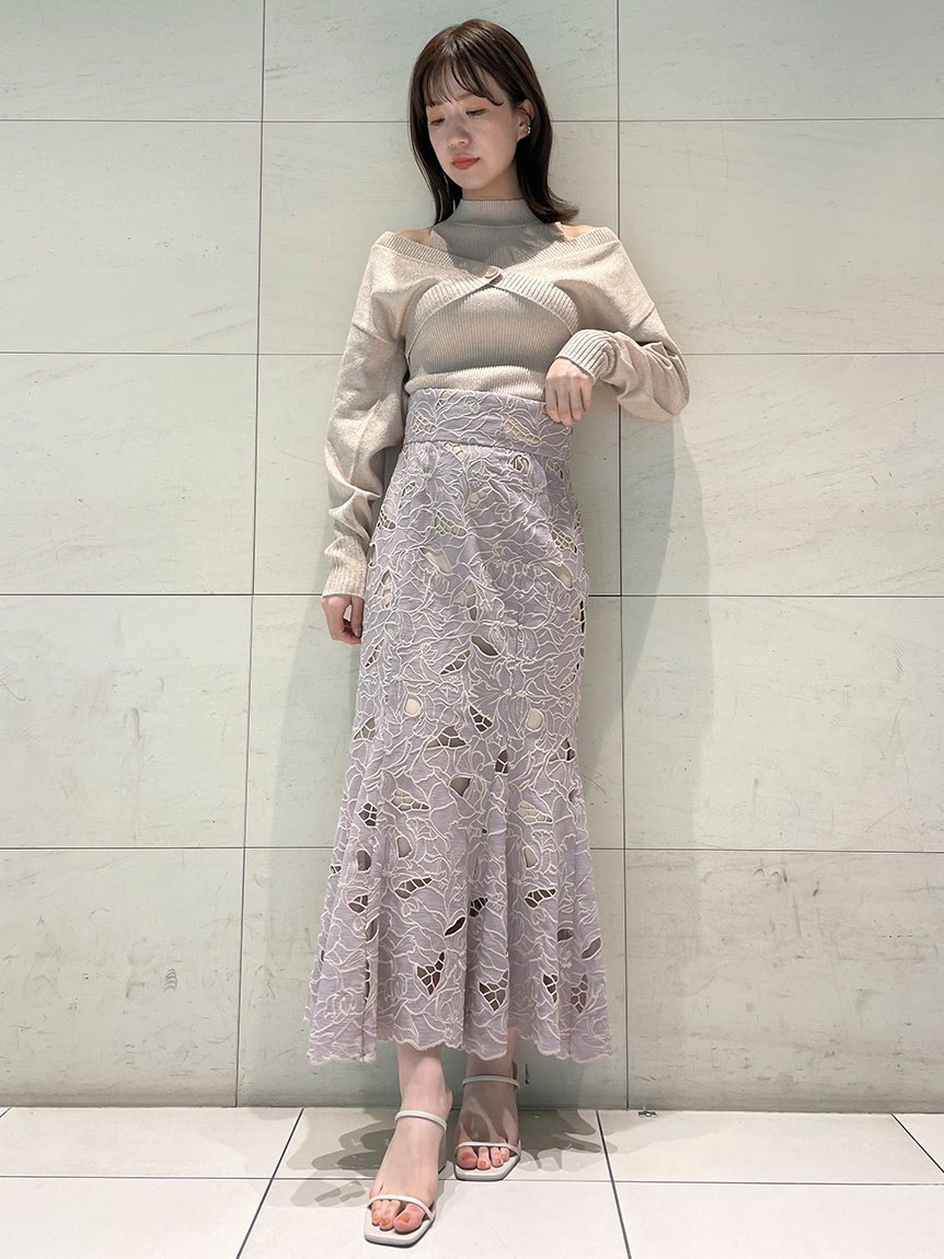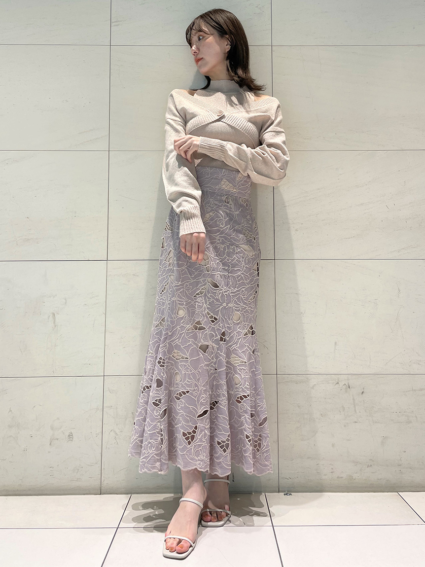 きれいめな質感のニットとリブニットを組み合わせました。淡い色合いがフェミニンなホワイト、ラメが入った、ベージュ、ピンクベージュの3色展開でお届けします。