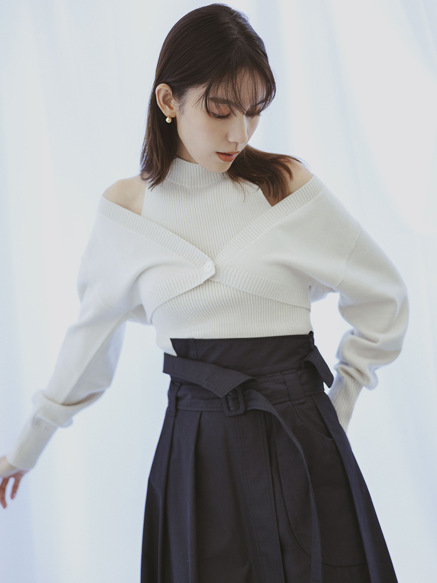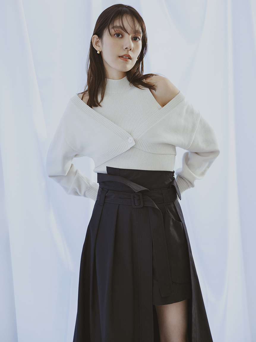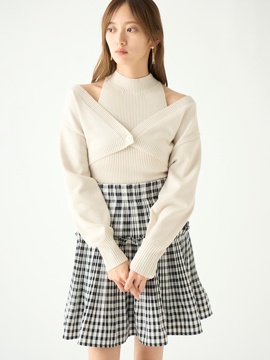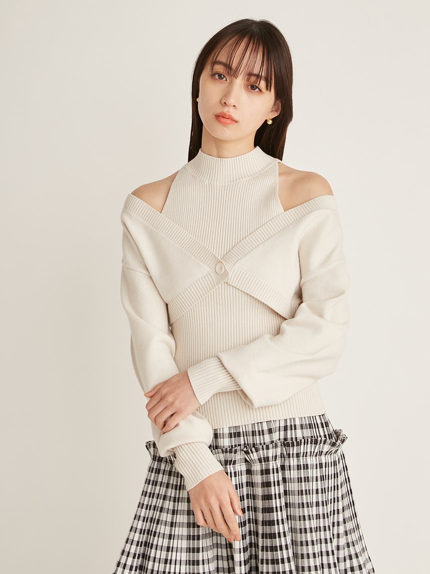 今年らしいショート丈のボレロカーディガンとノースリプルオーバーを組み合わせたセットアイテム。絶妙なバランスで生み出されたセンシュアルな肌見せが、女性らしさを引き立てています。それぞれ単品でも活躍してくれるので、コーディネートの幅が広がること間違いなし。装飾を抑えたミニマムなデザインで着まわしやすく、幅広いスタイリングに重宝する万能アイテムです。