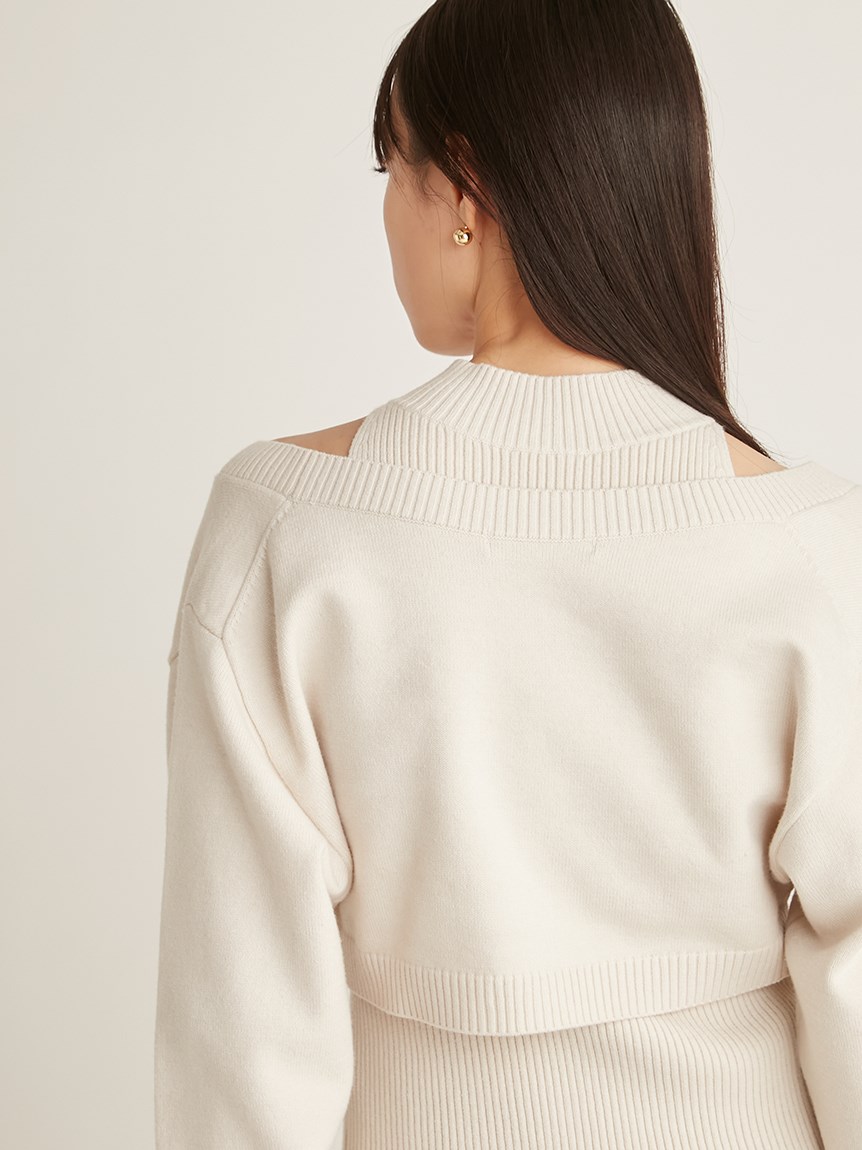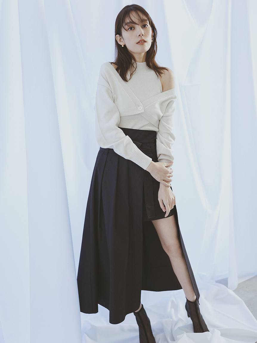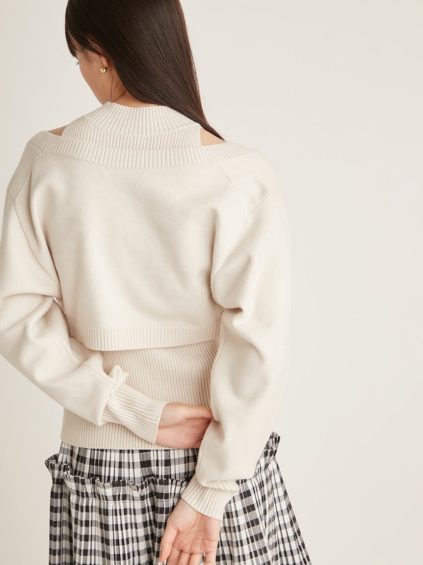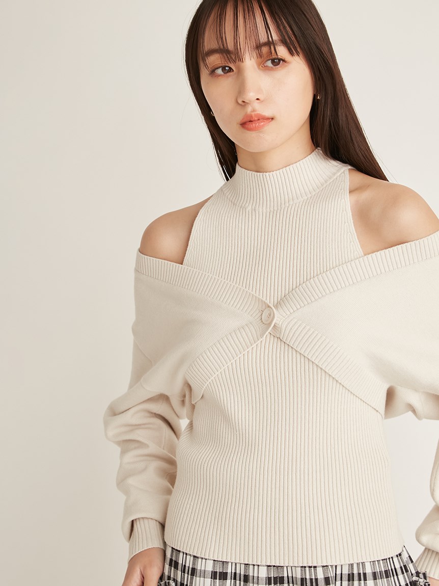 今年らしいショート丈のボレロカーディガンとノースリプルオーバーを組み合わせたセットアイテム。絶妙なバランスで生み出されたセンシュアルな肌見せが、女性らしさを引き立てています。それぞれ単品でも活躍してくれるので、コーディネートの幅が広がること間違いなし。装飾を抑えたミニマムなデザインで着まわしやすく、幅広いスタイリングに重宝する万能アイテムです。