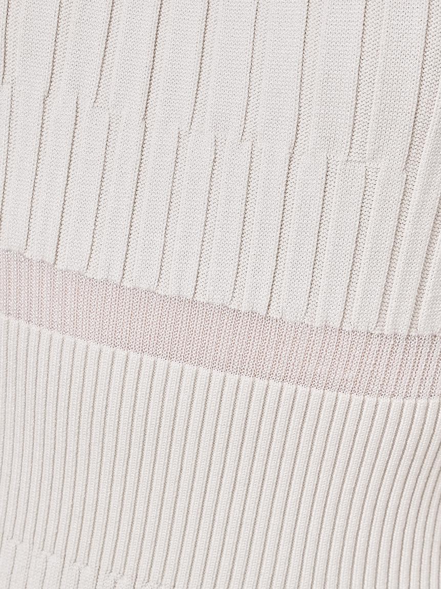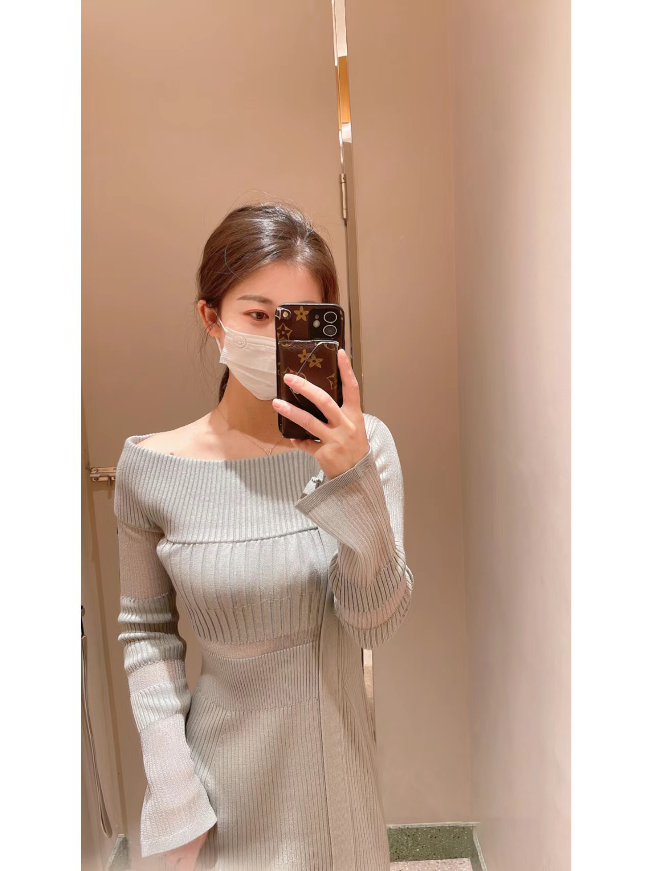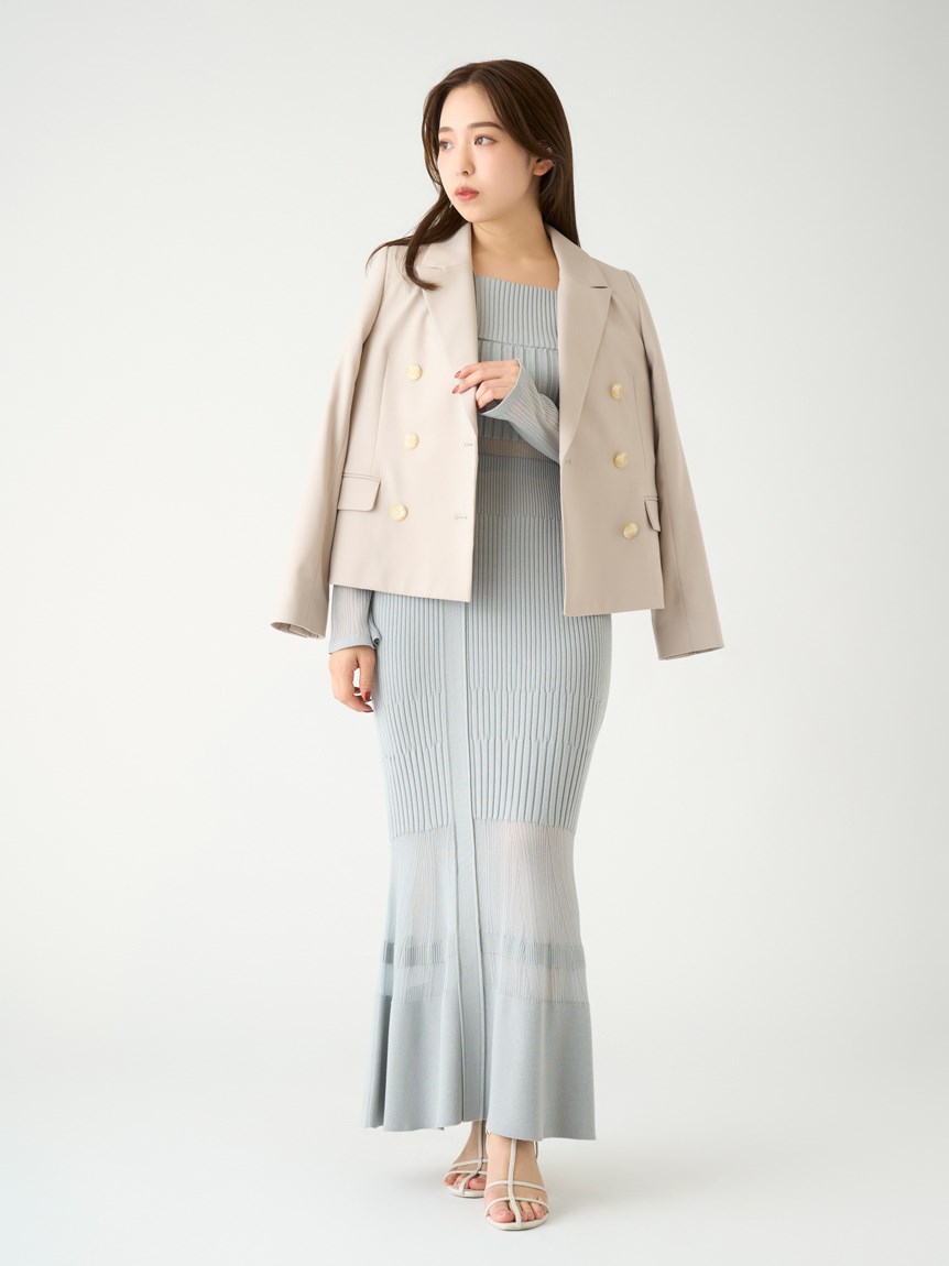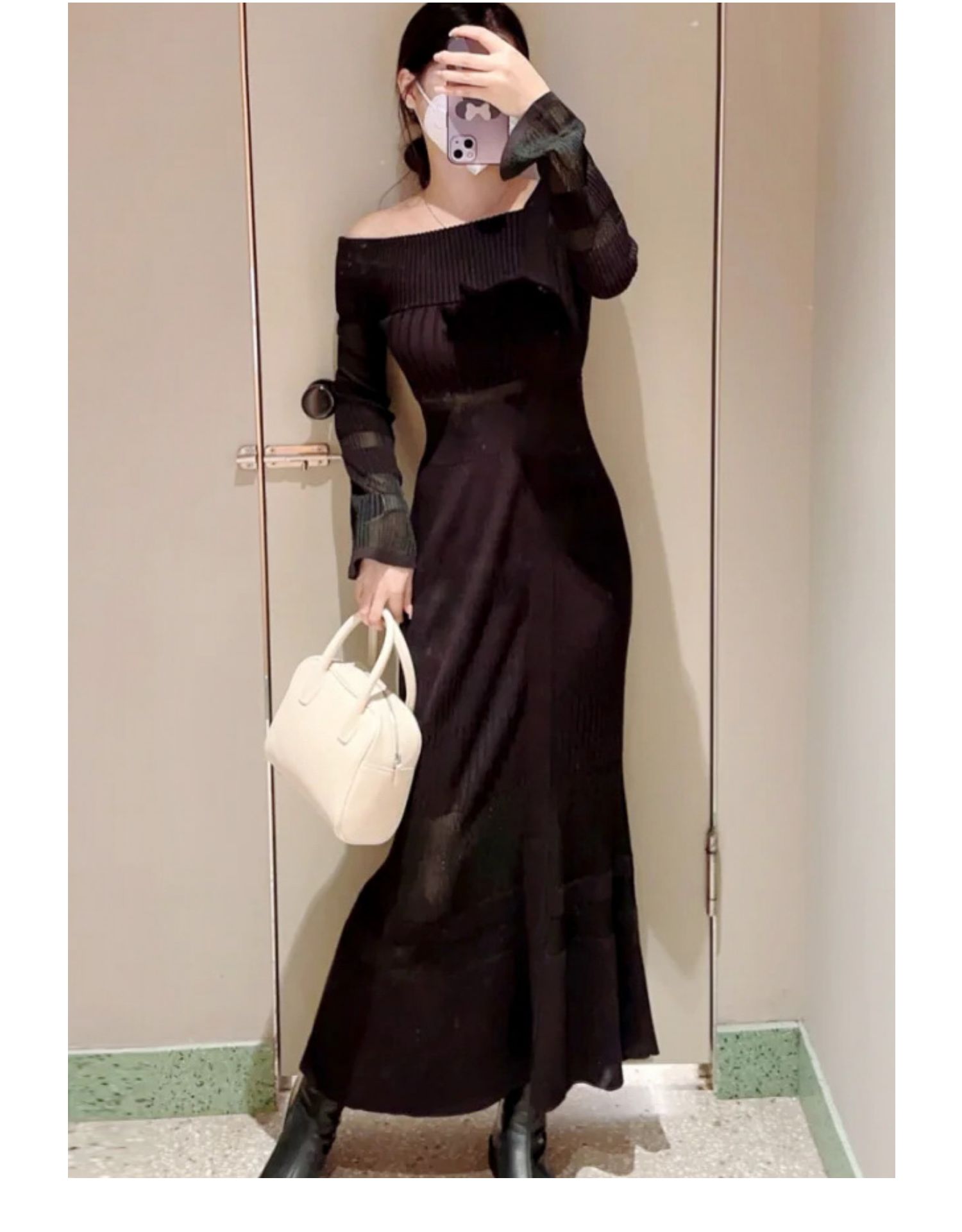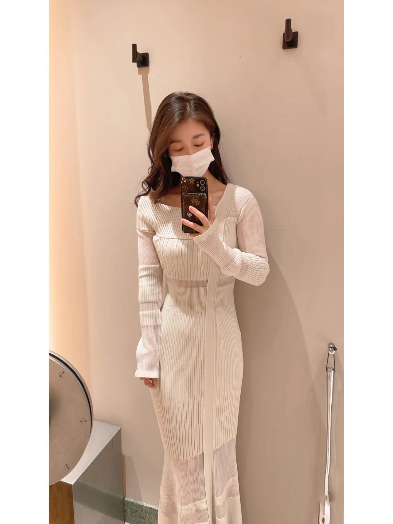 シアーパーツとリブパーツを綺麗なリズムでランダムに繋ぎ合わせたニットワンピース。モード感溢れるデザインで抜群の存在感を放つ今年らしい1着です。程よい透け感と高めの位置からのマーメイドラインで色香漂うルックスに。ボディラインを美しく見せスタイルアップへと導いてくれます。