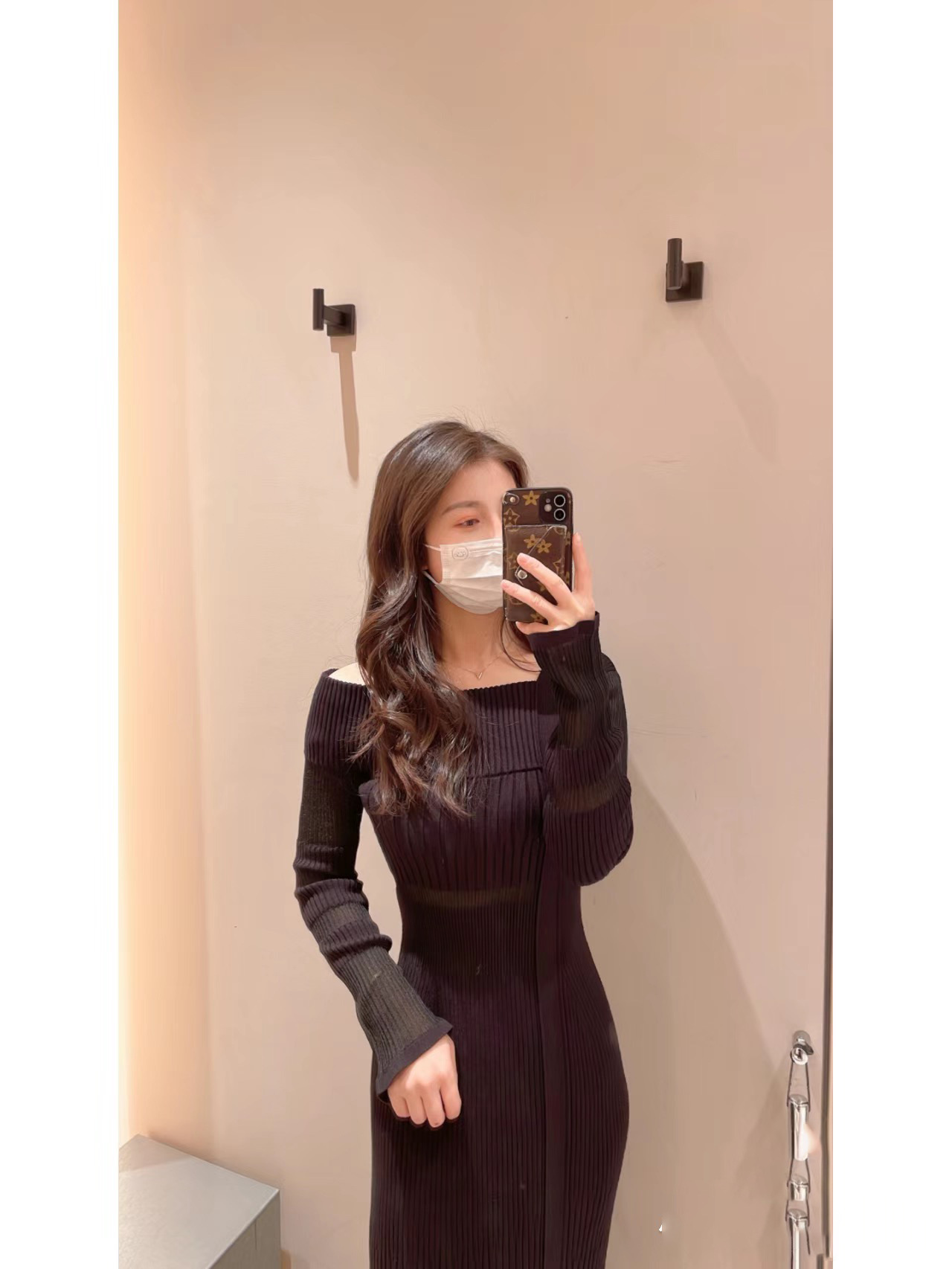 【巧みなブロッキングデザイン魅せるモードなニットワンピース】