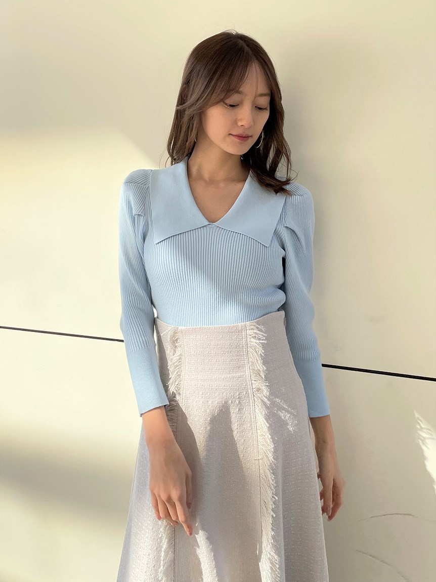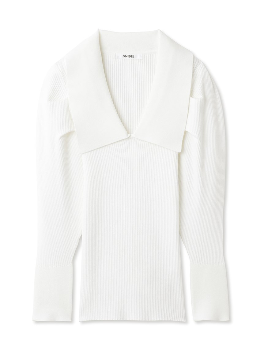 「SNIDEL」定番のカラーニットプルオーバーがアップデート。トレンド継続中のビッグカラーは新たに折り返しのデザインを取り入れモードに仕上げました。袖にはタックを効かせ程よいボリューム感で女性らしさをプラス。フィット感のあるタイトシルエットなので合わせるボトムを選ばず、幅広いコーディネートに取り入れられます。