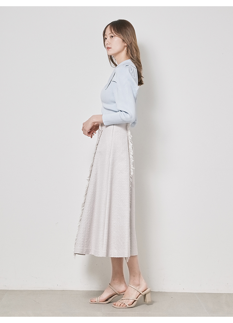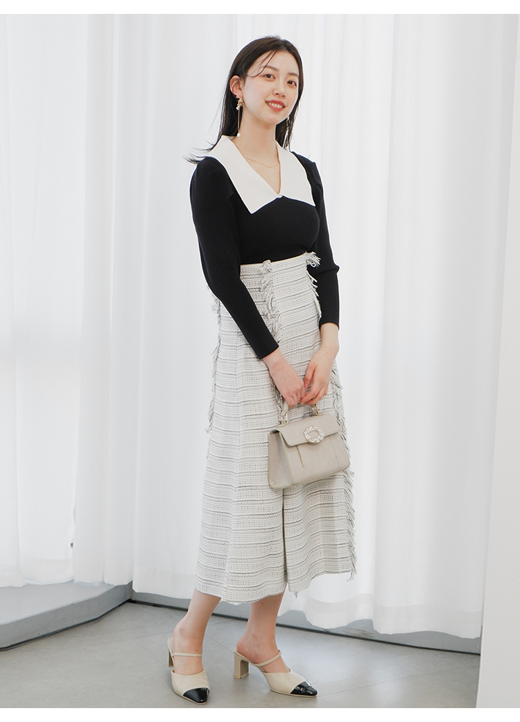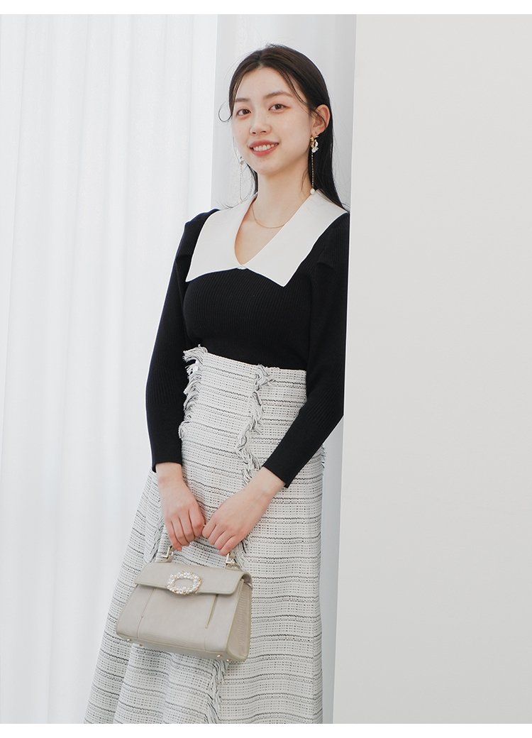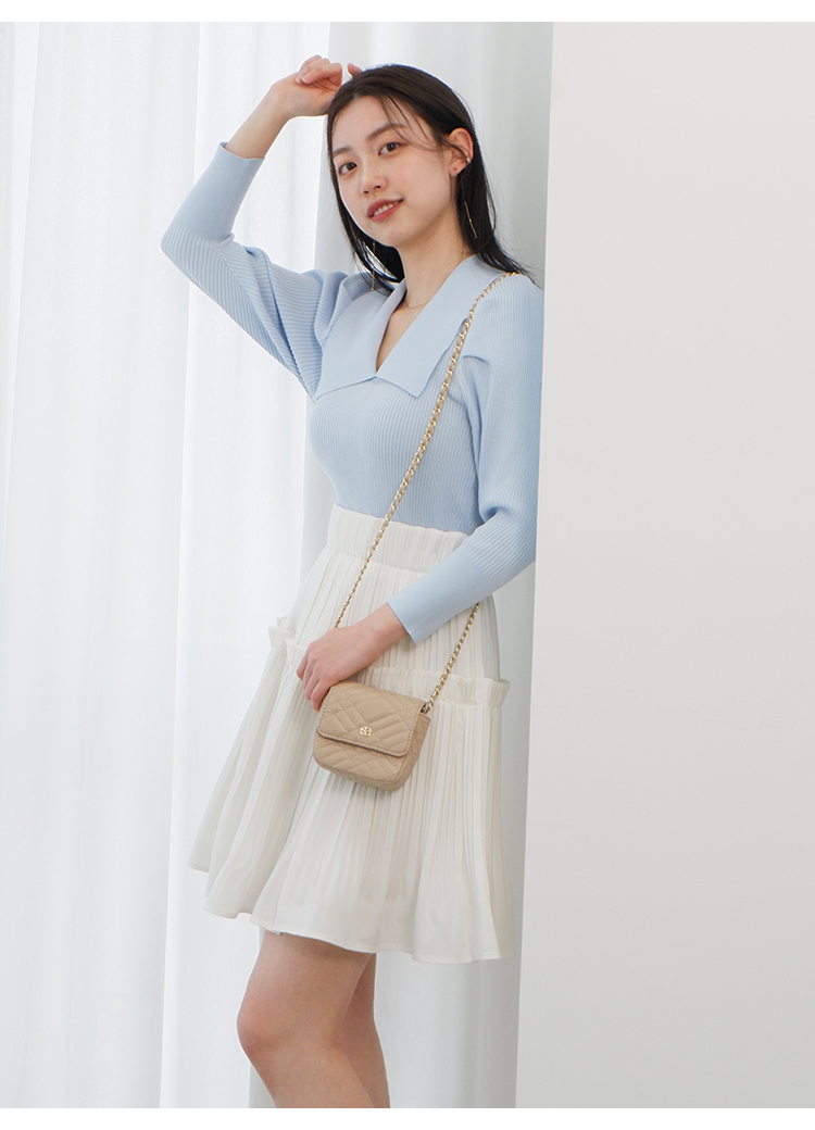 エコレーヨンを用いたサステナブルなニット素材を使用しました。優しい色合いのホワイト、バイカラーでモード感のあるブラック、春夏らしい爽やかなライトブルーをご用意。