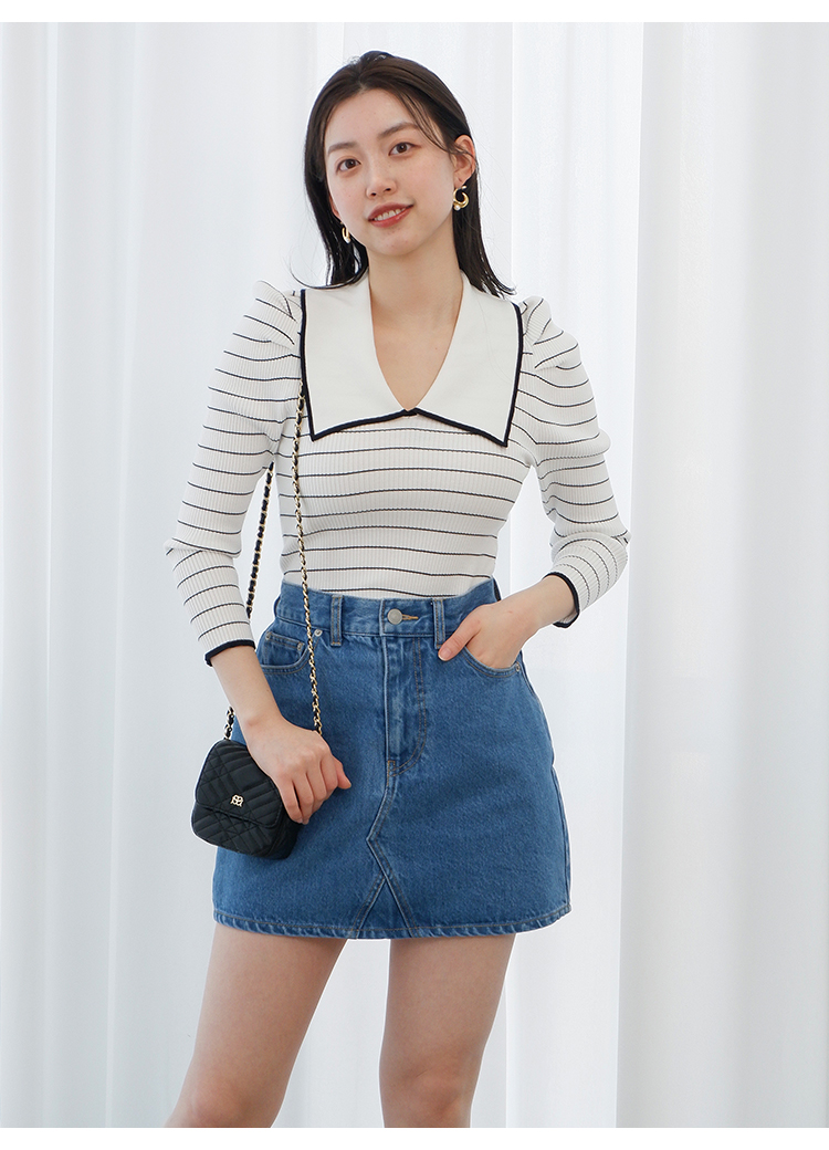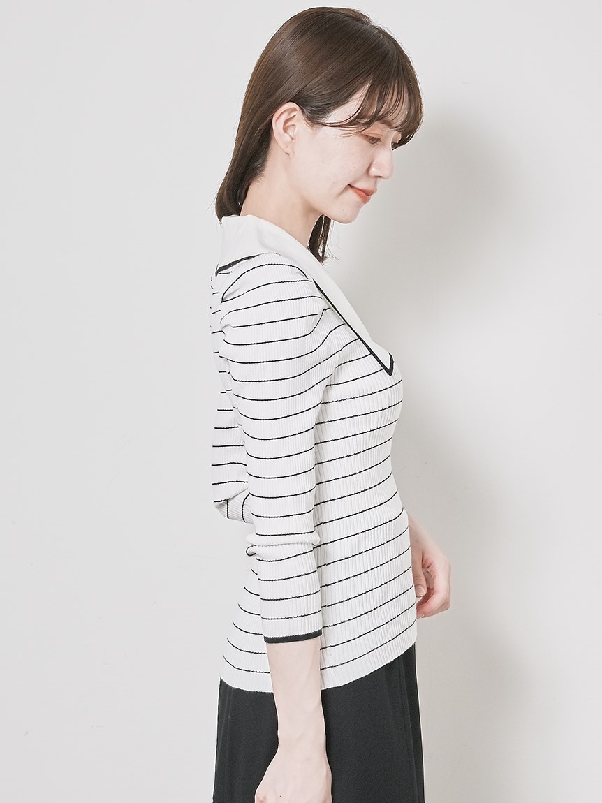 エコレーヨンを用いたサステナブルなニット素材を使用しました。ボーダー2色をご用意。無地の(SWNT231146)もございます。