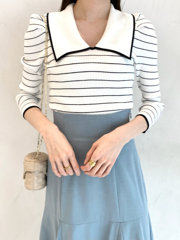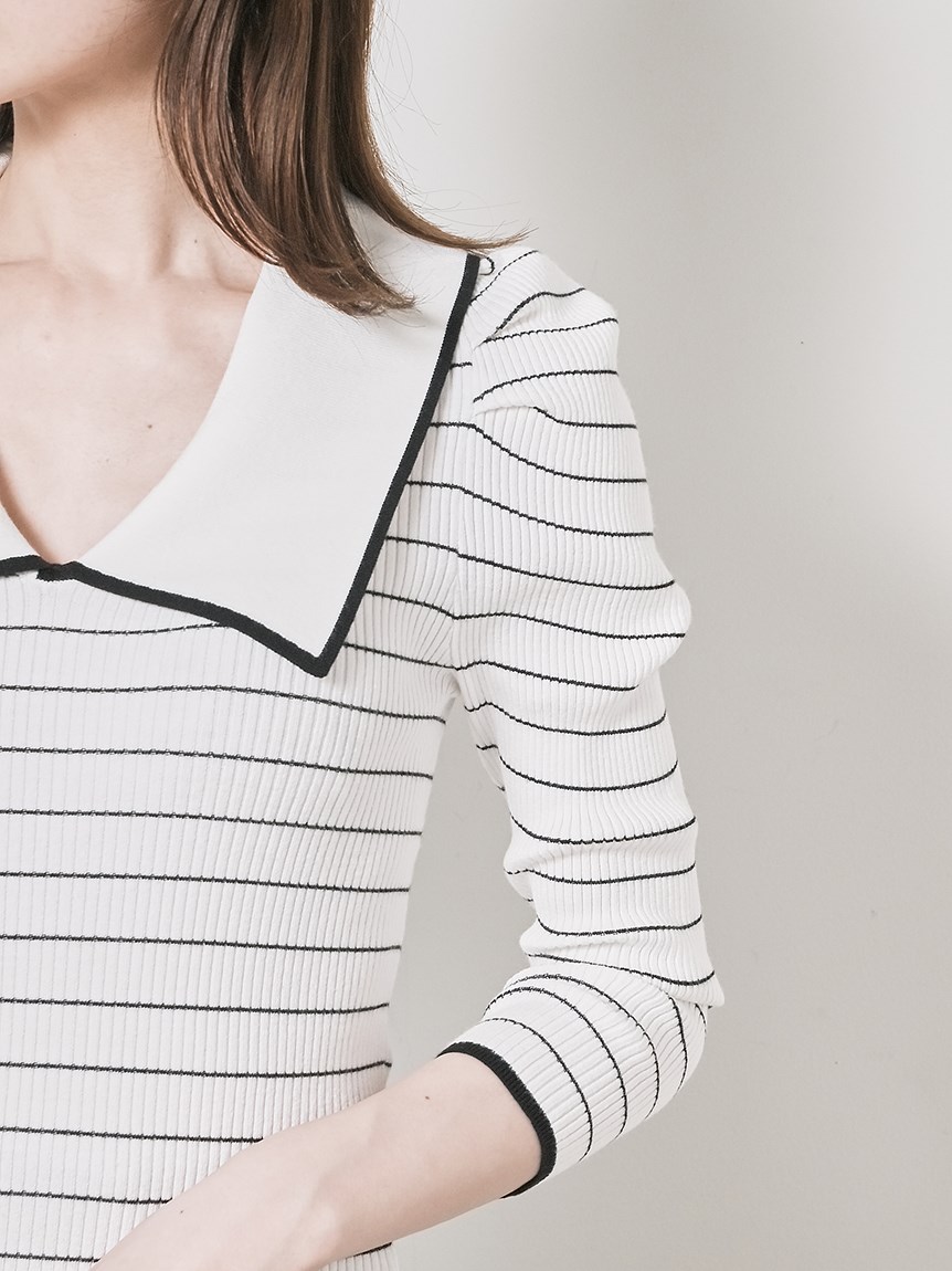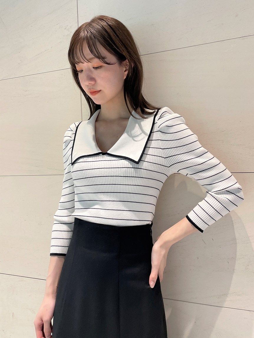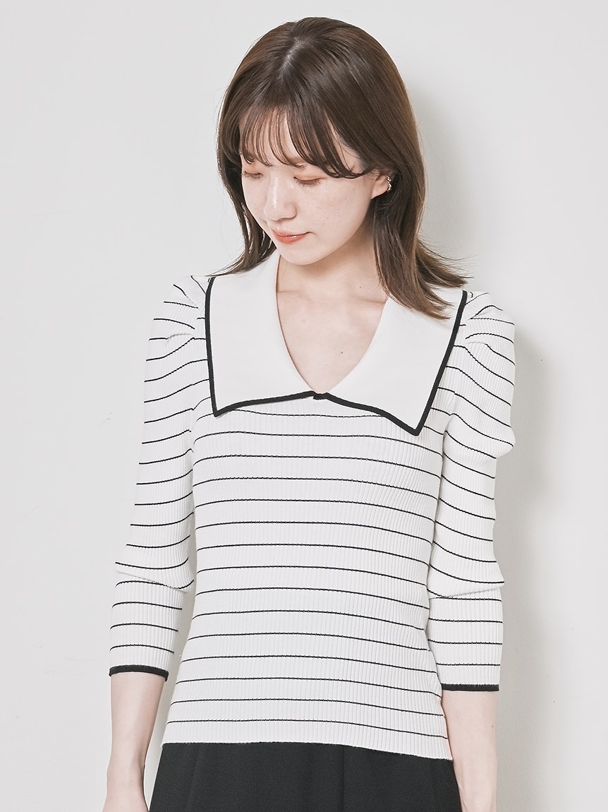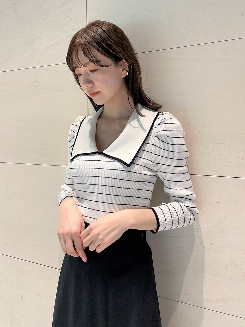 ボリューム襟ニットプルオーバー