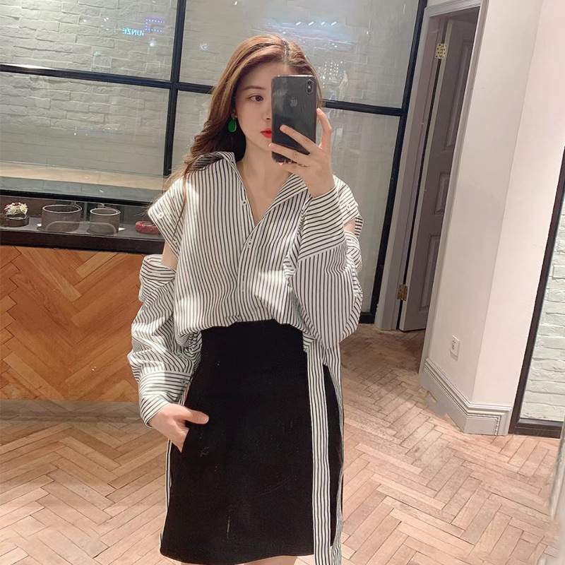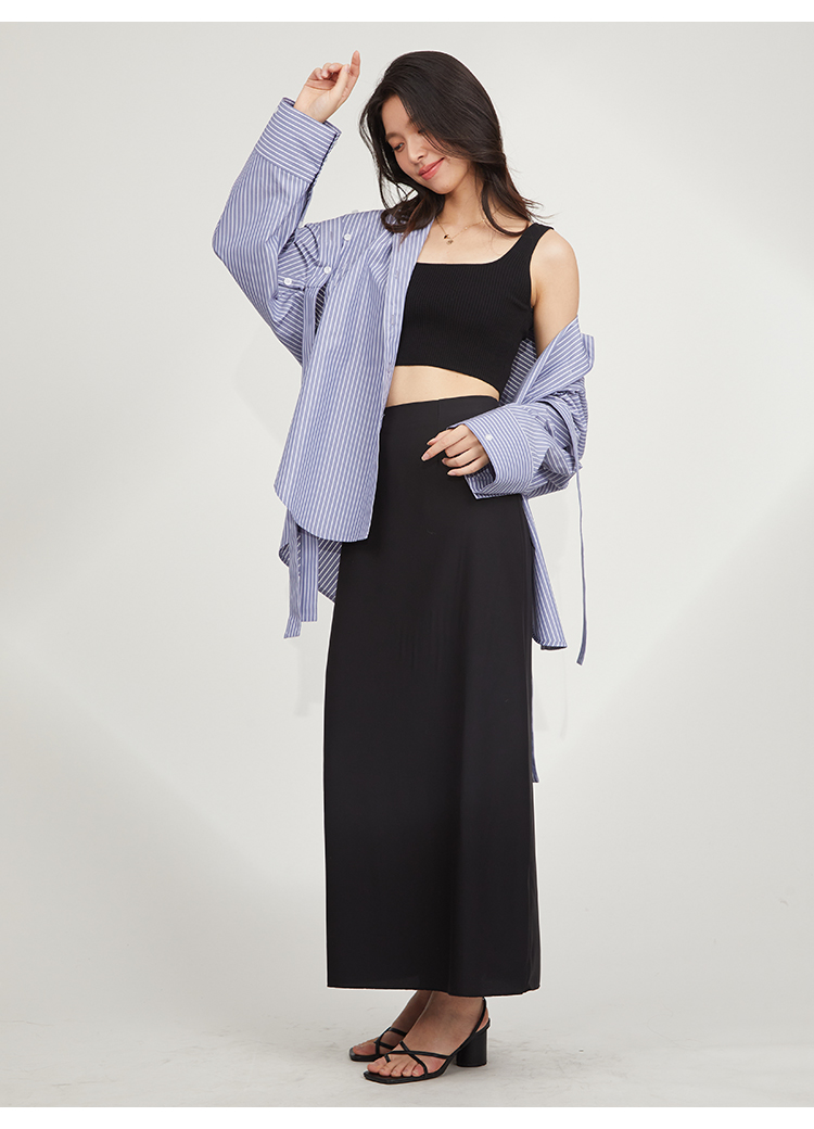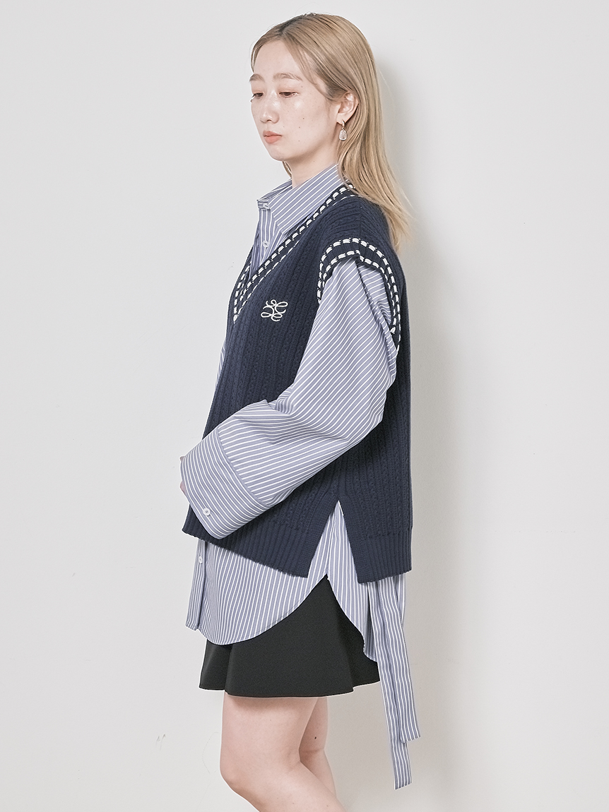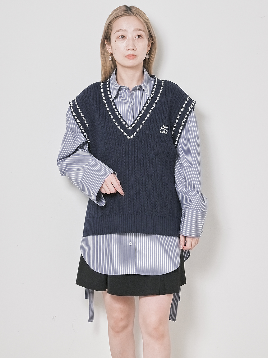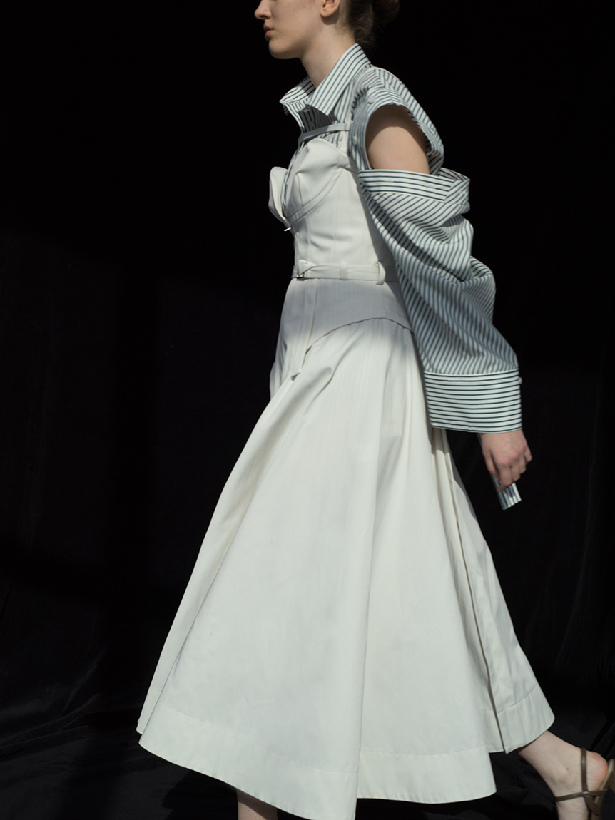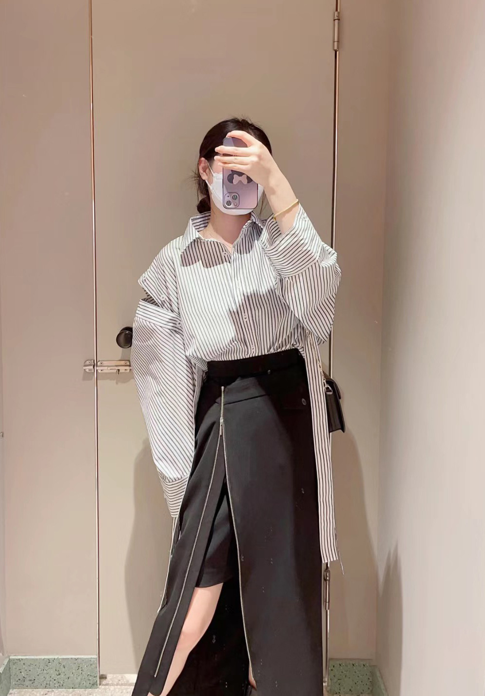 人気の2WAYシャツがアップグレードして登場。袖下にスリットと釦を備え、開閉してトレンドの肌見せができるデザインに。また、ストレート状の袖カフスの奥に釦をもう1つプラスし、袖を畳んでその釦で留めると、普通のブラウスのような細めのシルエットにもアレンジできるようにしています。ボレロの留め位置も落ち感が出るように設定し、より様々なスタイルが楽しめるアイテムへと仕上げました。