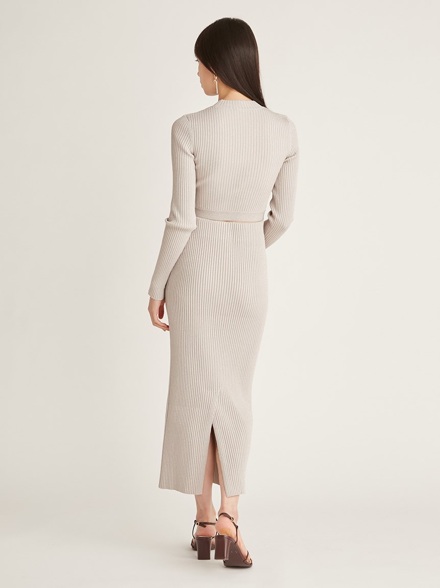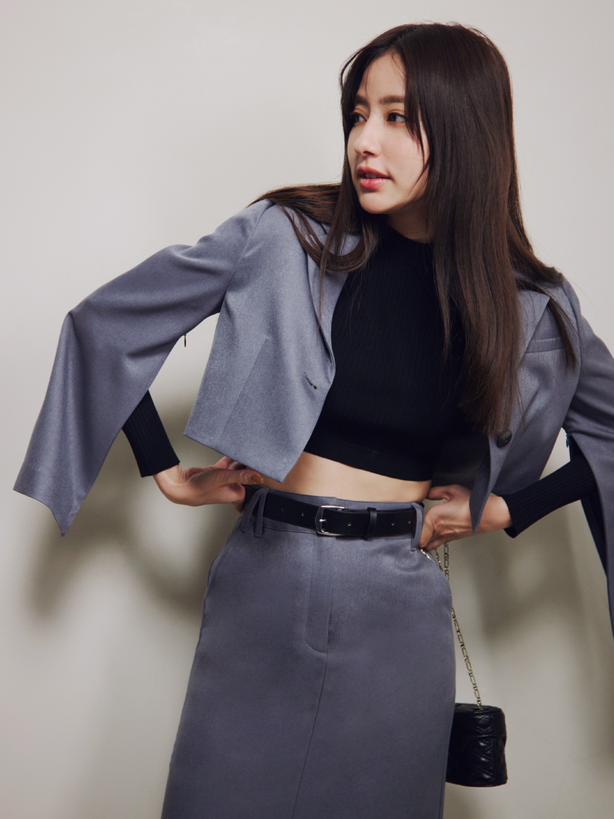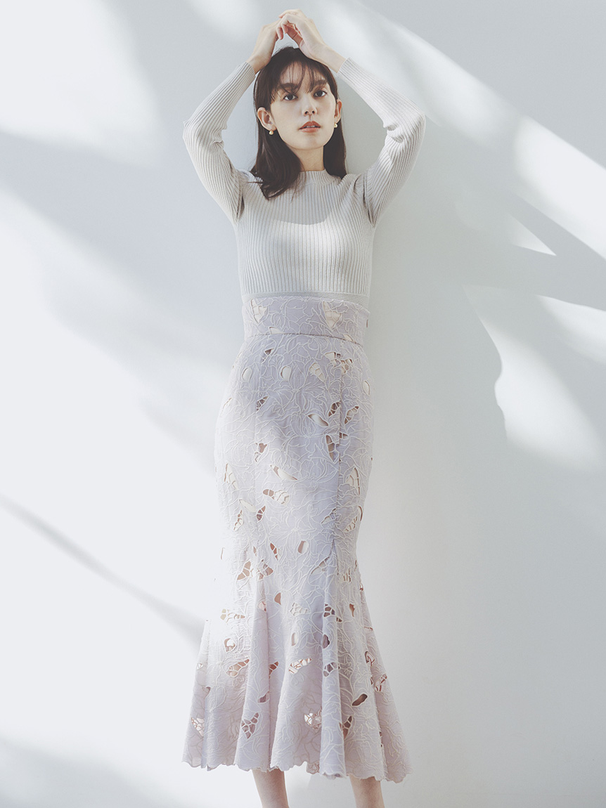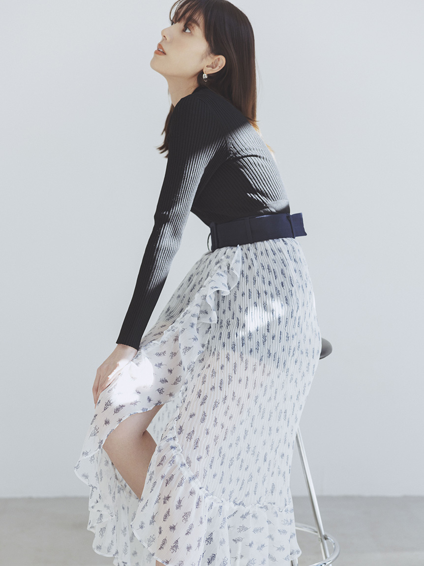 クロップド丈に仕立てトレンド感を押さえたリブニットプルオーバー。裾部分のみ横編みにすることでシンプルな中にもさり気なくアクセントをプラスしています。ボディラインにフィットするコンパクトなシルエットが女性らしさを感じさせる秘訣。パンツともスカートとも合わせやすく、レイヤードのインナーとしても活用できるので、スタイリングの幅はぐっと広がります。同素材でスカート(SWNS231183)もご用意があるのでセットアップでも着用可能です。