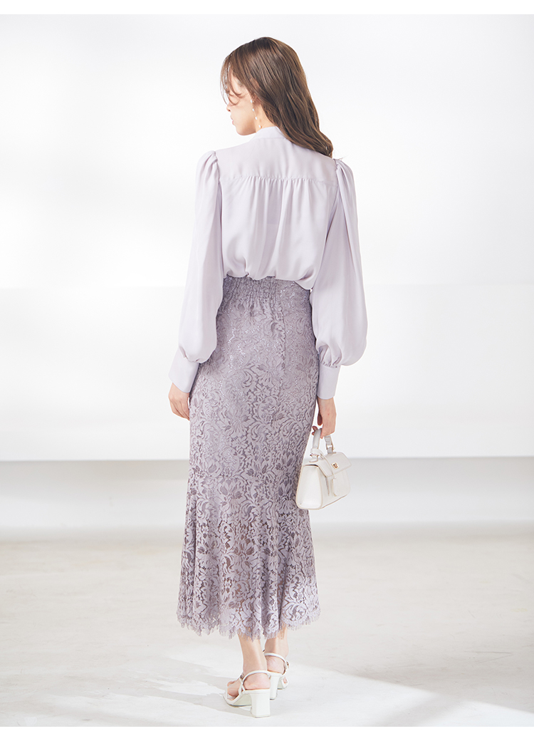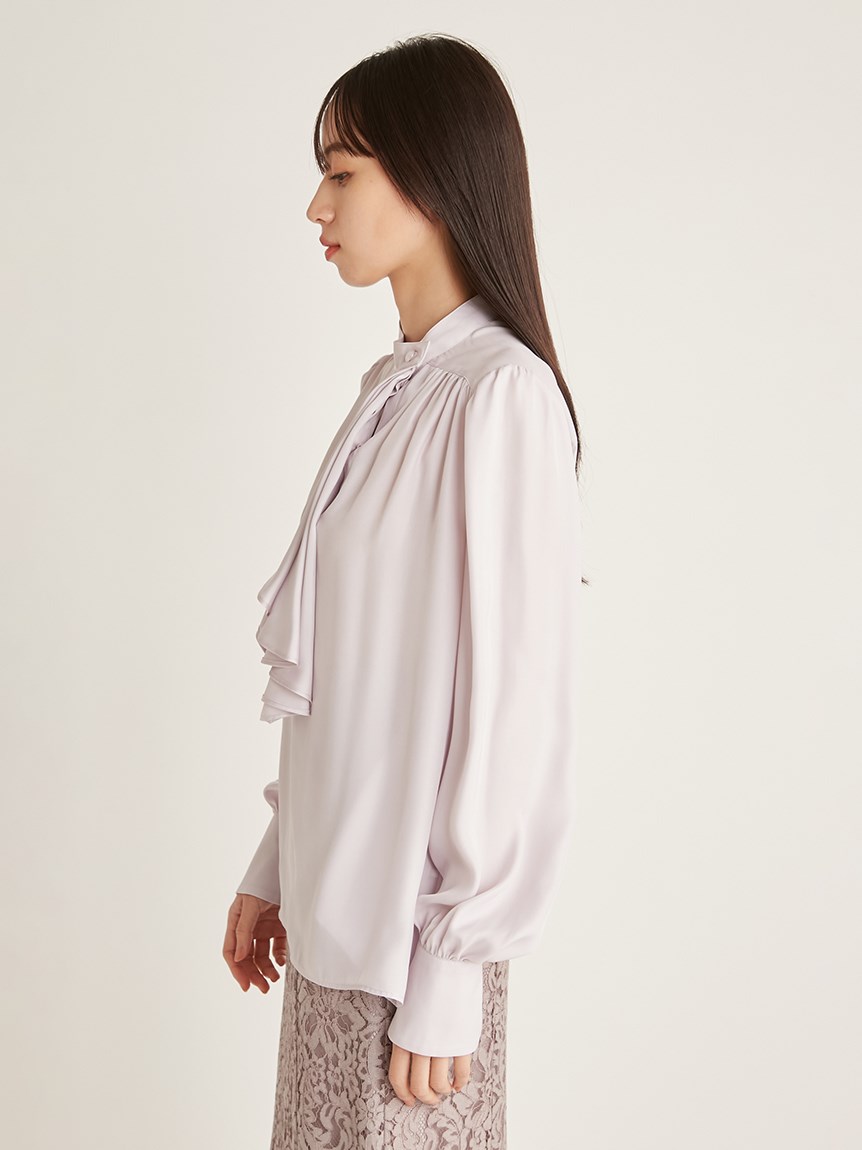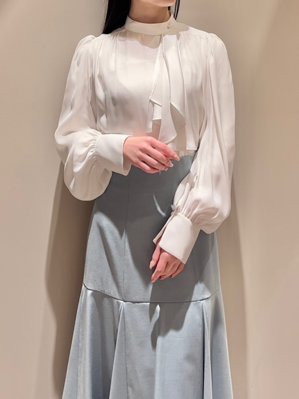 クラシカルなボウタイ&パールボタンがポイントになった、清楚な印象を与えるブラウス。品の良い仕上がりでデイリーからオフィスシーンまで幅広く合わせやすく、着まわし力の高い万能な1着です。袖の内側にはスリットを入れさり気ない肌見せを演出。バリエロングスカート(SWFS231168)やレーススカート(SWFS231203)とカラーを合わせてセットアップのようにコーディネートするのもおすすめです。