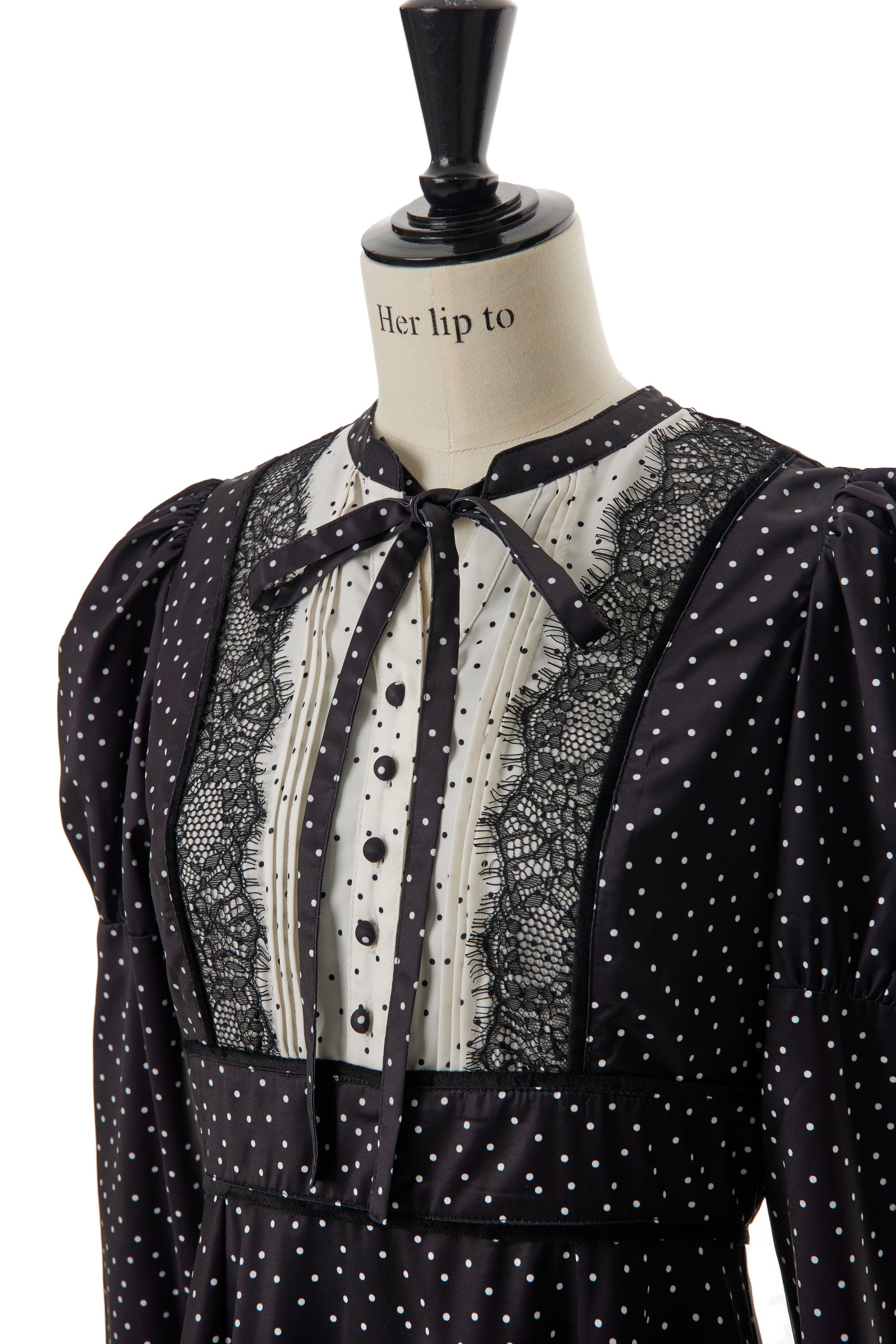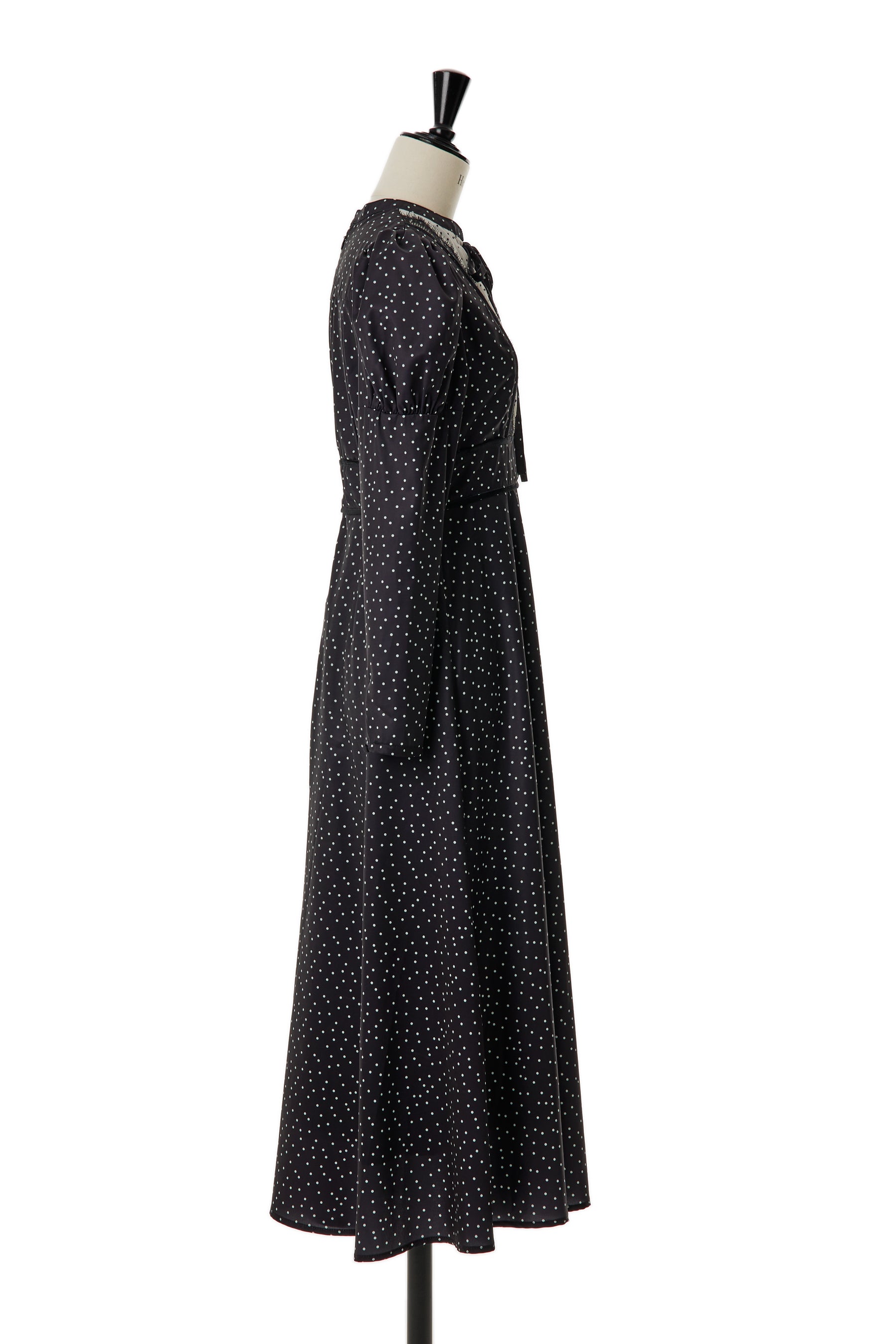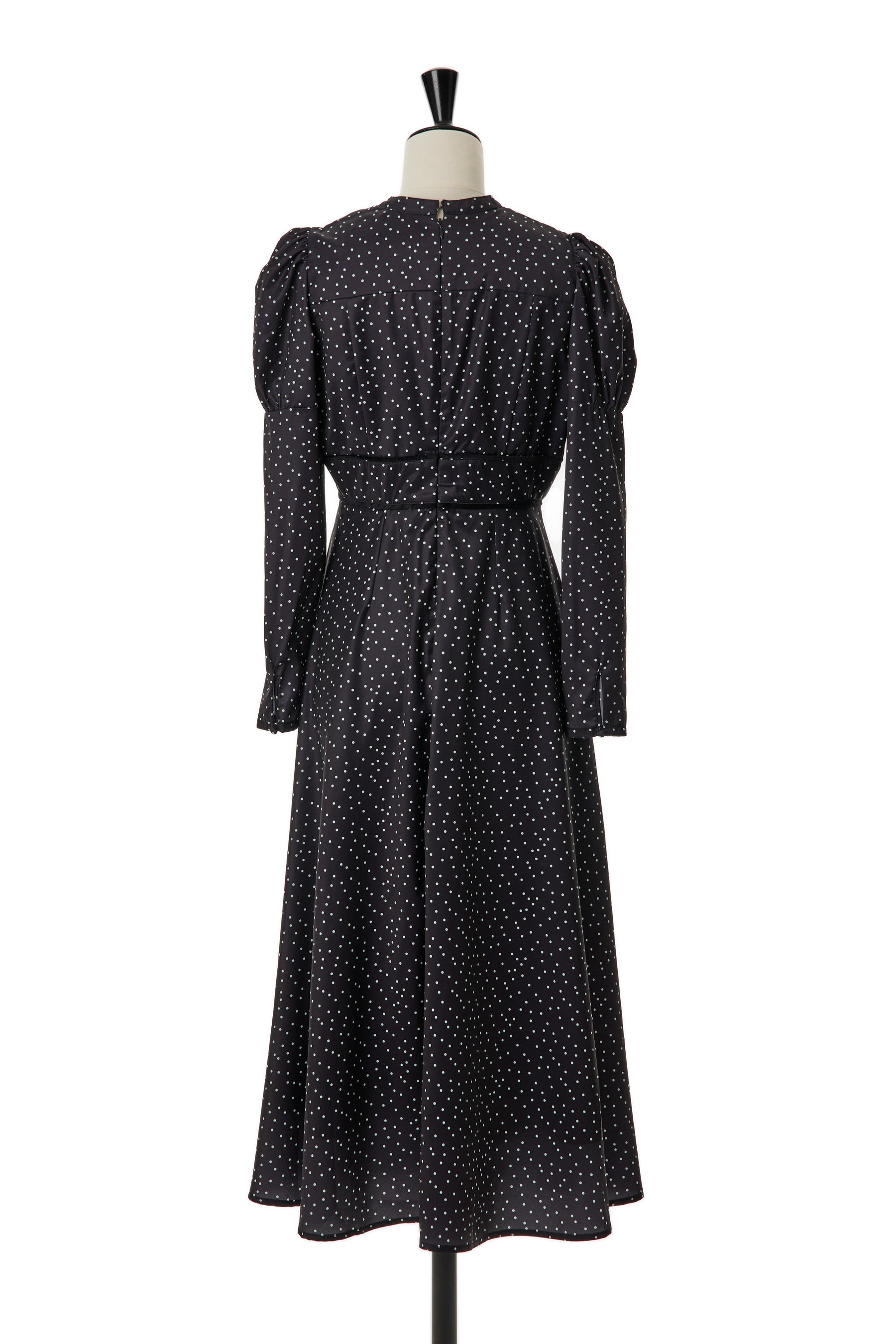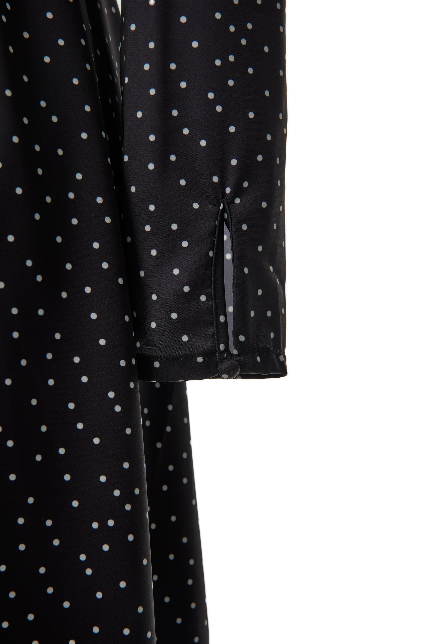 マットな質感のサテン生地を使用し、ランダムドットプリントが大人の女性らしさを引き立てます。