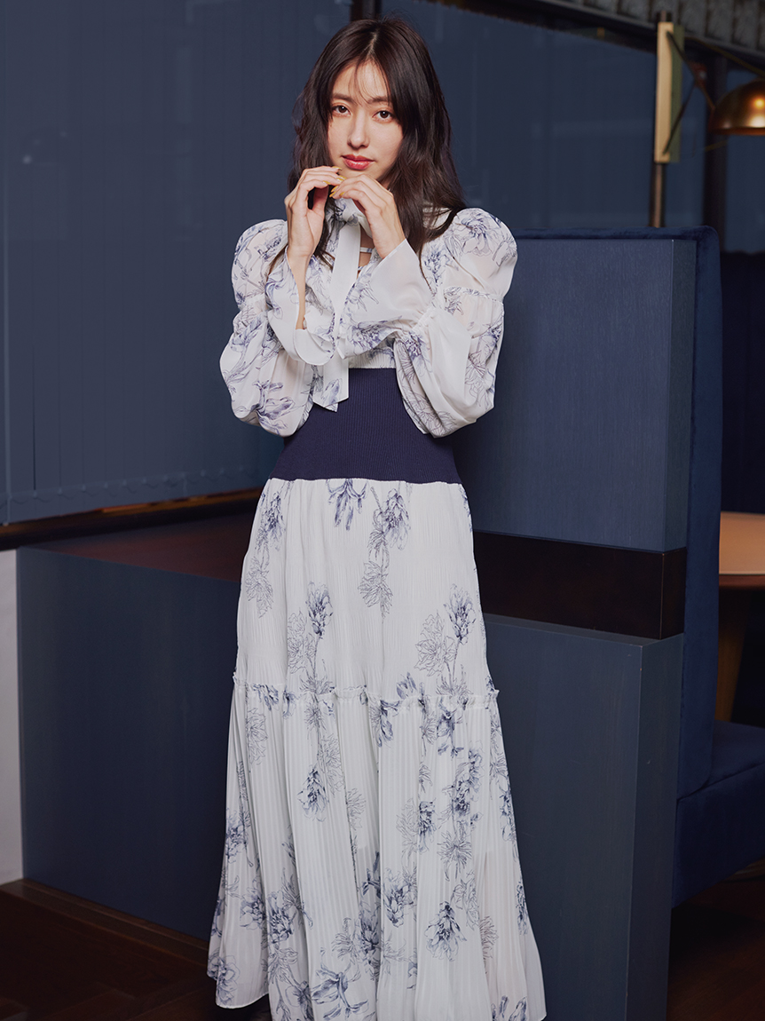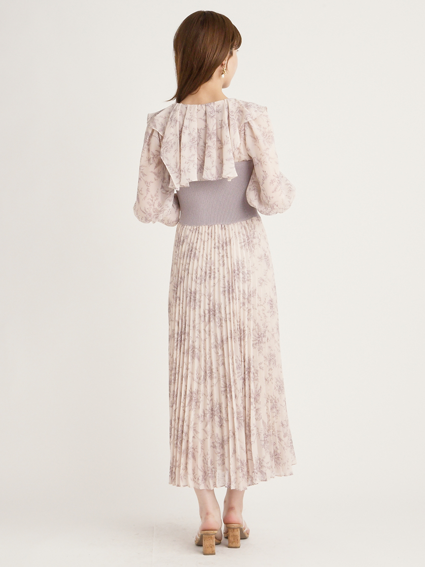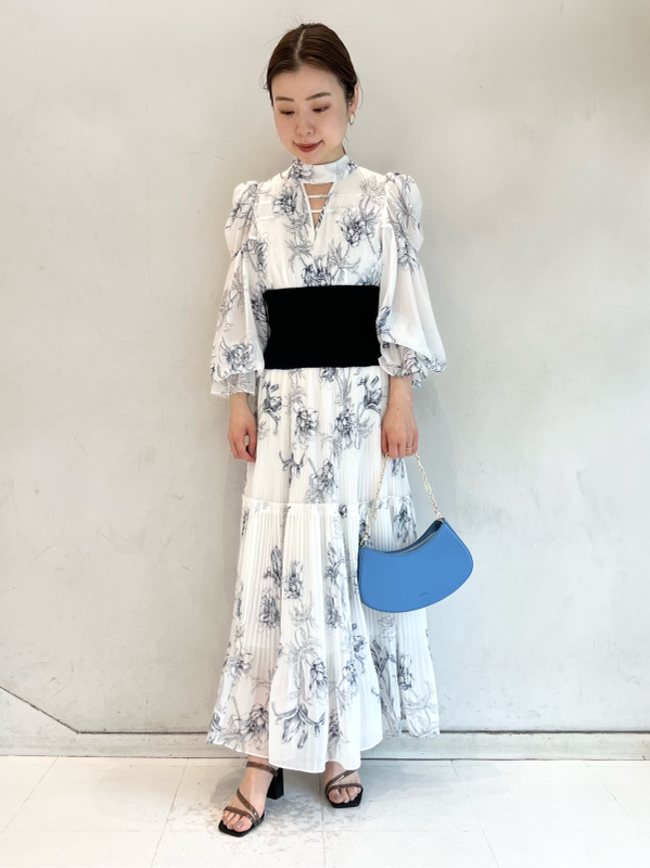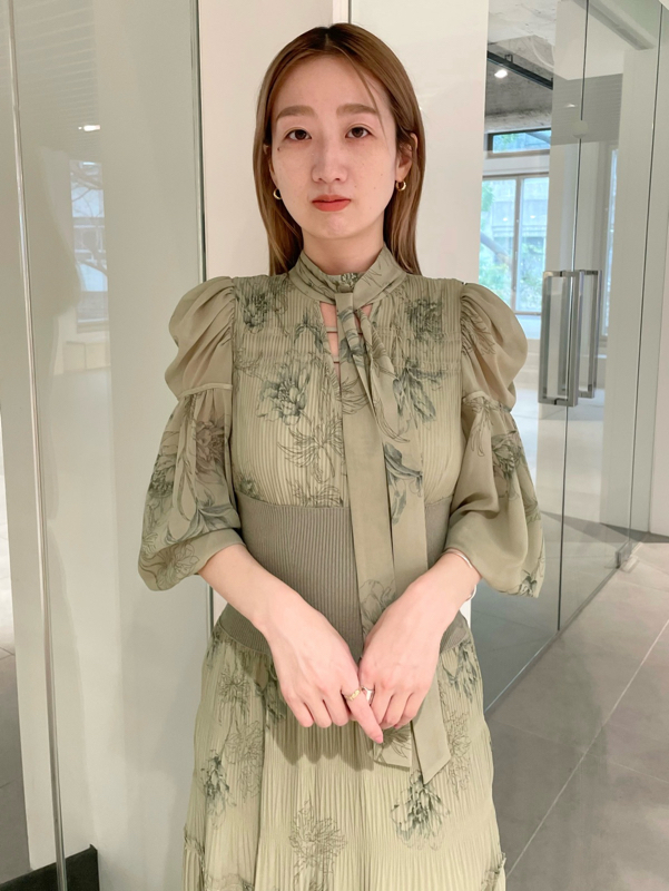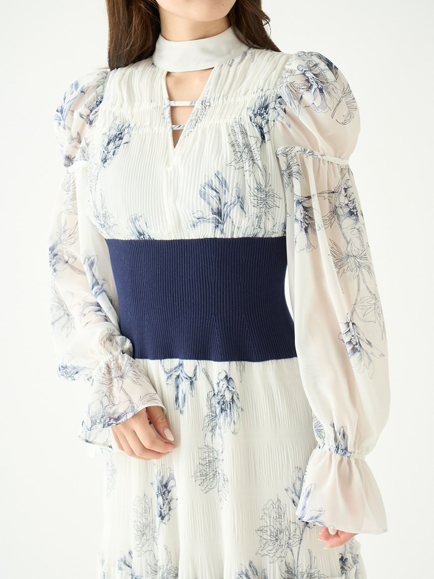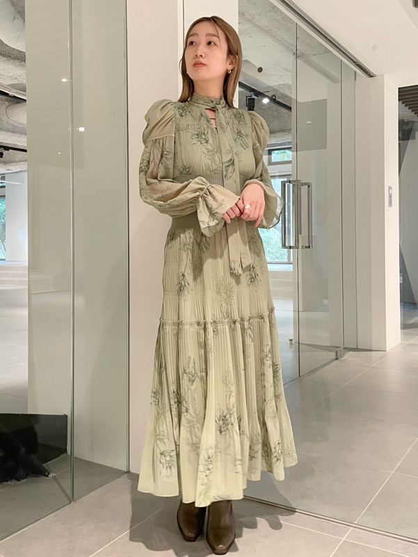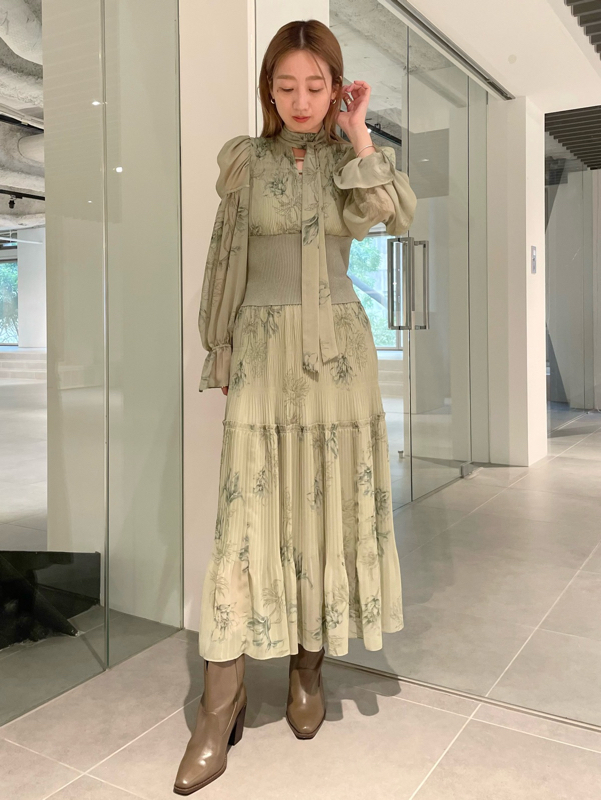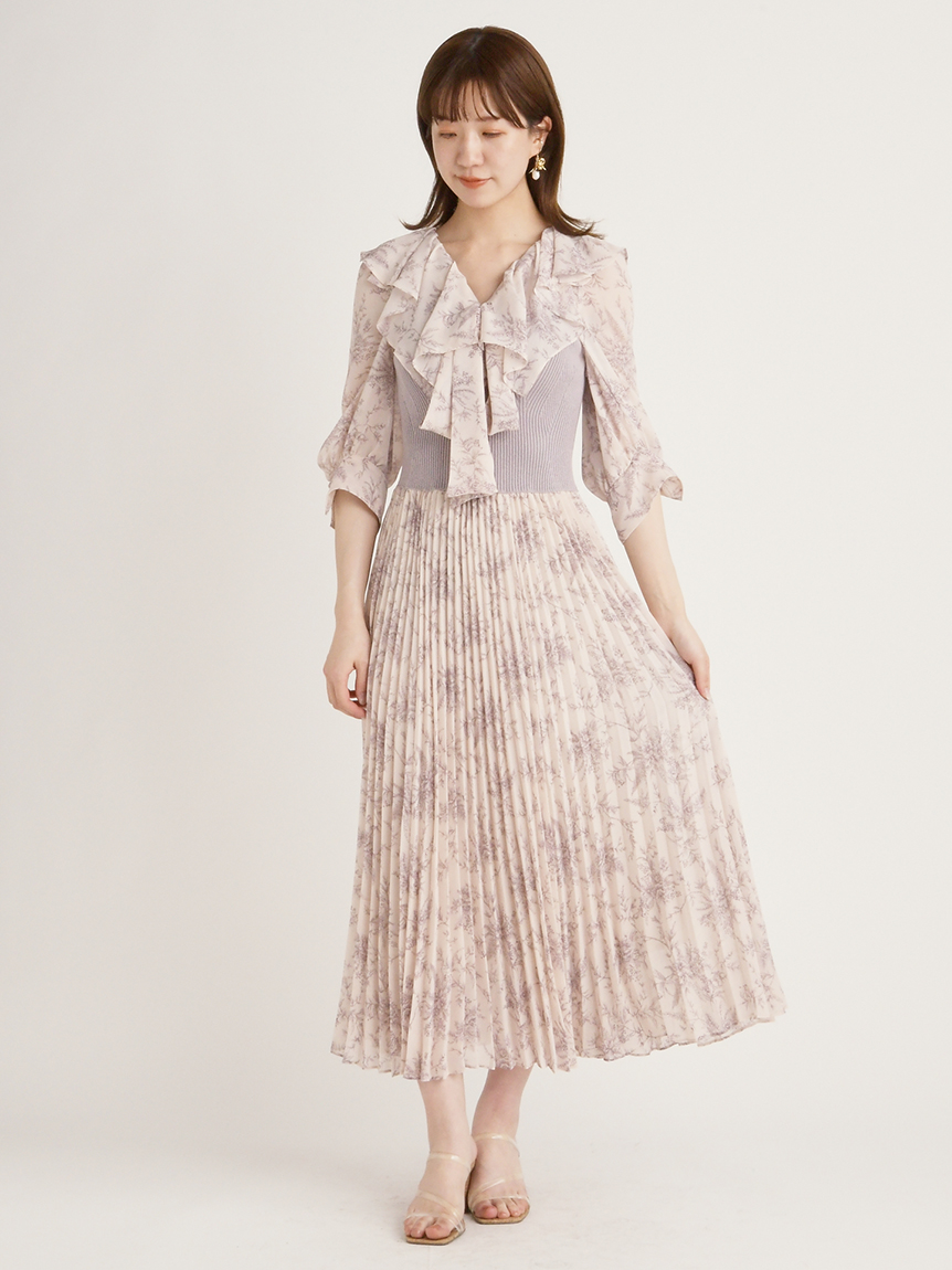 華やかなオリジナルプリントが春ムードをもたらすワンピース。マジョリカプリーツをふんだんに施すことでロマンティックに仕上げています。モード感のあるウエストリブの切り替えがボディにメリハリを与え、スタイルアップ効果を発揮。バックネックには愛らしいリボンをあしらい、360度どこから見ても女性らしさを演出しています。