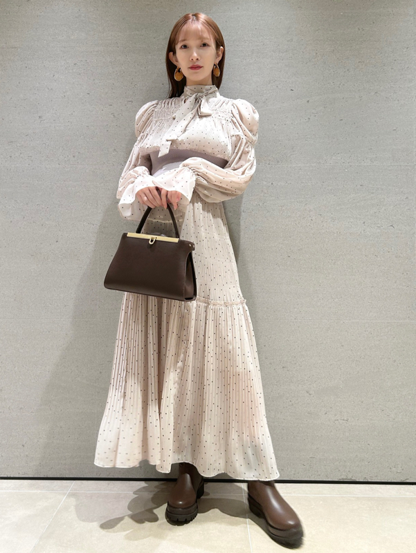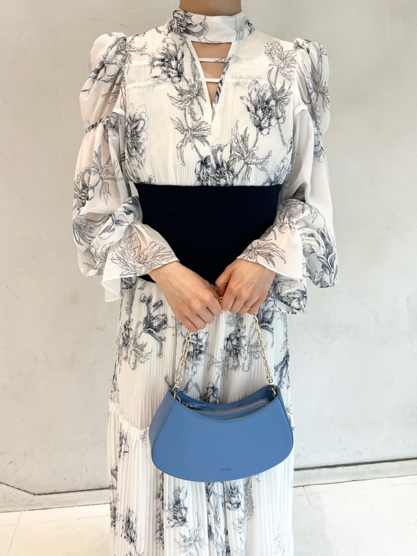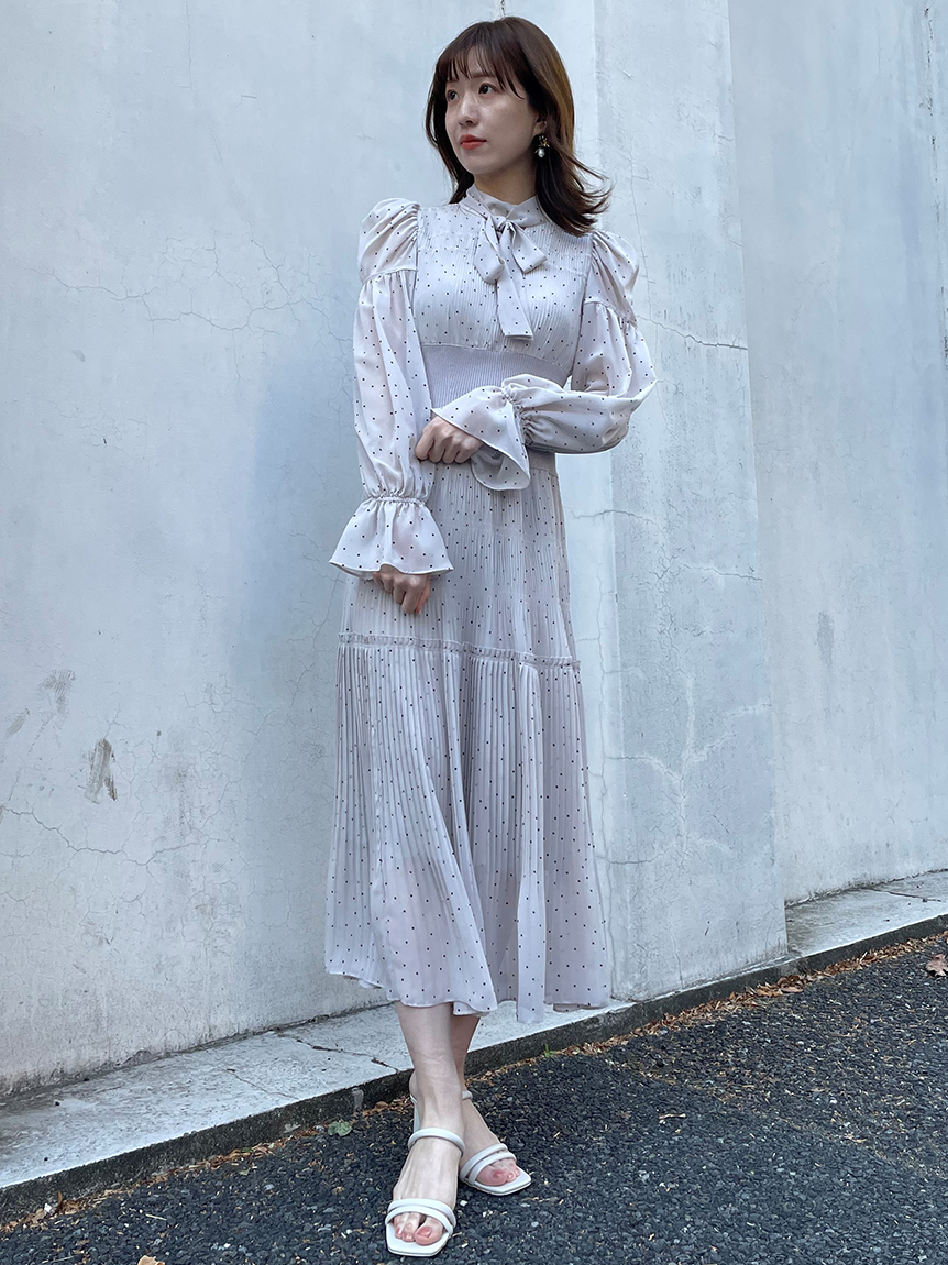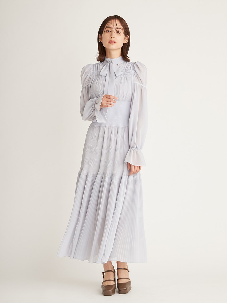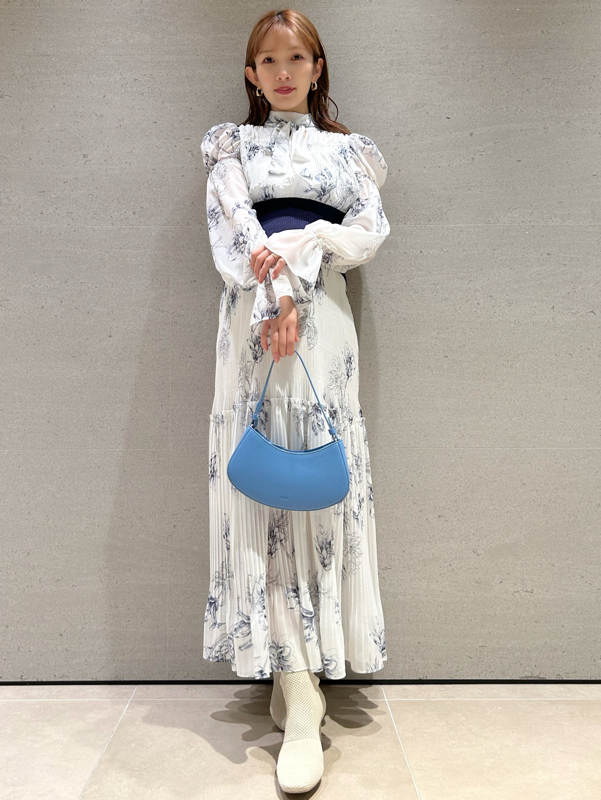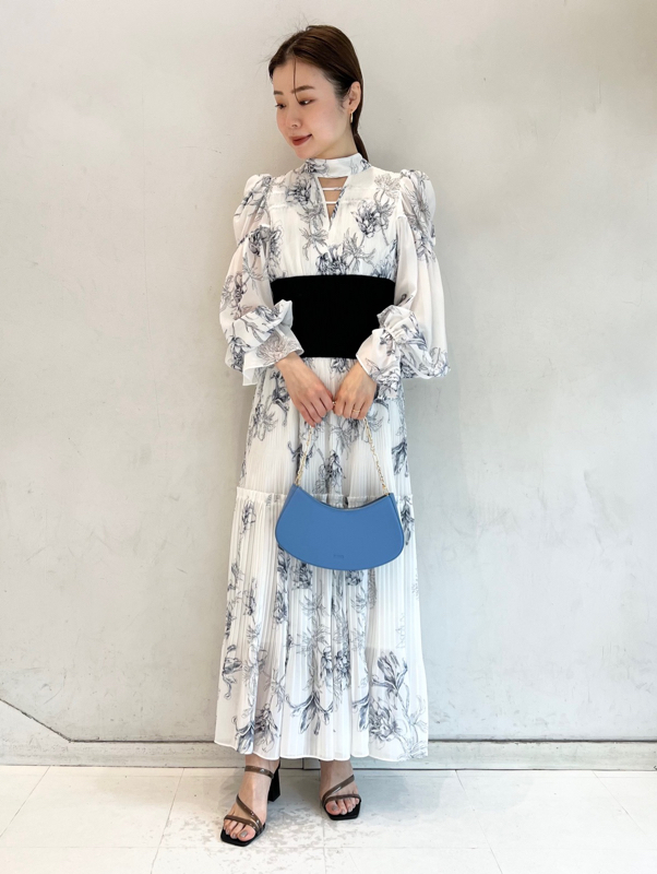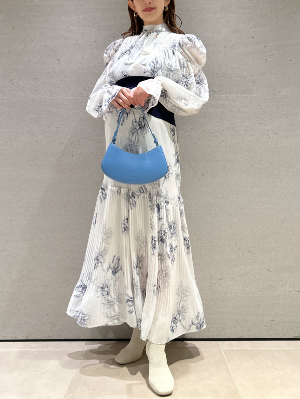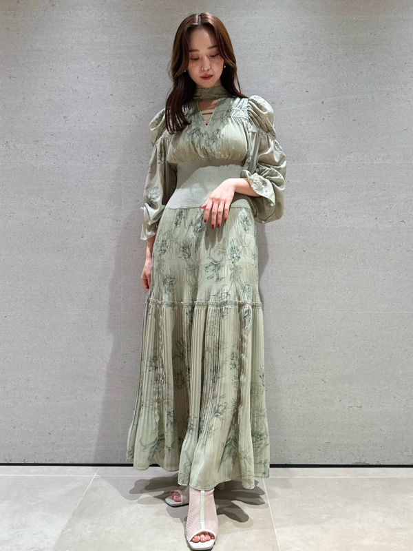 華やかなオリジナルプリントが春ムードをもたらすワンピース。マジョリカプリーツをふんだんに施すことでロマンティックに仕上げています。モード感のあるウエストリブの切り替えがボディにメリハリを与え、スタイルアップ効果を発揮。バックネックには愛らしいリボンをあしらい、360度どこから見ても女性らしさを演出しています。