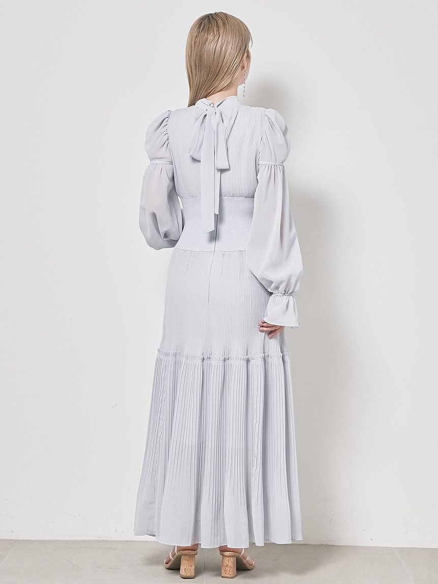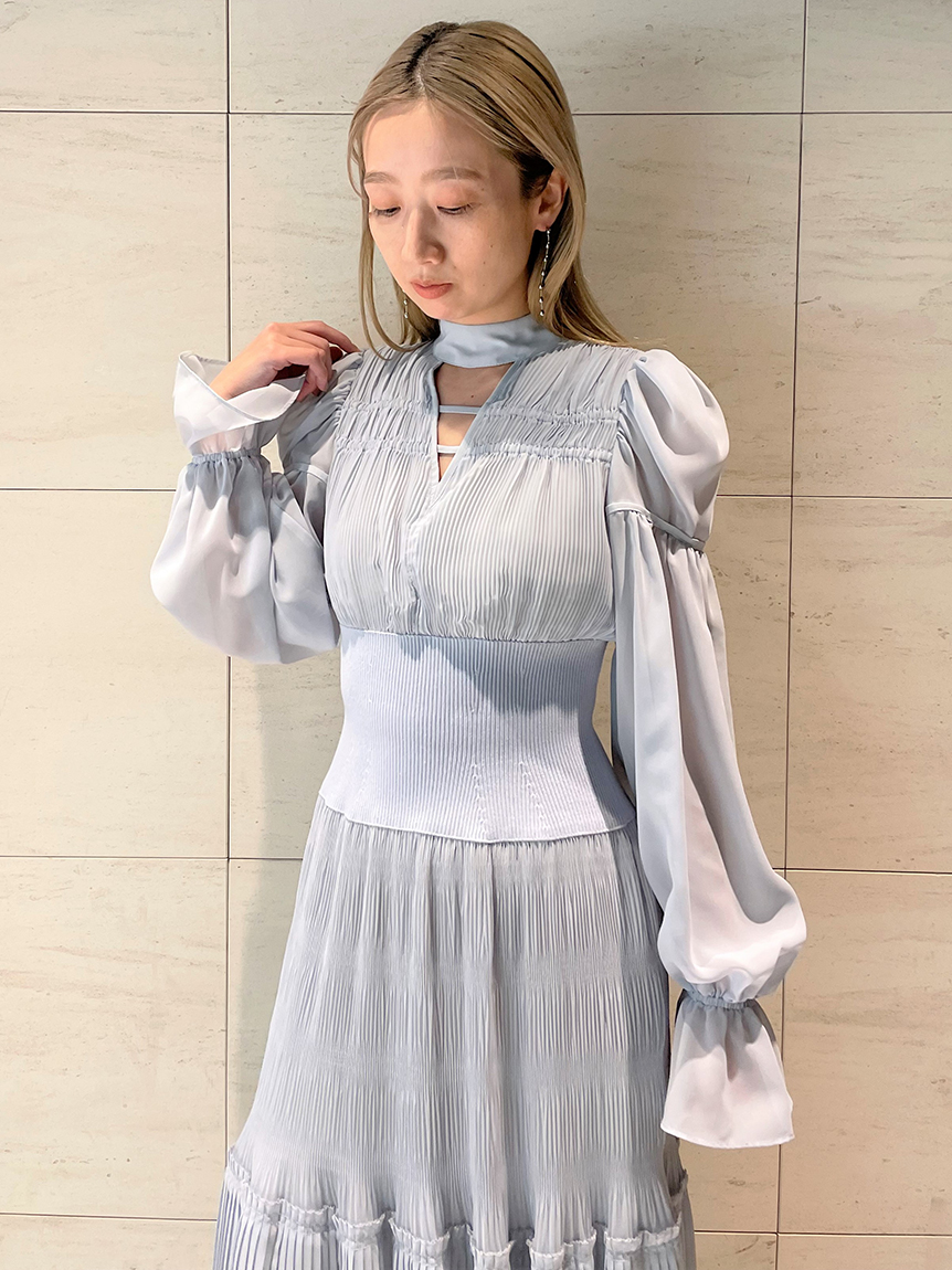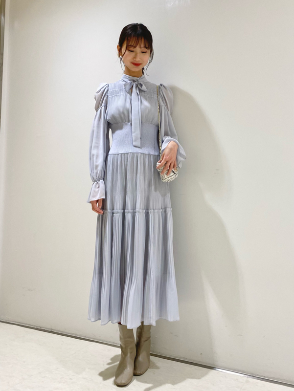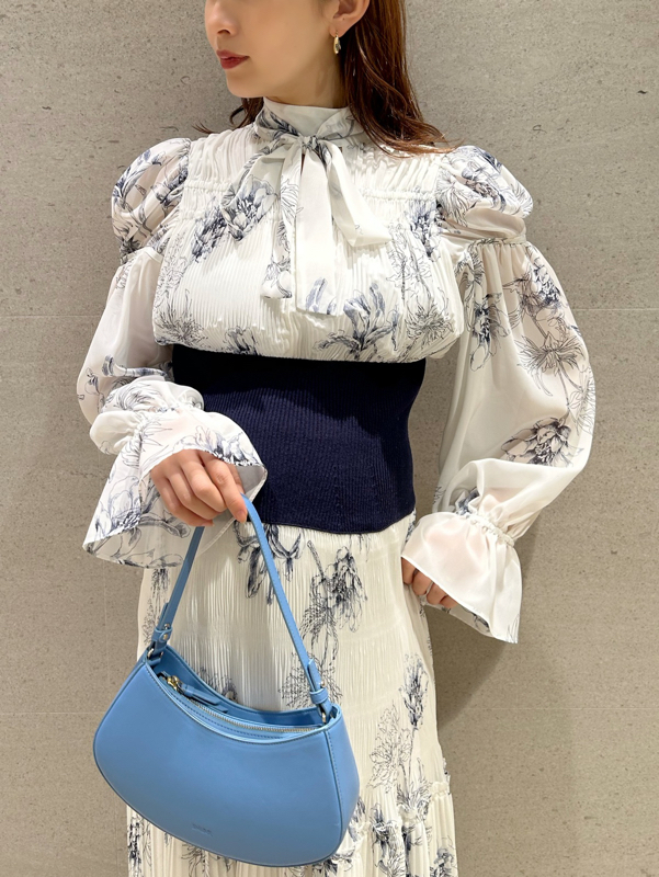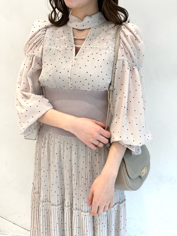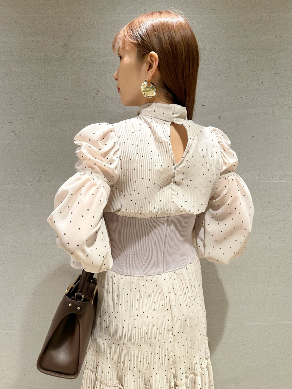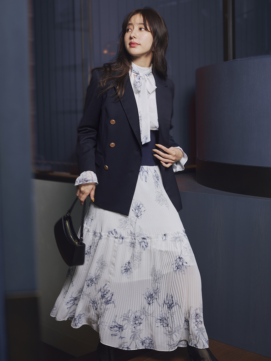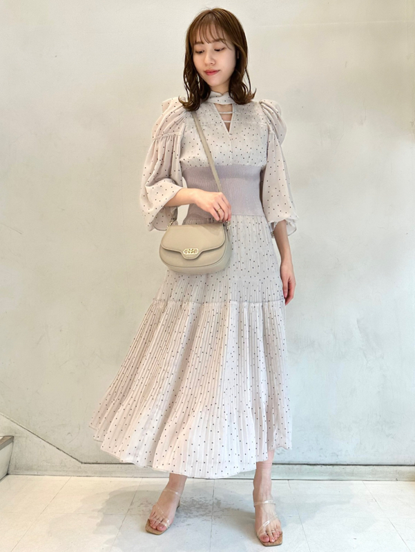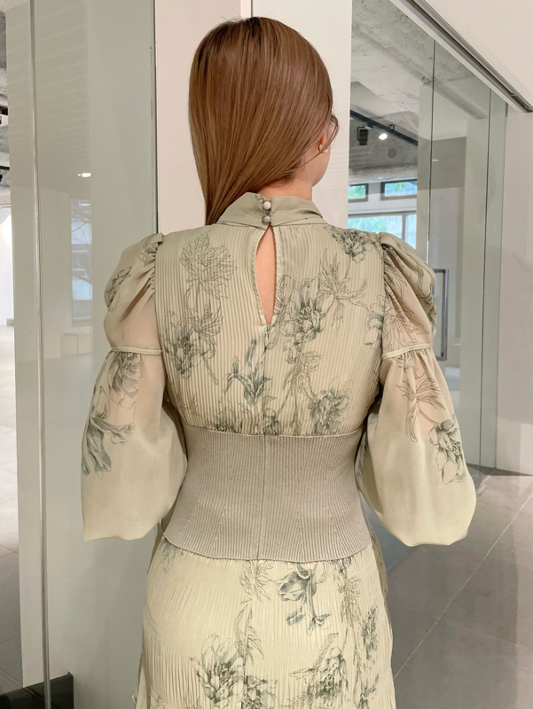 華やかなオリジナルプリントが春ムードをもたらすワンピース。マジョリカプリーツをふんだんに施すことでロマンティックに仕上げています。モード感のあるウエストリブの切り替えがボディにメリハリを与え、スタイルアップ効果を発揮。バックネックには愛らしいリボンをあしらい、360度どこから見ても女性らしさを演出しています。
