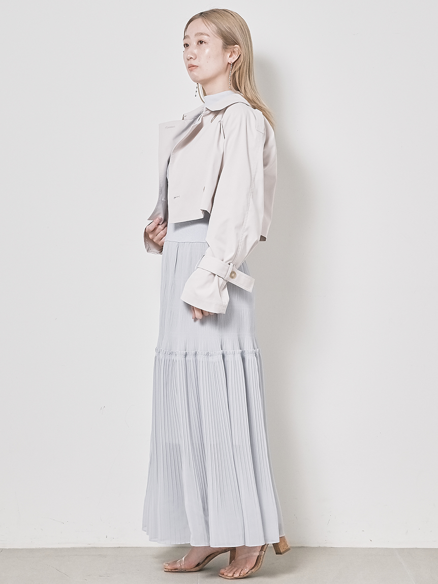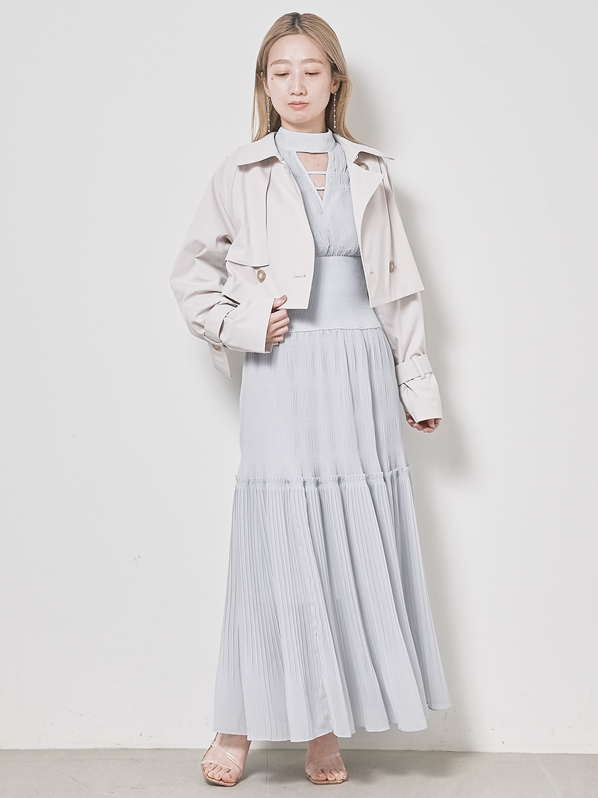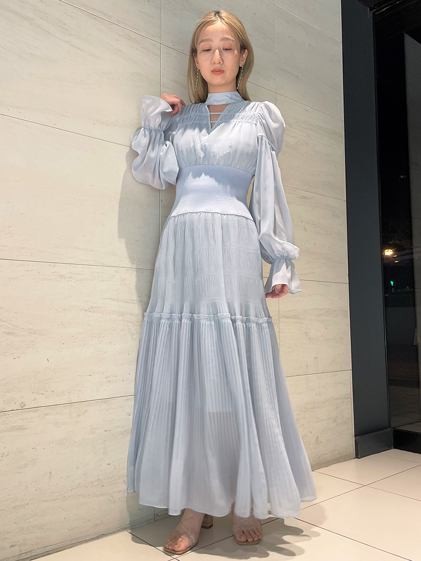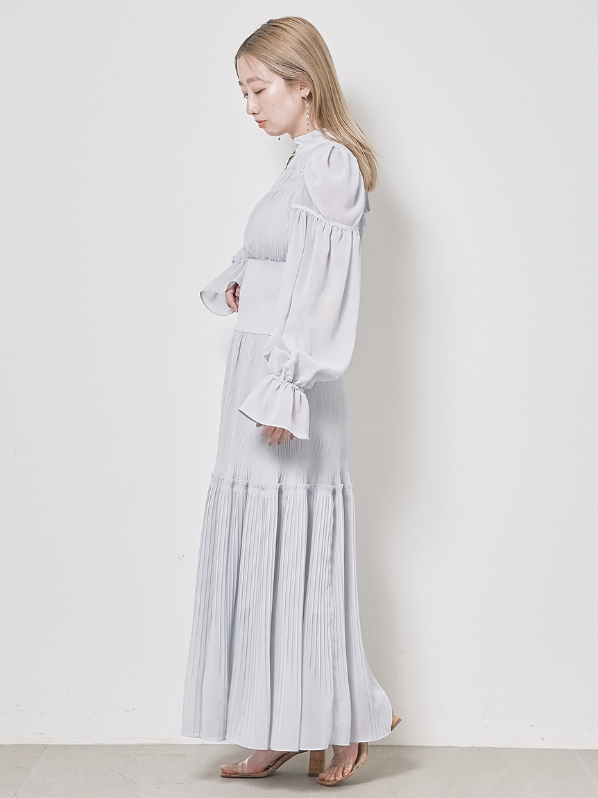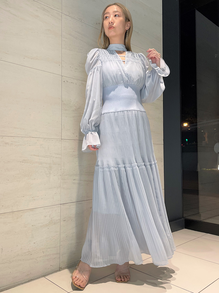 華やかなオリジナルプリントが春ムードをもたらすワンピース。マジョリカプリーツをふんだんに施すことでロマンティックに仕上げています。モード感のあるウエストリブの切り替えがボディにメリハリを与え、スタイルアップ効果を発揮。バックネックには愛らしいリボンをあしらい、360度どこから見ても女性らしさを演出しています。