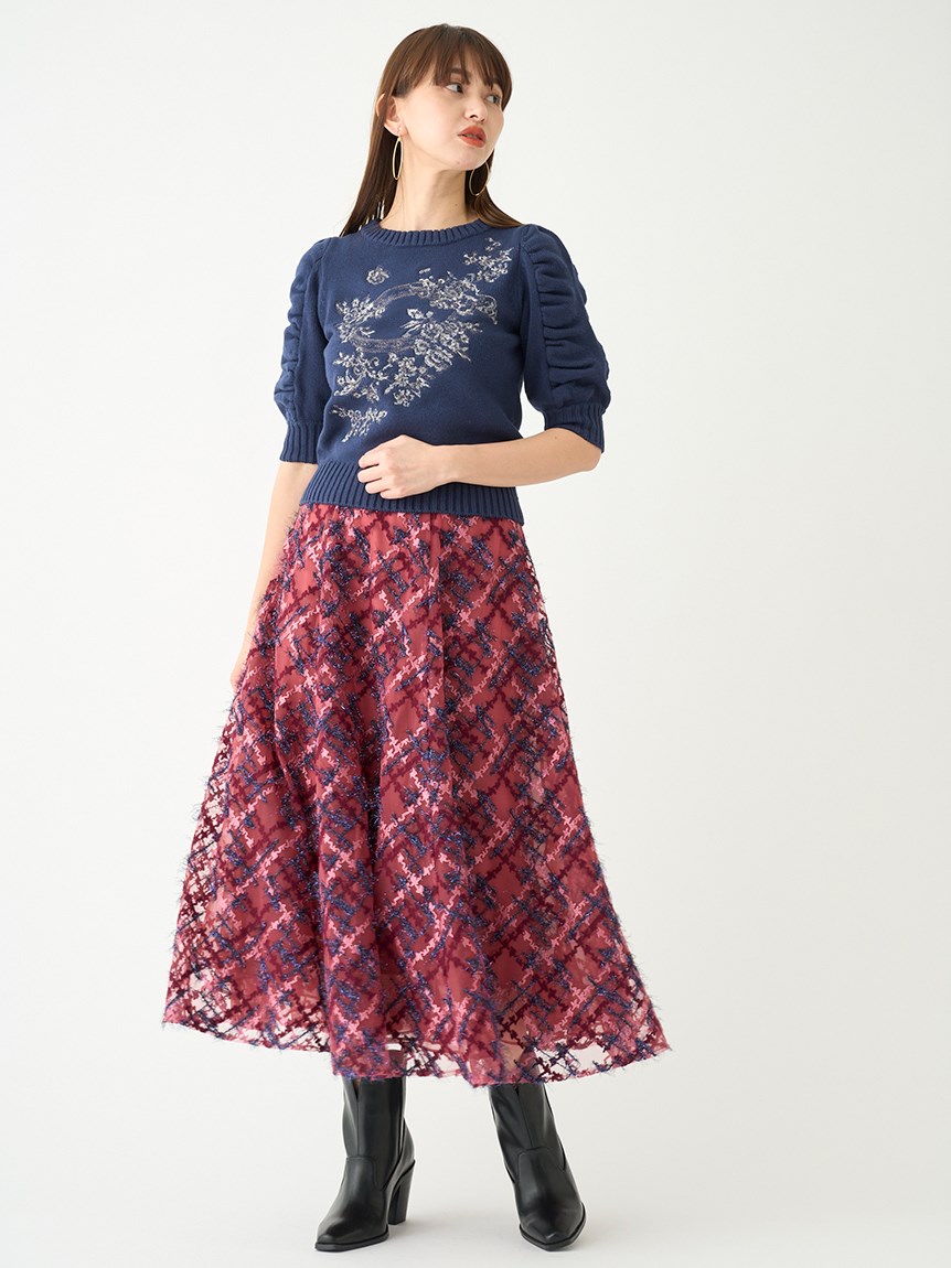 エンブロイダリーチェックスカート