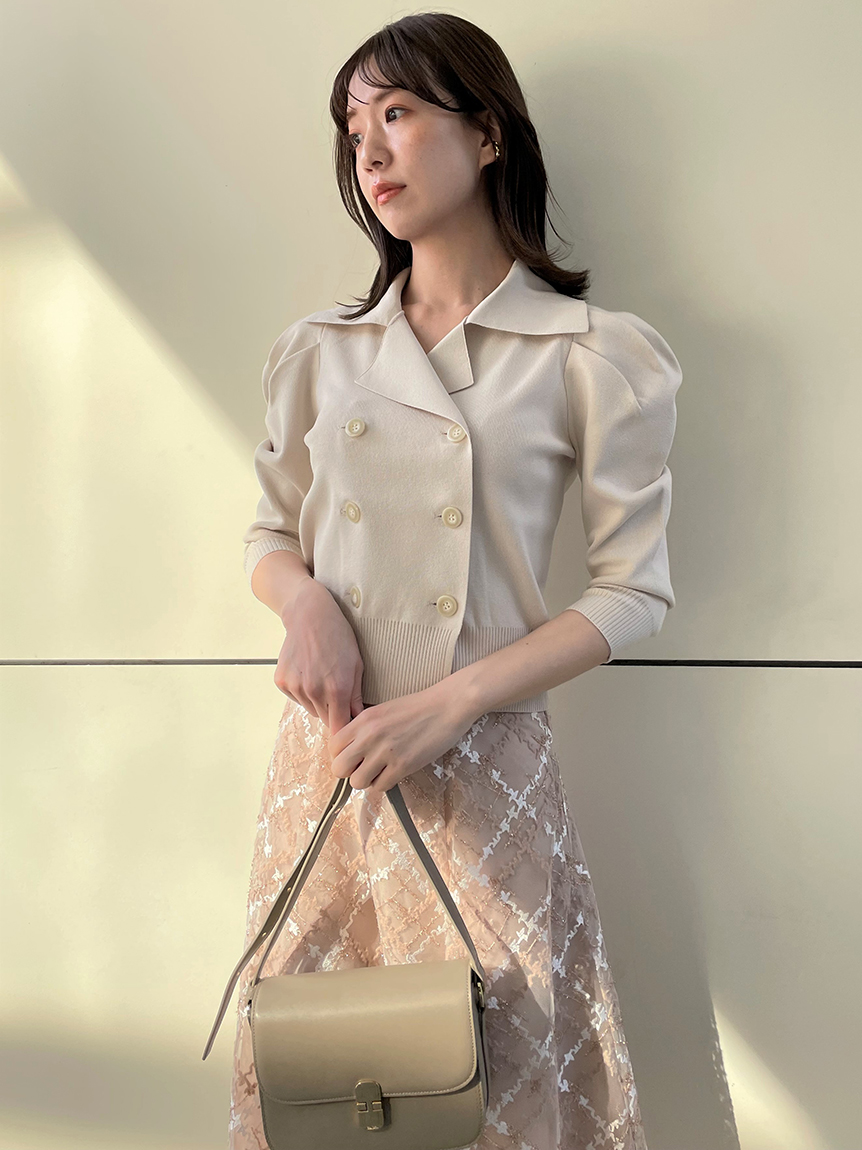 繊細さと華やかさが絶妙なバランスで表現された人気のエンブロイダリースカートが今季も登場。今シーズンは煌めきをプラスした「SNIDEL」オリジナルの図案でパッと目を引く主役級の1着に仕上げました。たっぷりのフレアでボリュームを出した女性らしいシルエットが好印象。シンプルなトップスを合わせてもサマになり、華やかさ溢れるスタイリングを叶えてくれます。