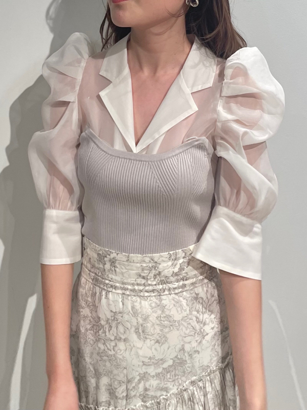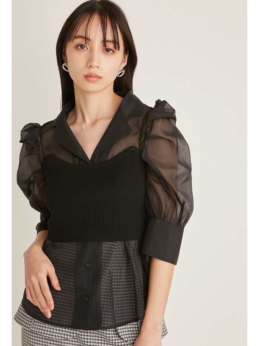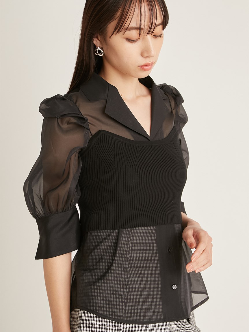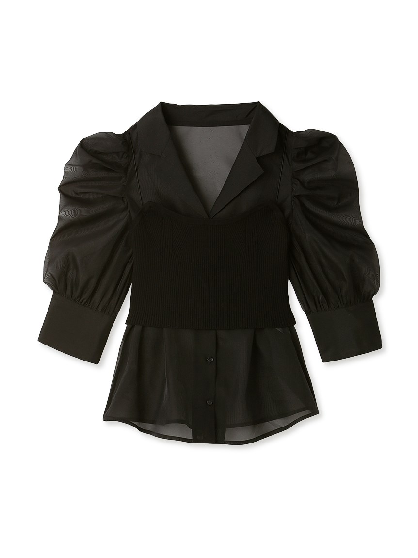 【オーガンジーブラウスとニットビスチェの万能セットアイテム】