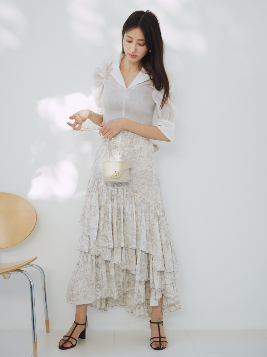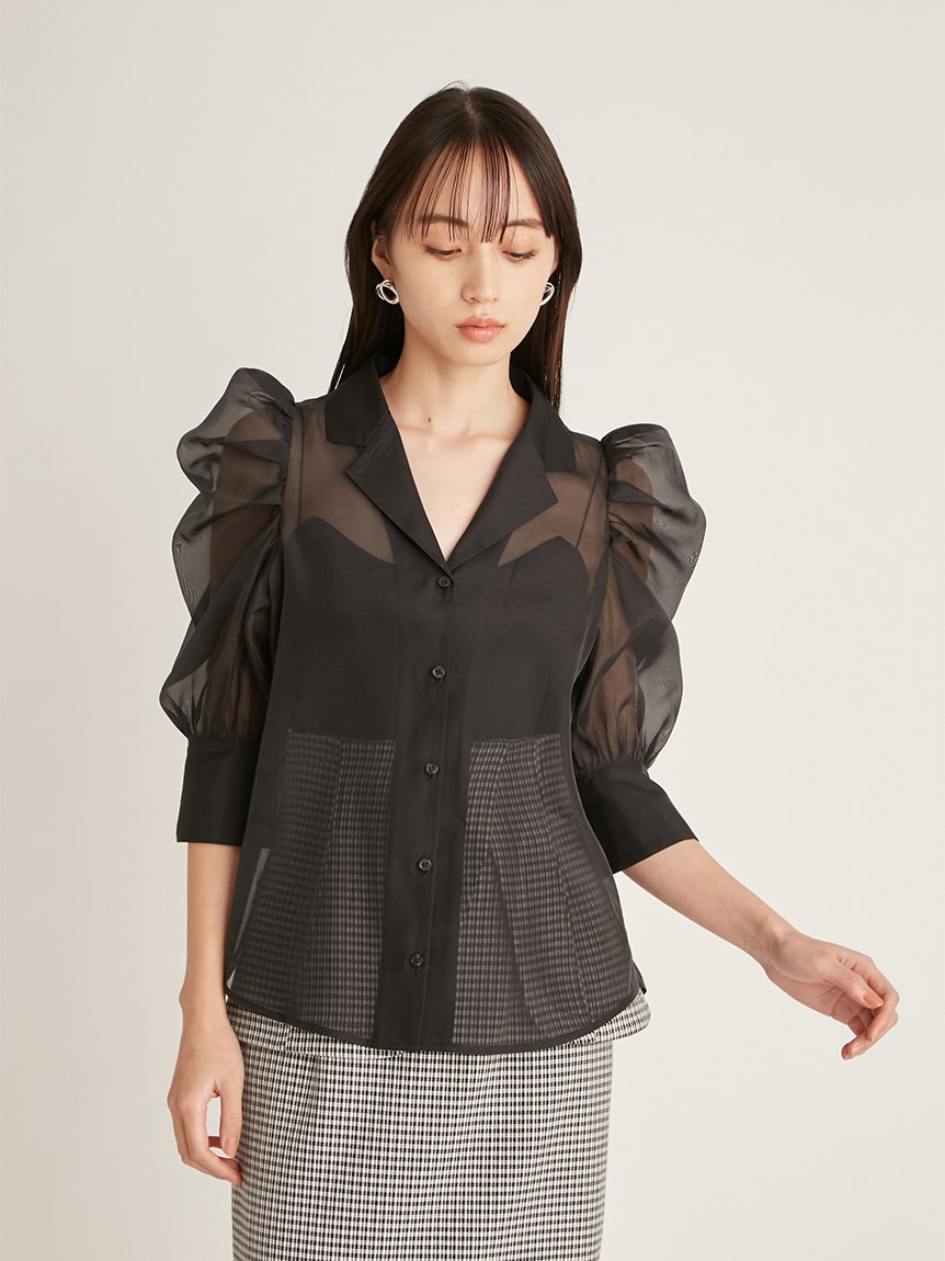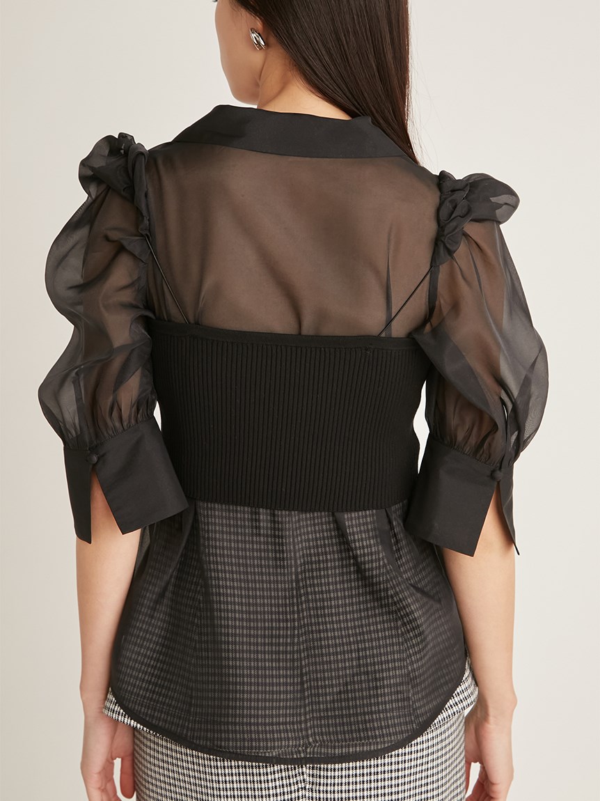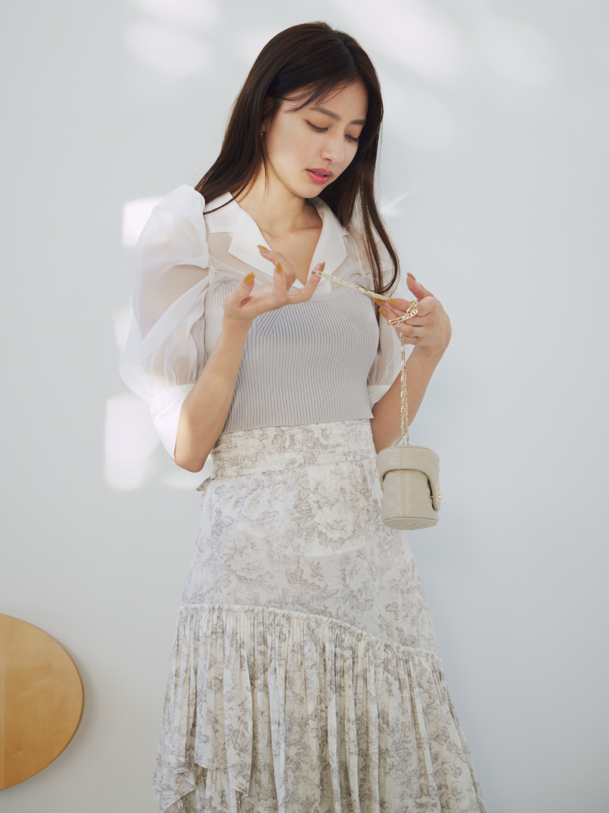 【オーガンジーブラウスとニットビスチェの万能セットアイテム】