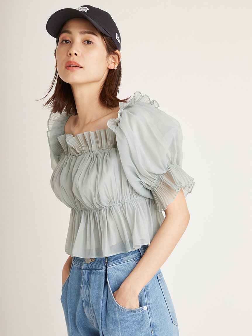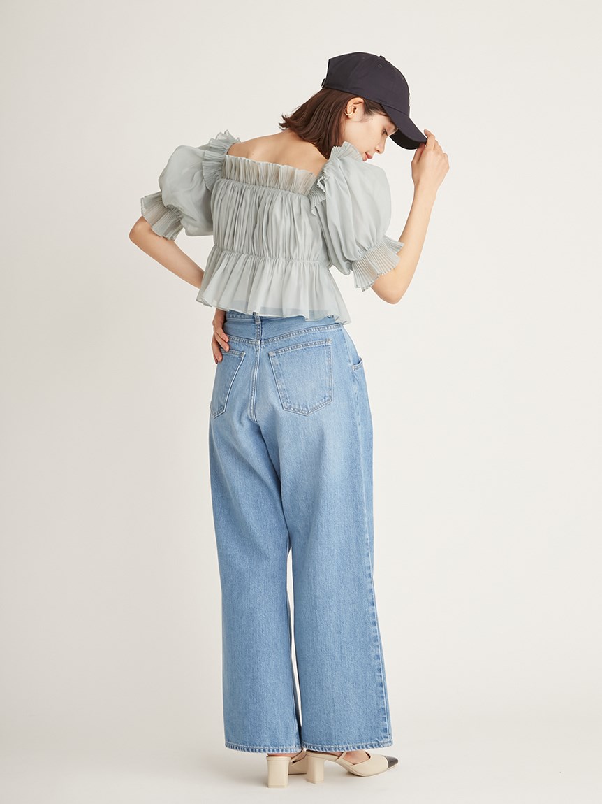 【こだわりのデイテールでとことん女性らしく仕上げたオフショルブラウス】