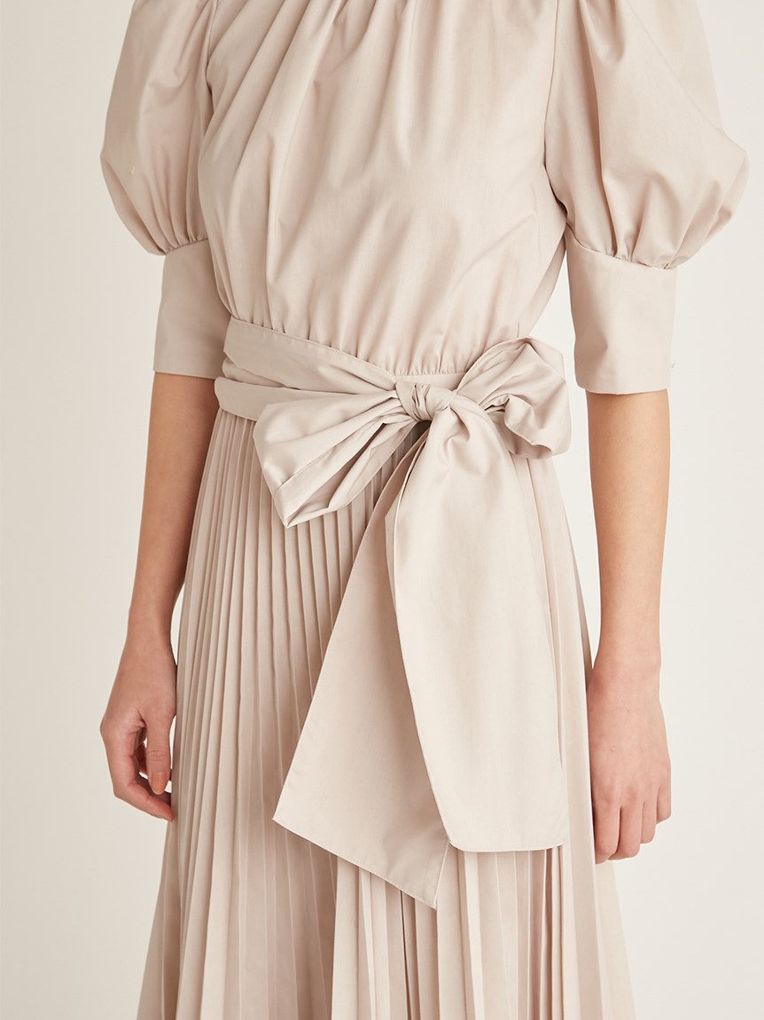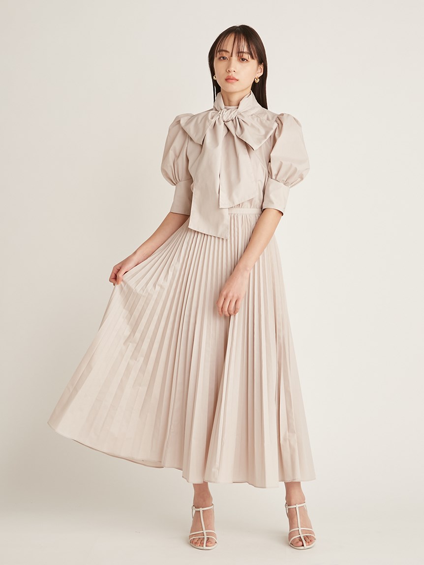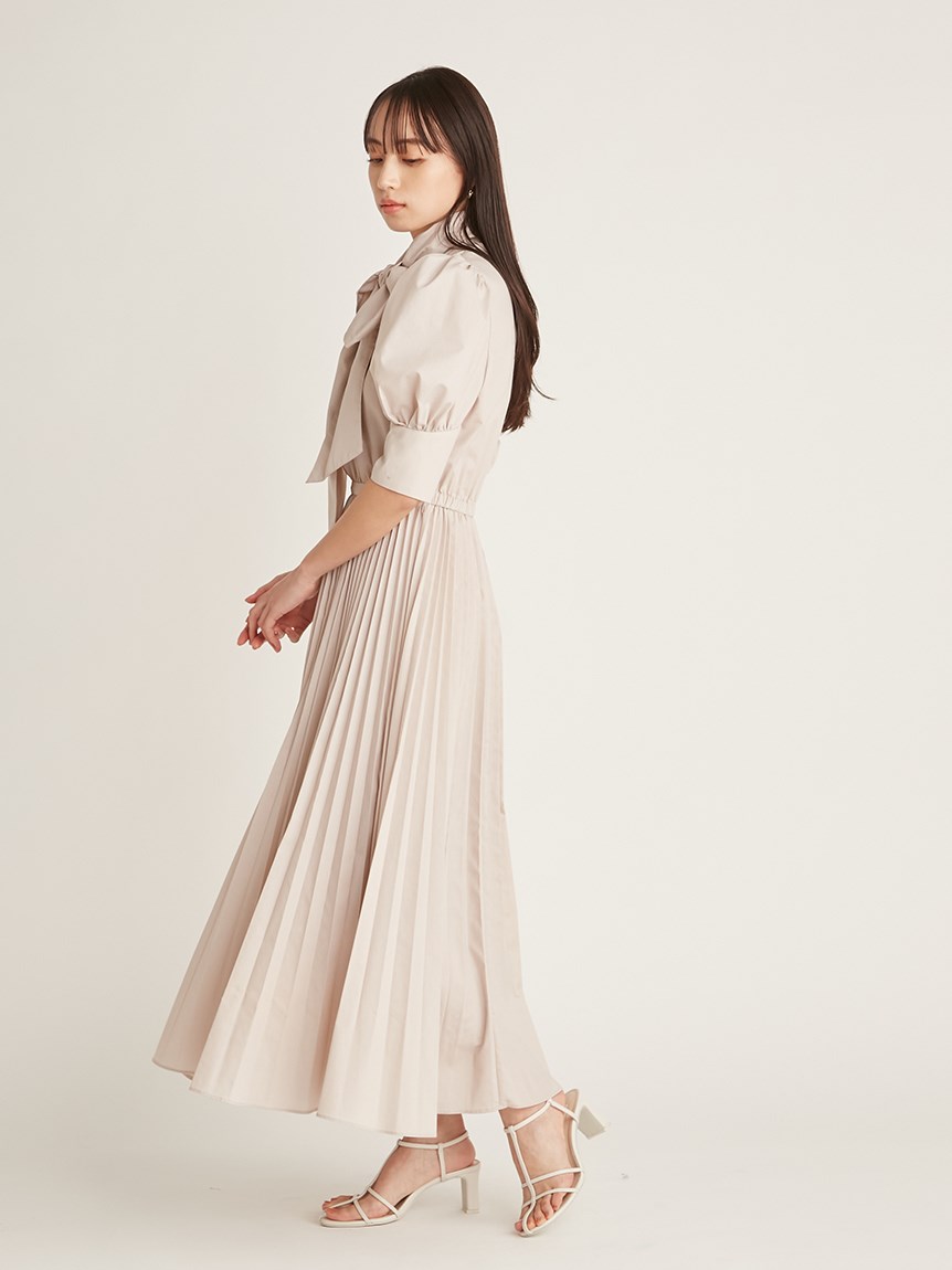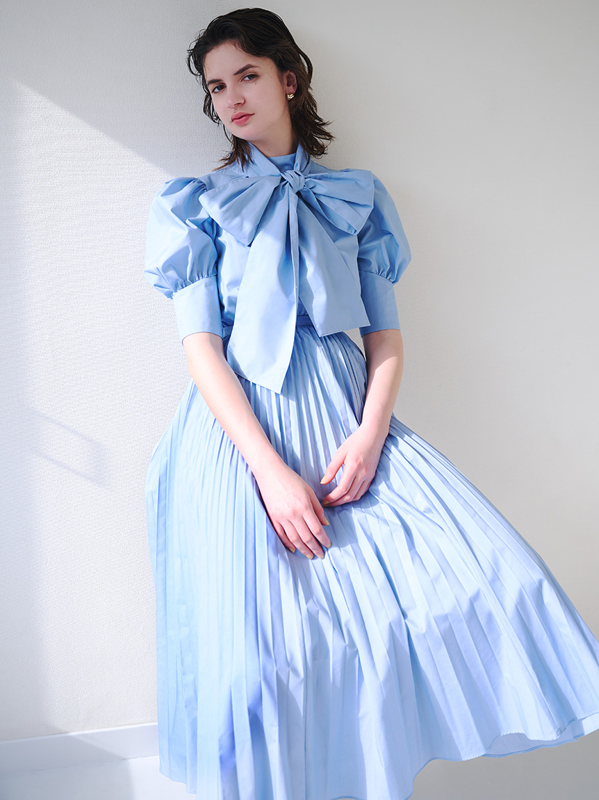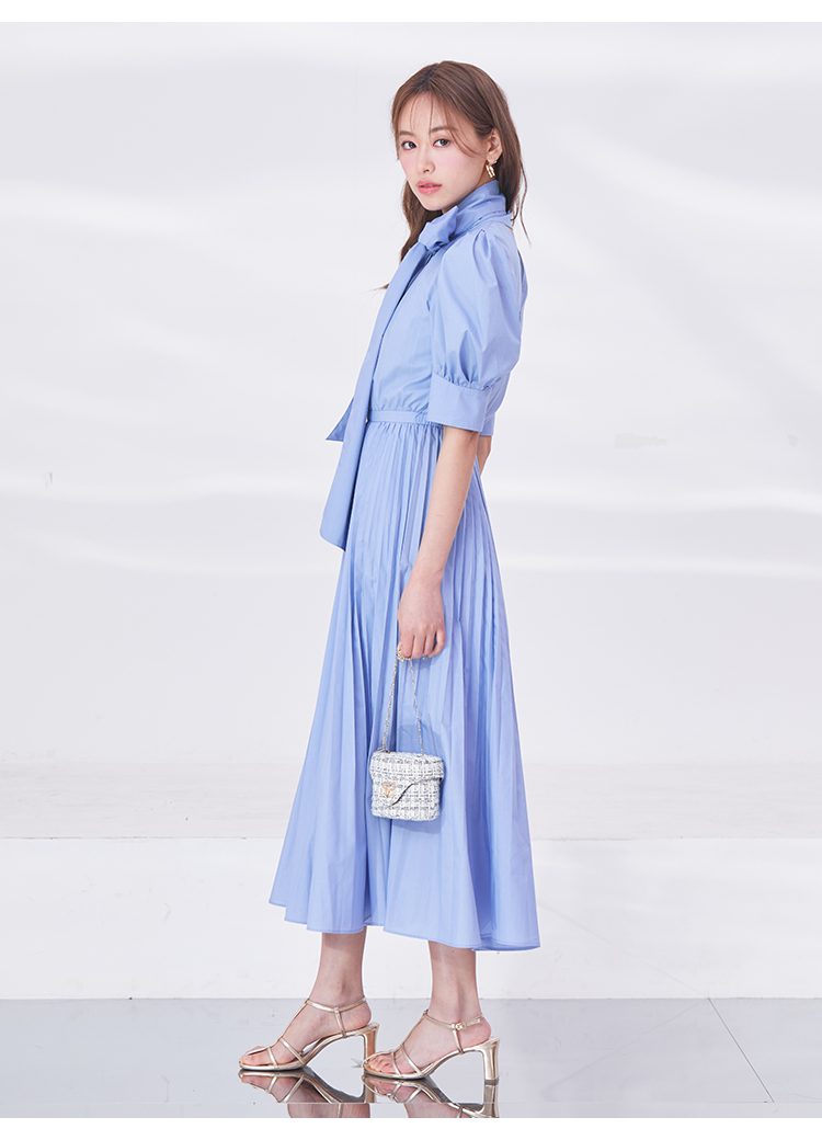 「SNIDEL」定番のボウタイシャツワンピースがリバイバルで登場。メリハリのあるパフスリーブと大きなリボンで女性らしく華やかに。程よい背中の肌見せで今年らしい抜け感をプラスしました。スカート部分にはプリーツを施すことできちんと感を与え、品の良いルックスに仕上げています。