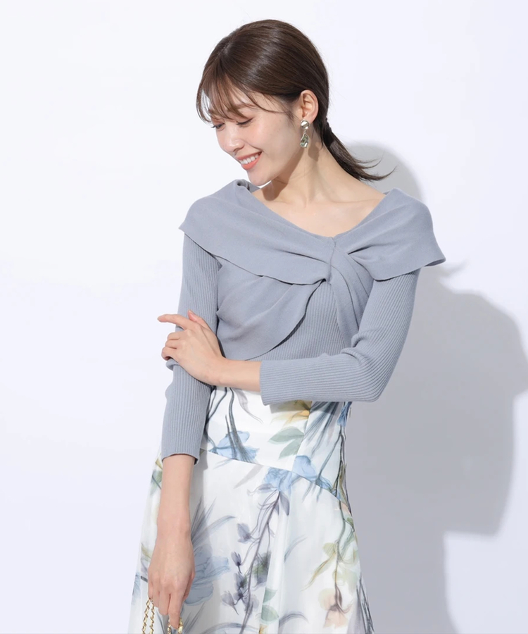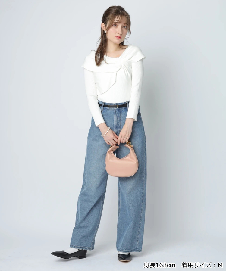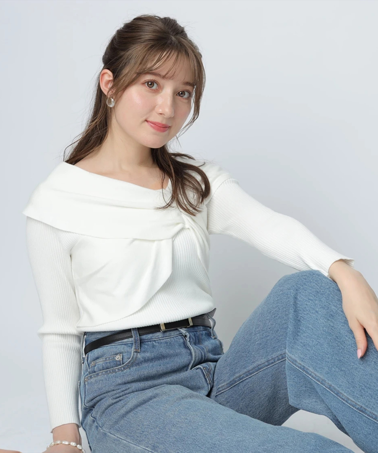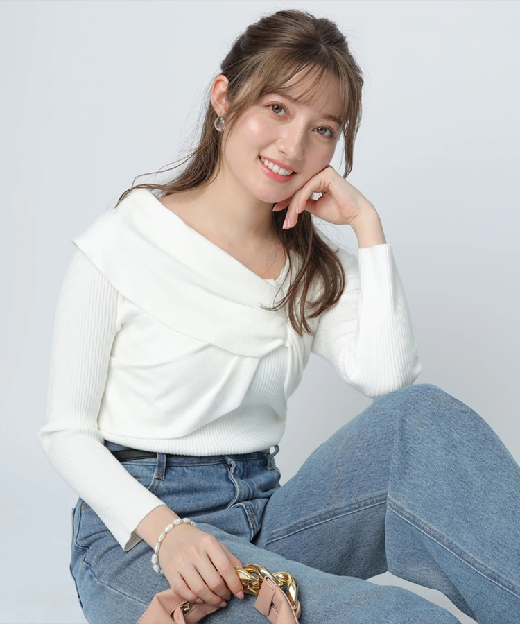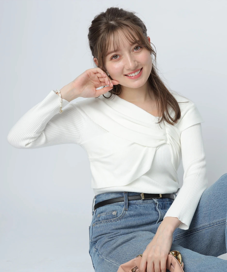 リボンのような立体感のあるギャザーデザインが可愛らしいトップス。 アシンメトリーに仕上げることで、スタイリングにこなれ感を演出。デコルテも美しく映えるシルエットが魅力的なポイントです。 コーディネートに取り入れるだけでも女性らしい印象を与えてくれるアイテム。 Apuweiser-riche-23156690 【Mサイズ】着丈:54cm 肩幅:32cm 袖丈:51cm バスト:72cm