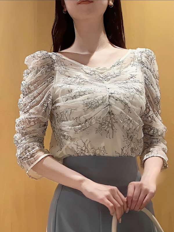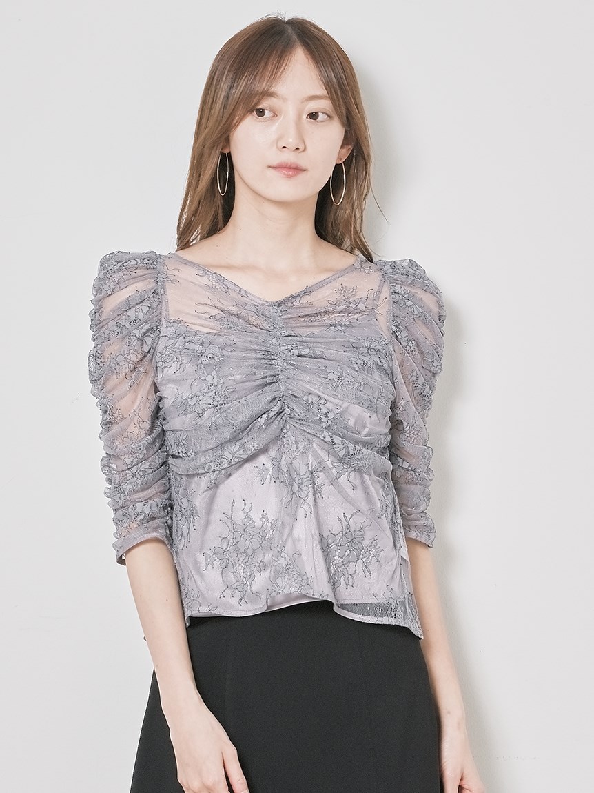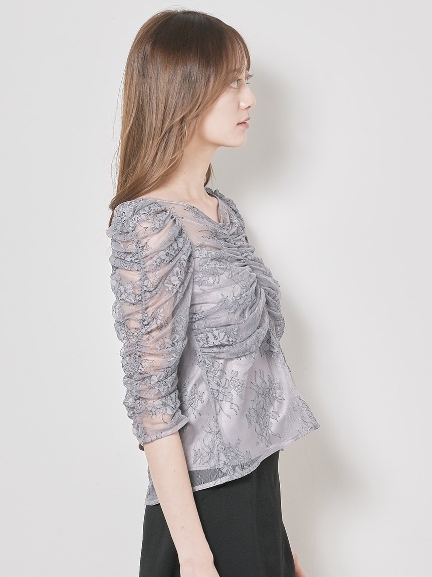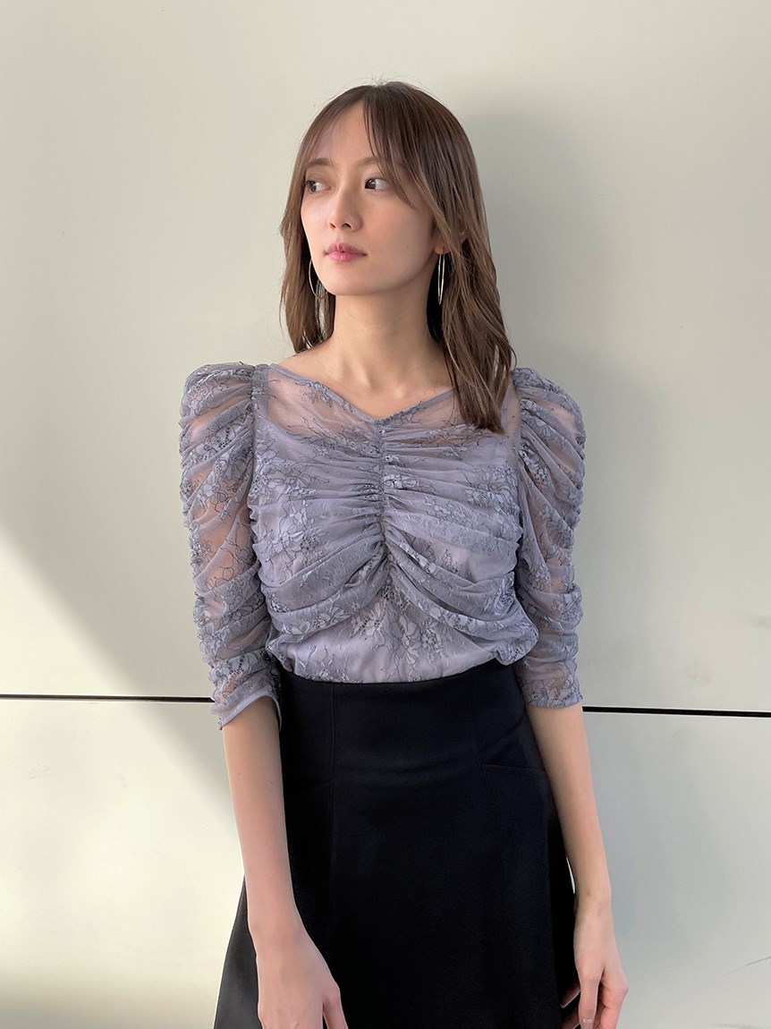 レースギャザーディテールブラウス