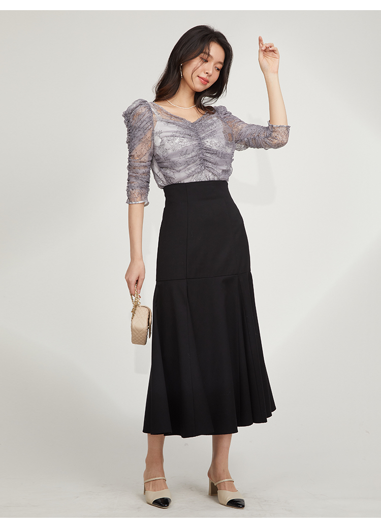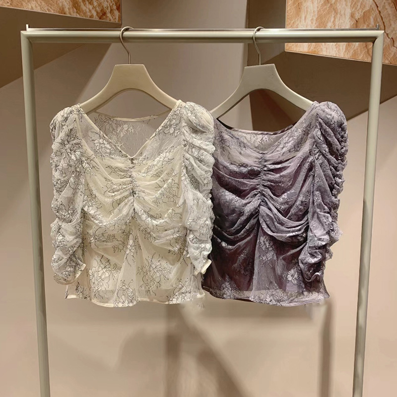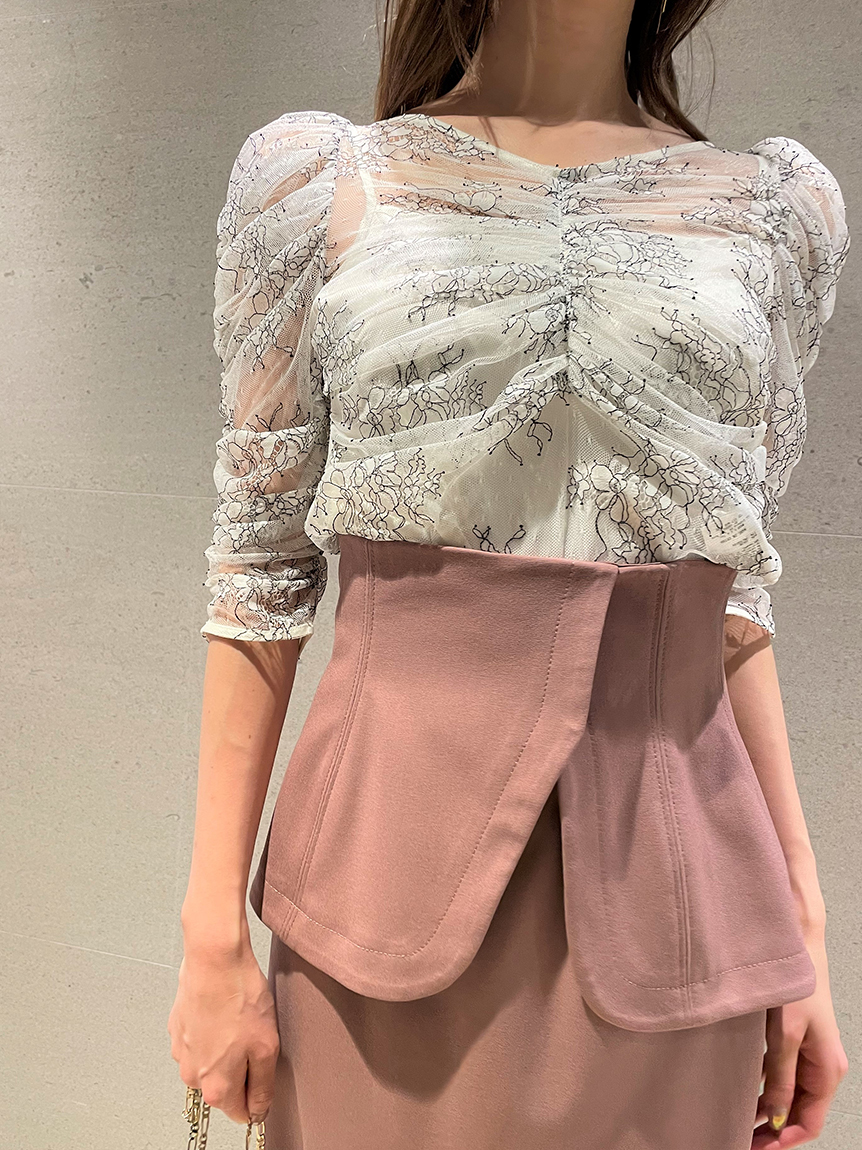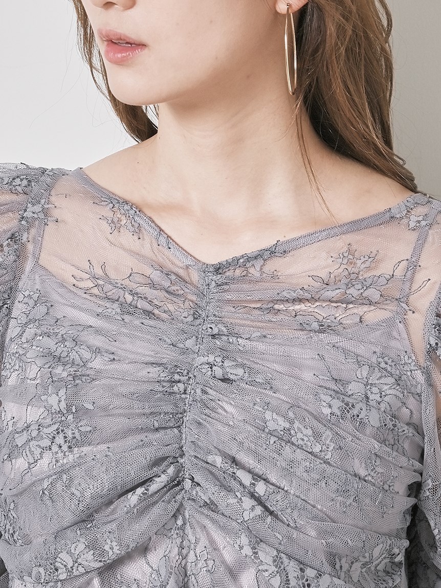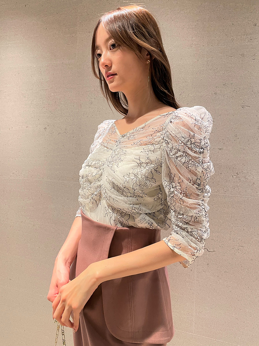 レースギャザーディテールブラウス